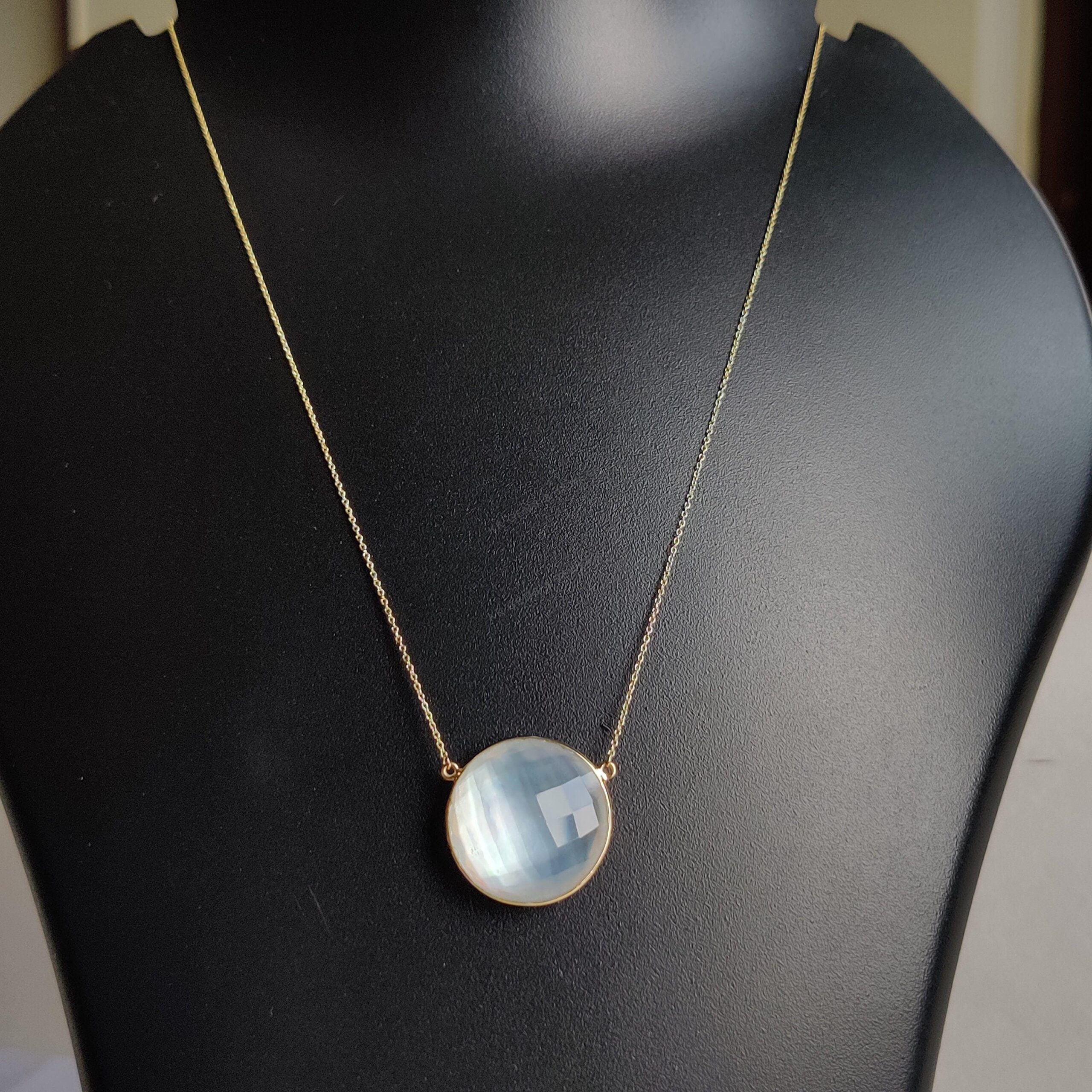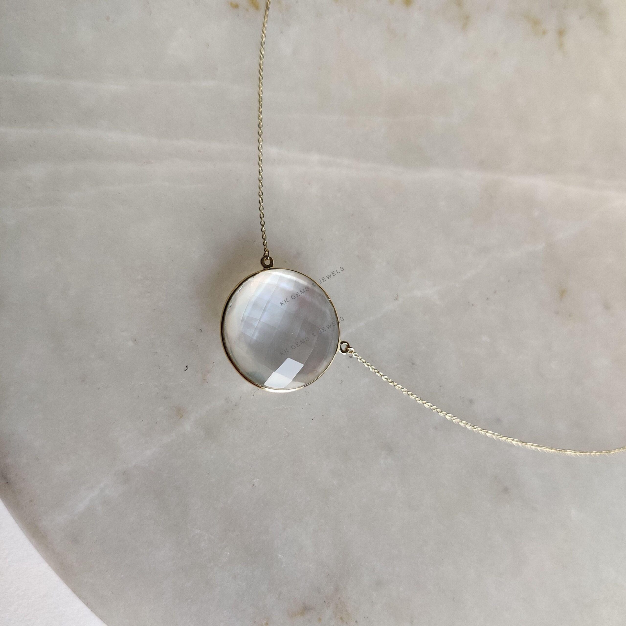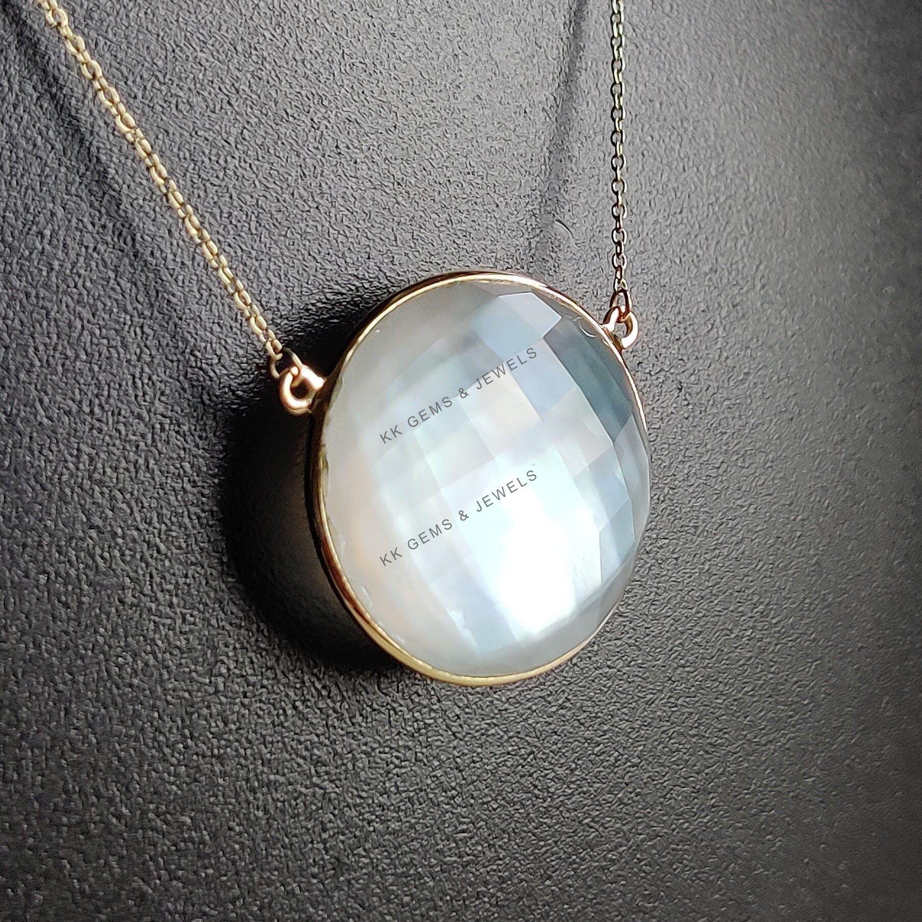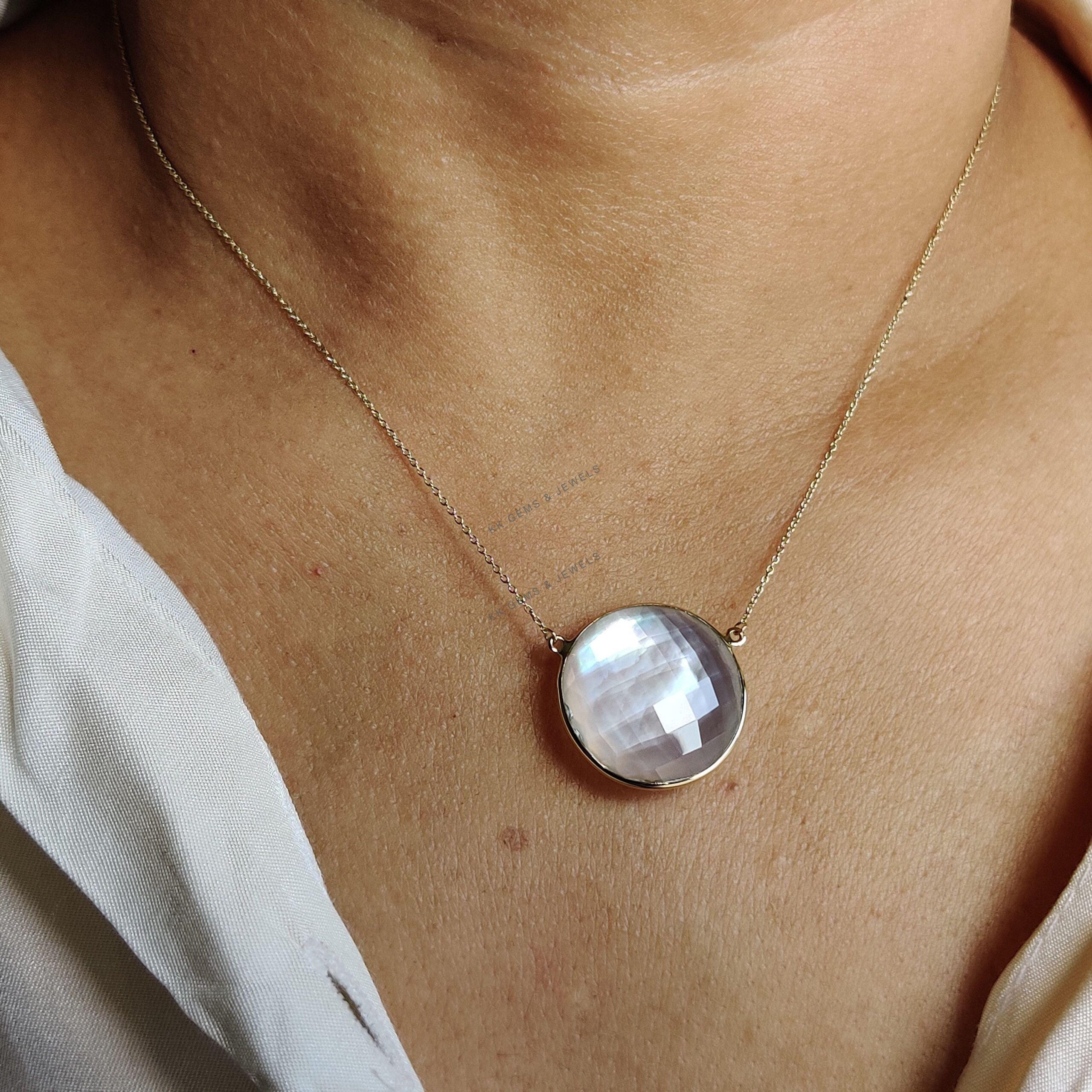 This stunning pendant is set in 14k Solid Yellow Gold with Natural Mop Doublet with utmost precision. It is an unique gemstone pendant for nearly every occasion and is completely hassle-free jewelry. ITEM DETAILS: • Gem: Mop + Clear Quartz…