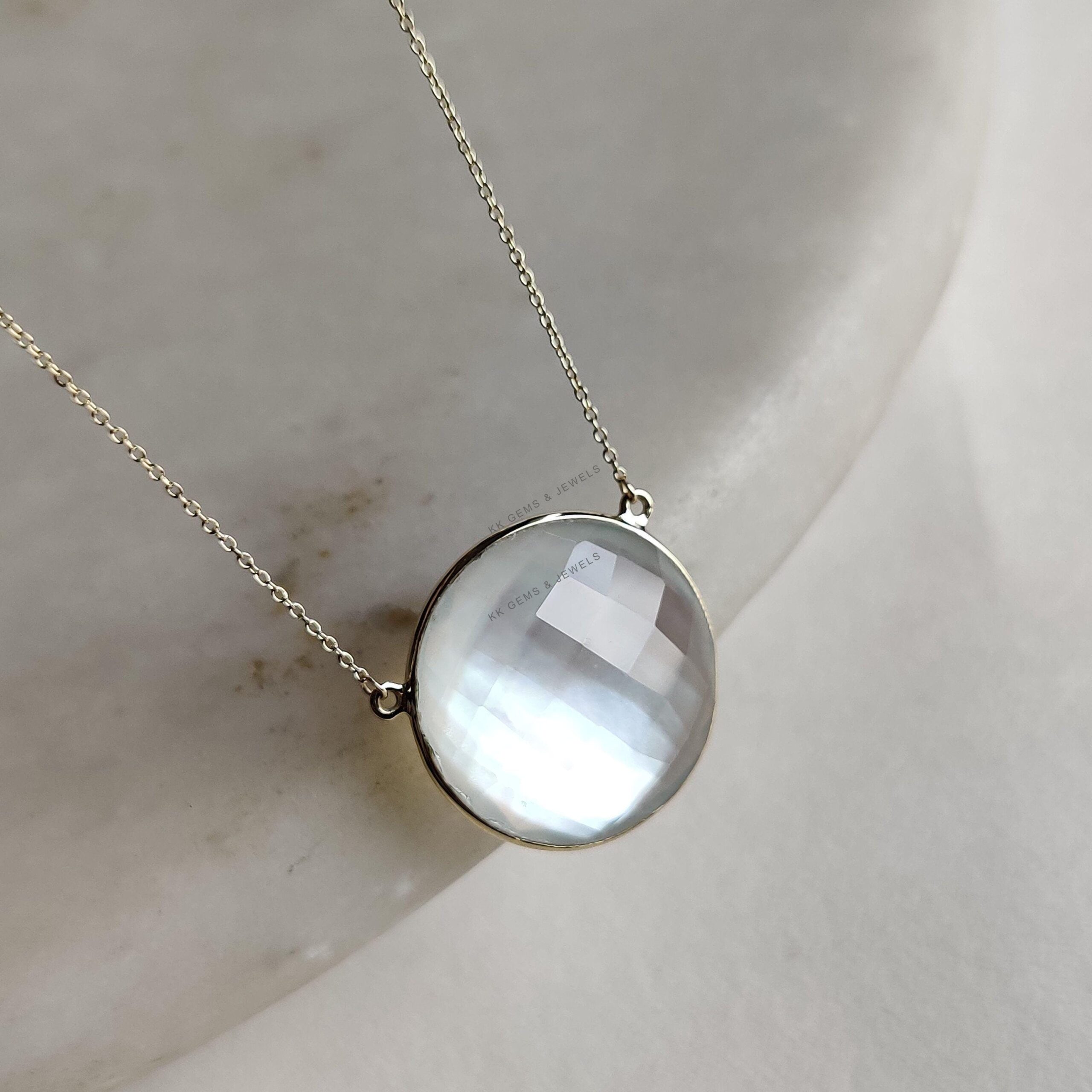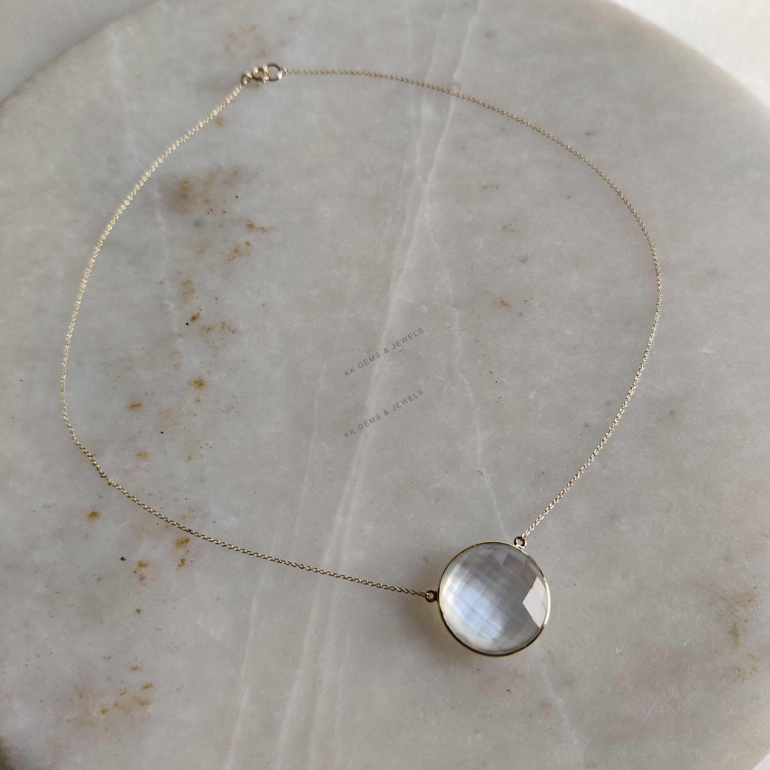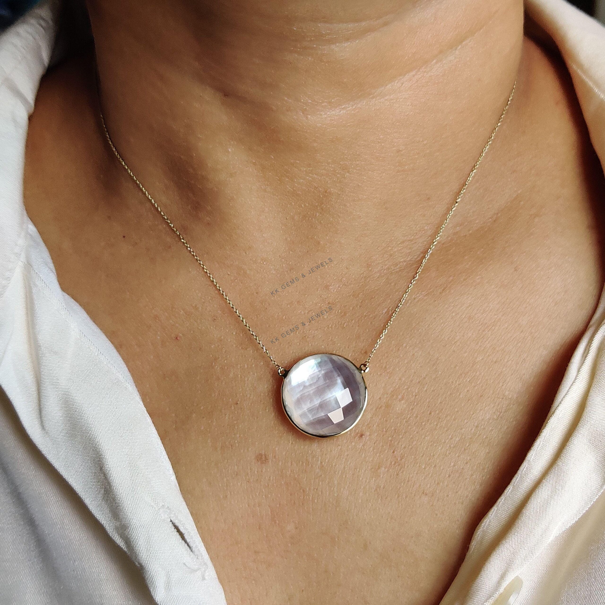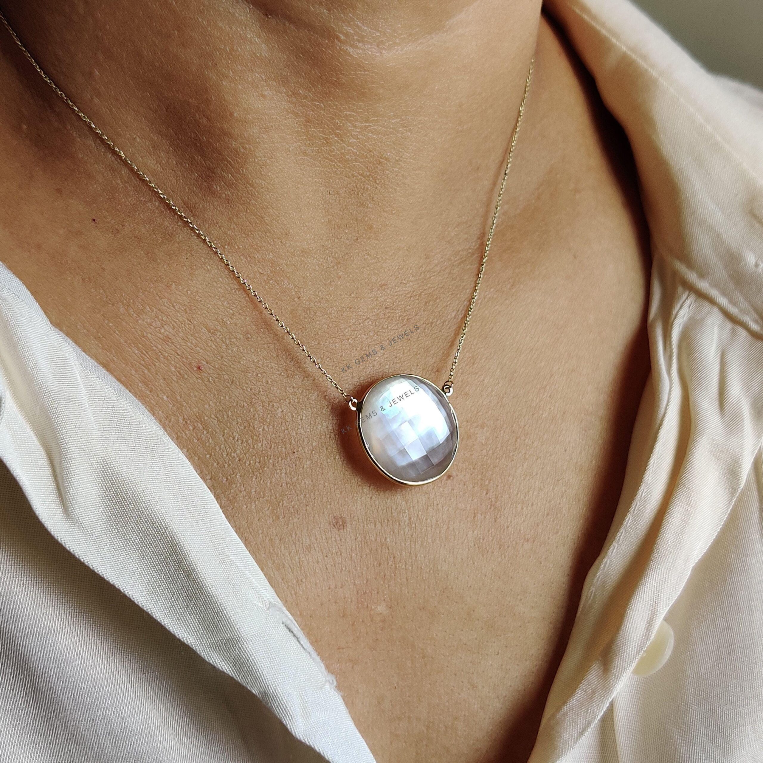 This stunning pendant is set in 14k Solid Yellow Gold with Natural Mop Doublet with utmost precision. It is an unique gemstone pendant for nearly every occasion and is completely hassle-free jewelry. ITEM DETAILS: • Gem: Mop + Clear Quartz…