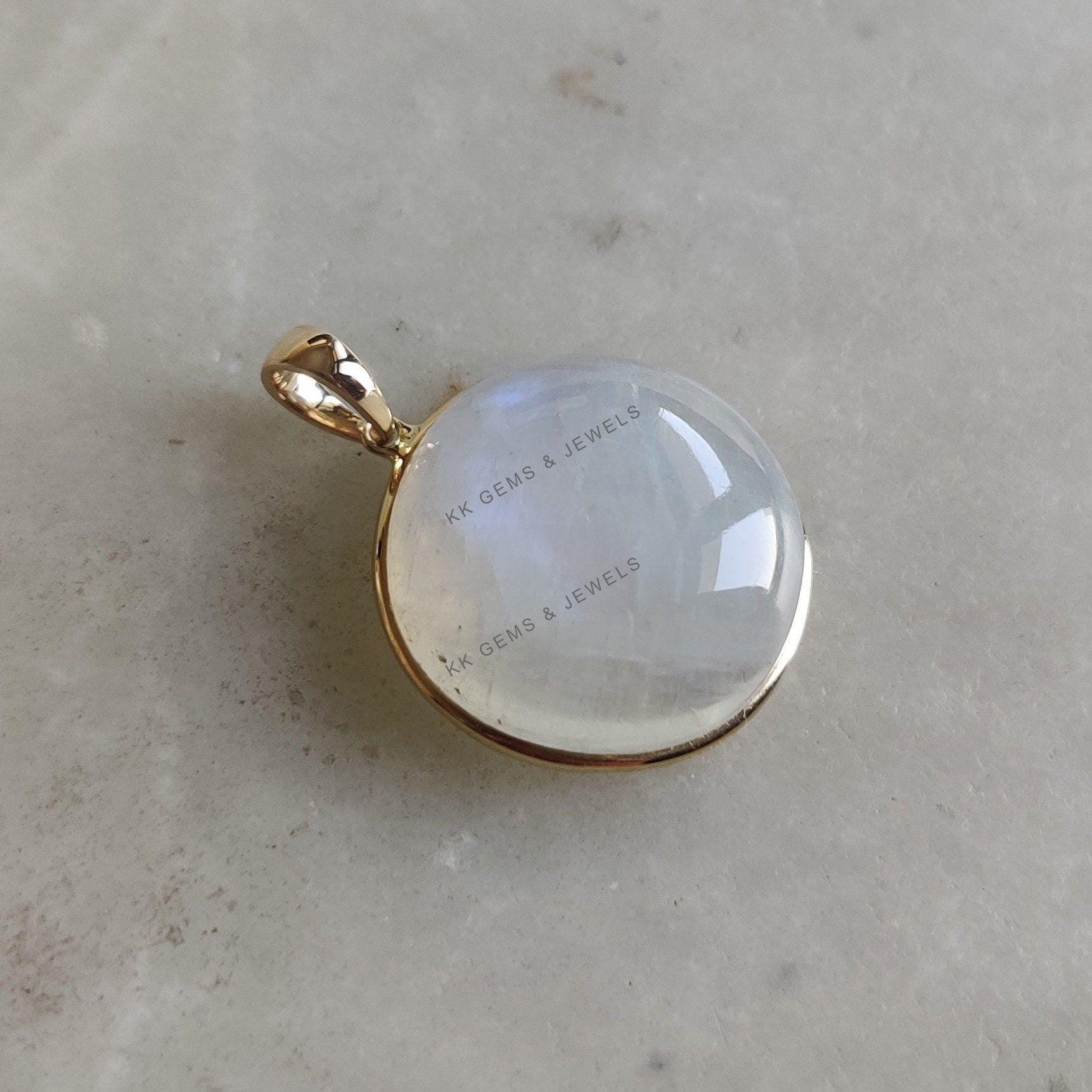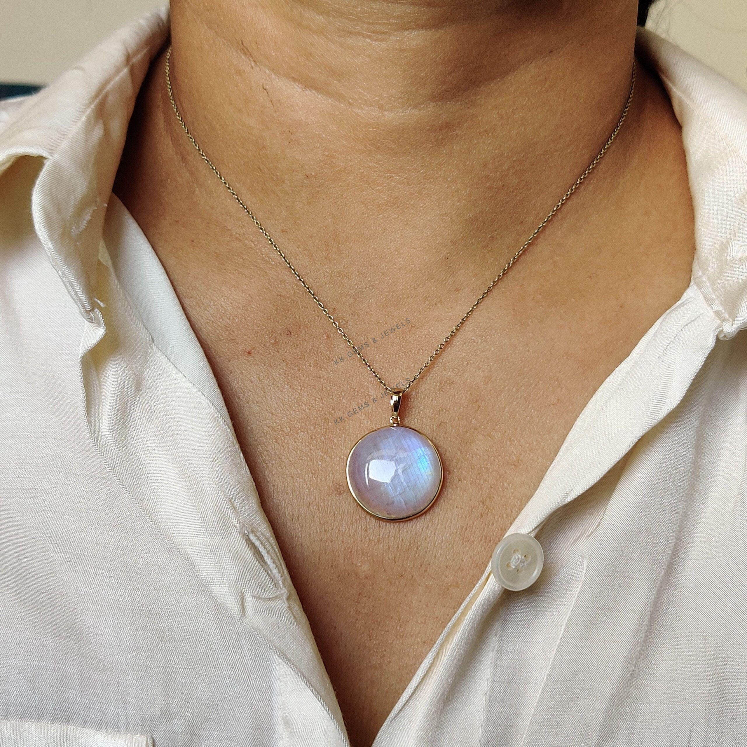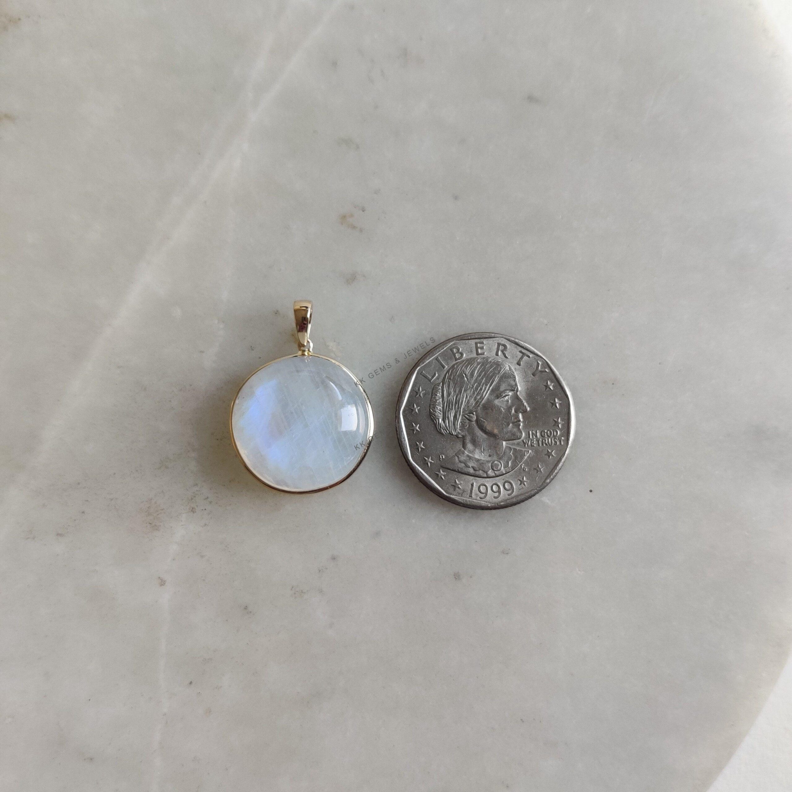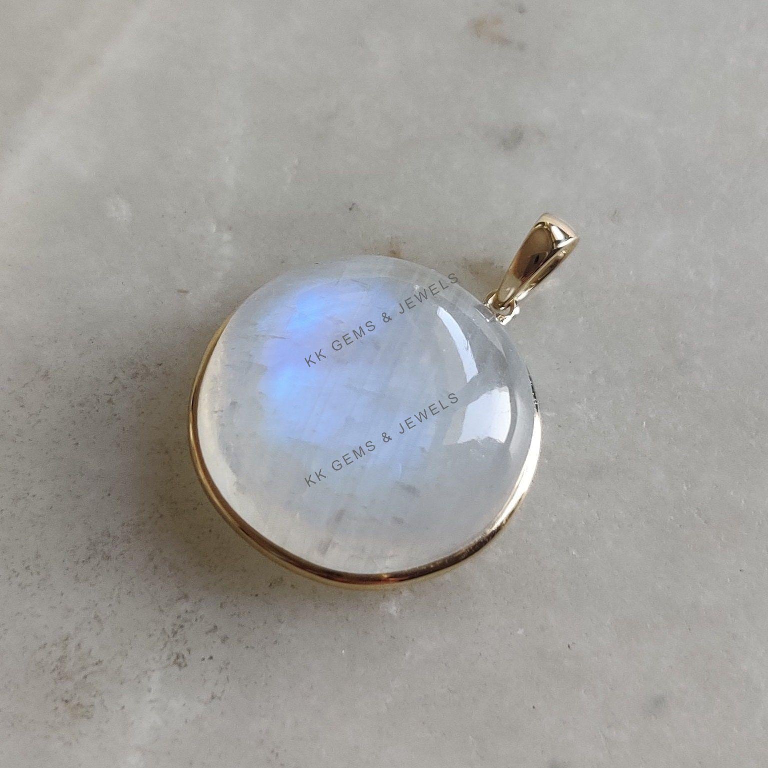 6 reviews for Round Shape, Natural Rainbow Moonstone Bezel Pendant, Set in 14K Solid Gold, Birthstone Jewelry