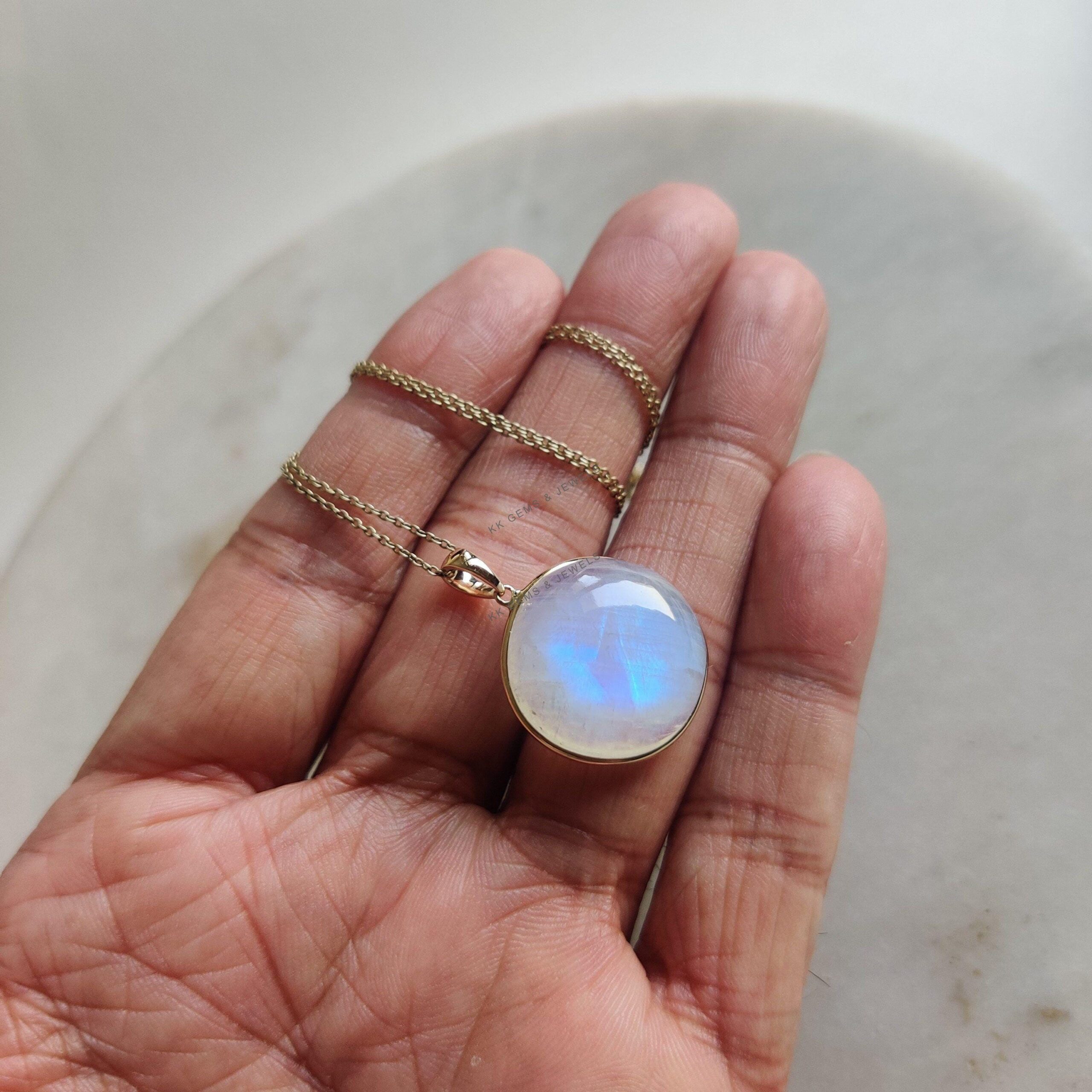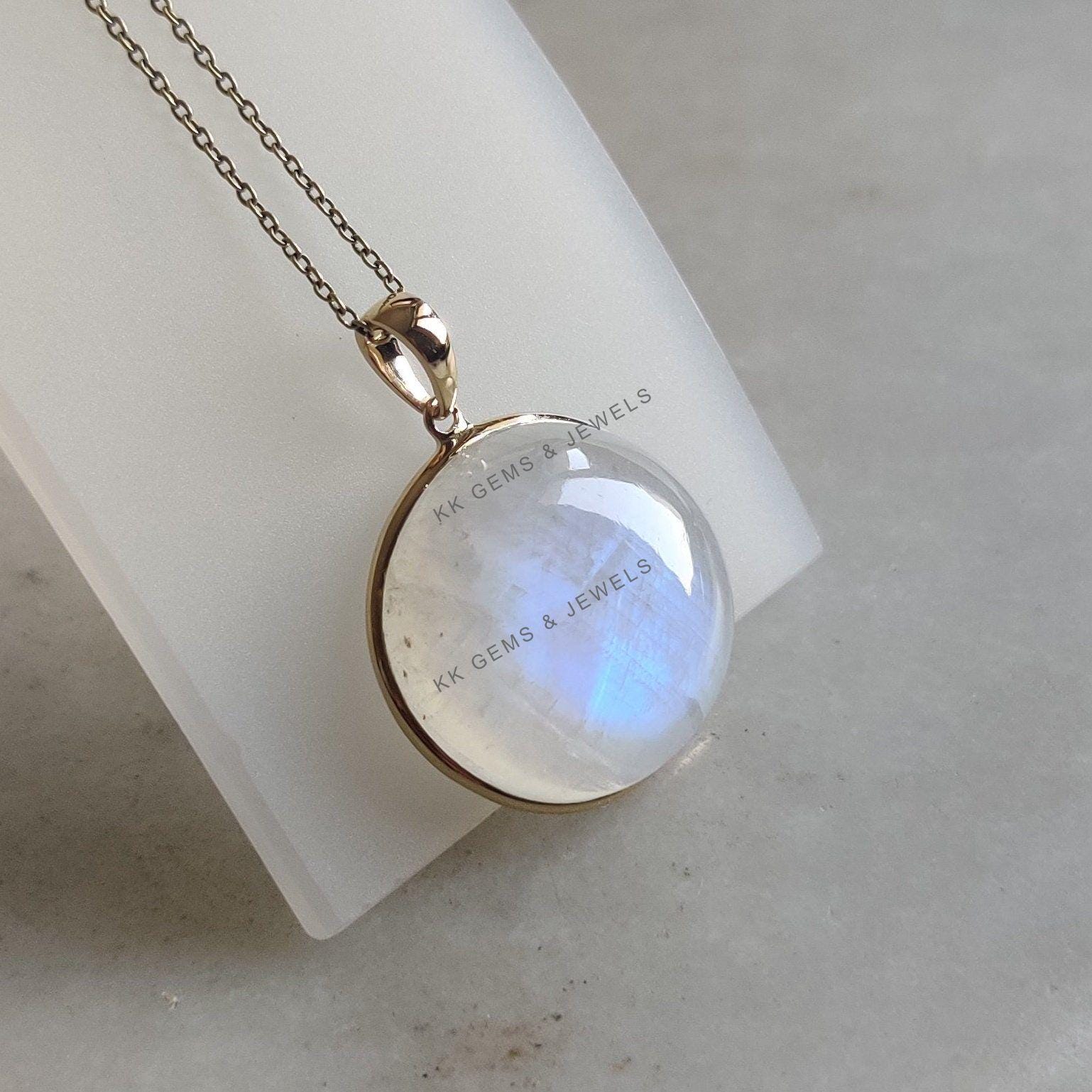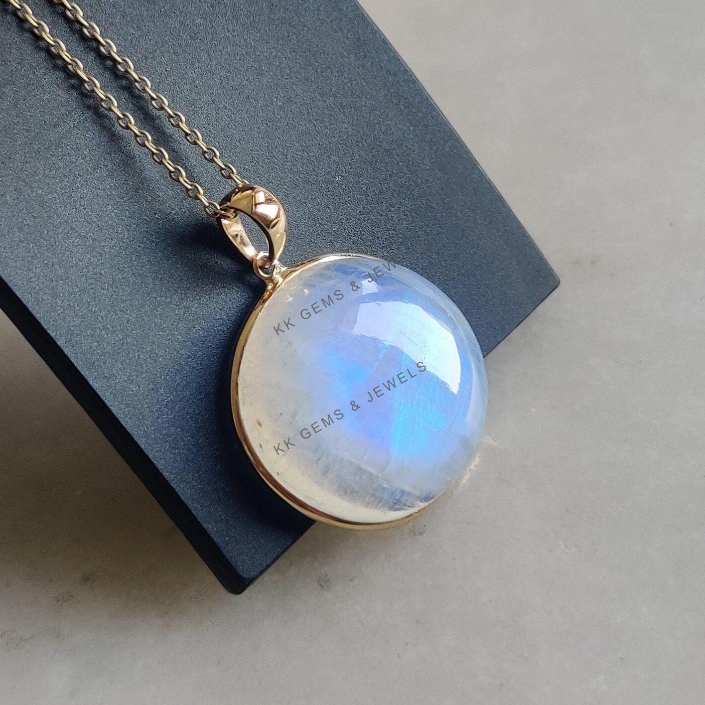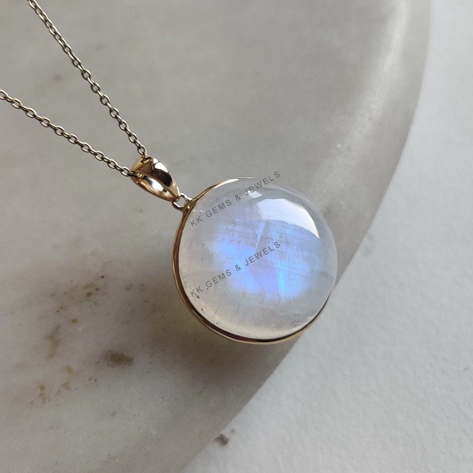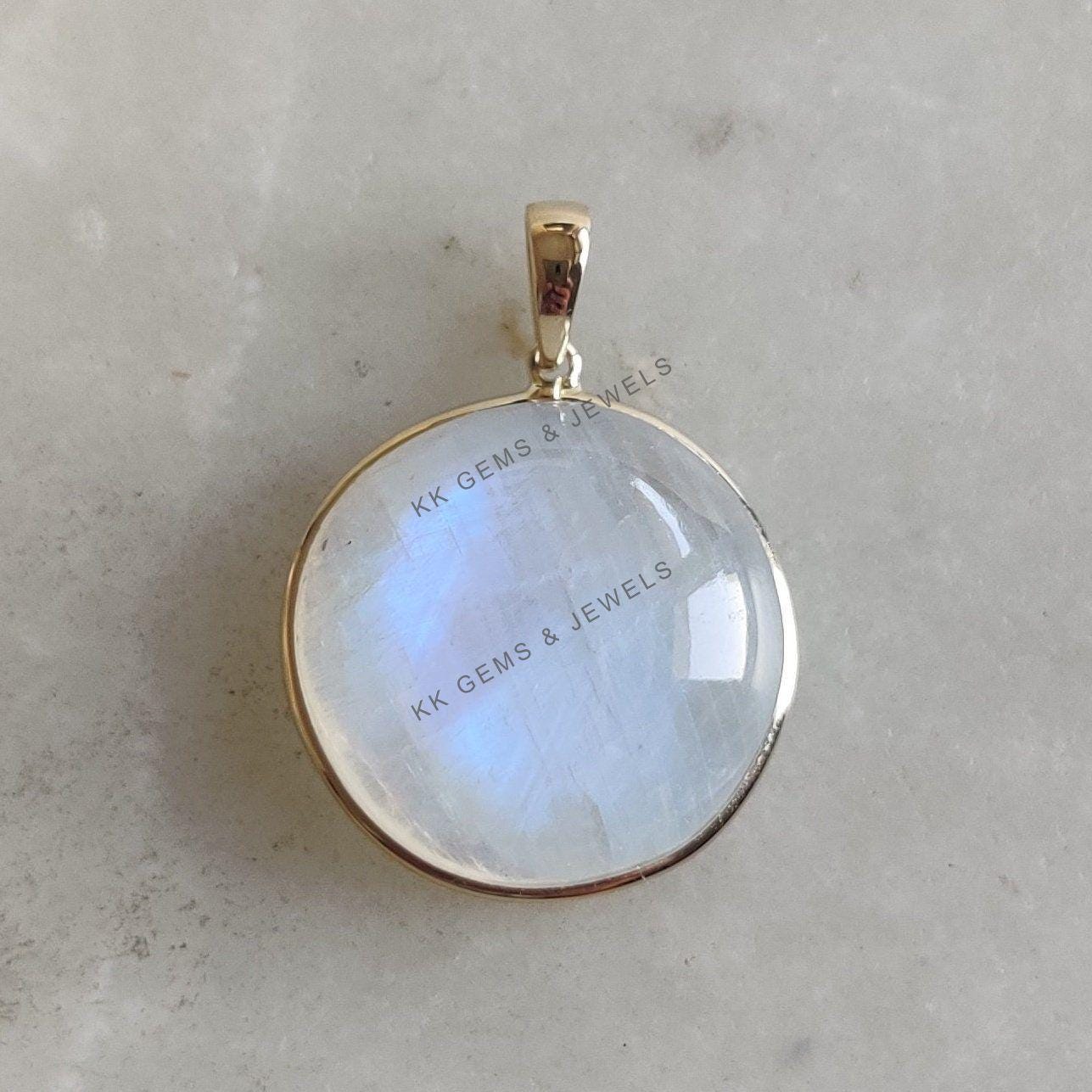 6 reviews for Round Shape, Natural Rainbow Moonstone Bezel Pendant, Set in 14K Solid Gold, Birthstone Jewelry