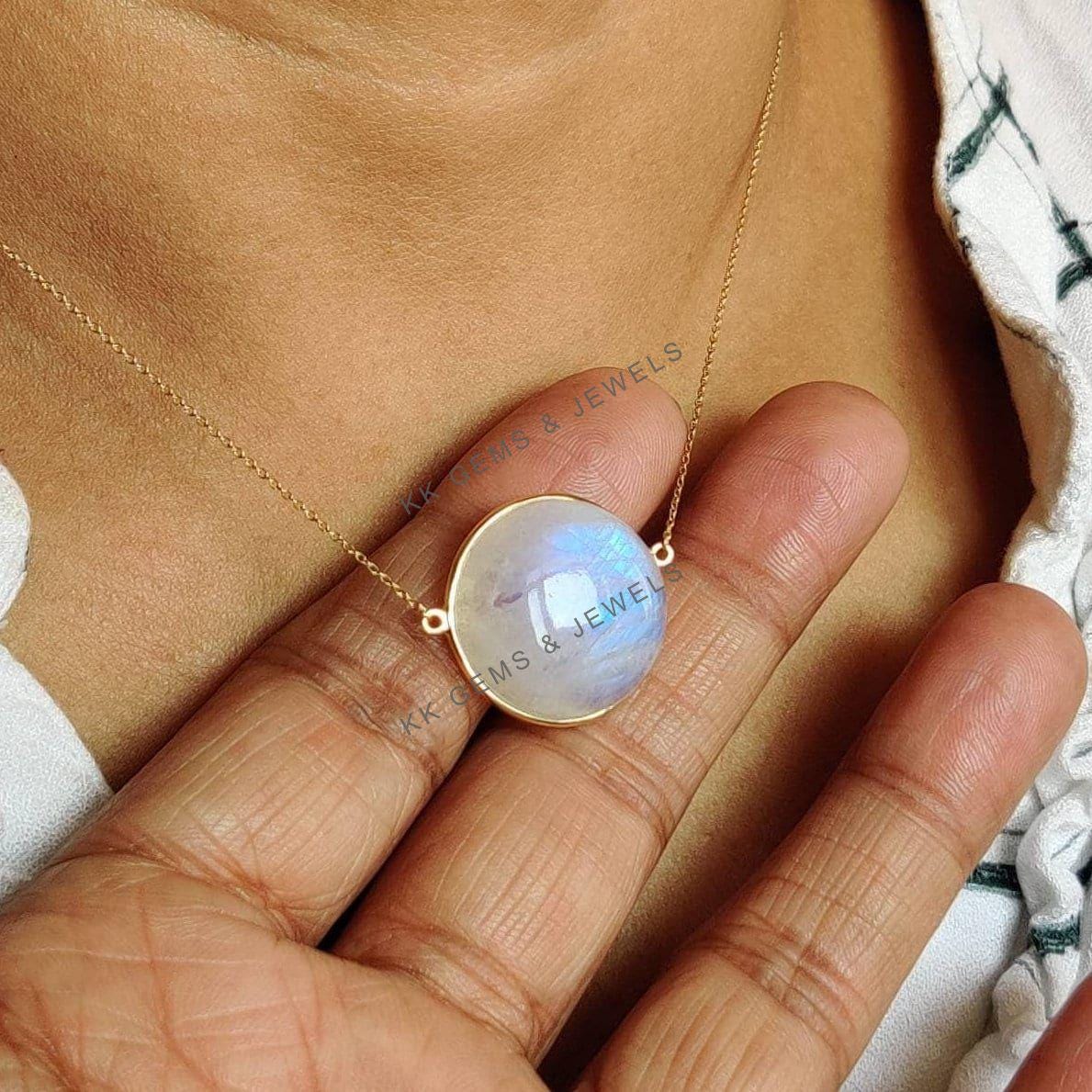 This stunning pendant is set in 14k Solid Yellow Gold with Natural Rainbow Moonstone with utmost precision. It is an unique gemstone pendant for nearly every occasion and is completely hassle-free jewelry. ✓ ABOUT GEMSTONE: Rainbow Moonstone is believed to…