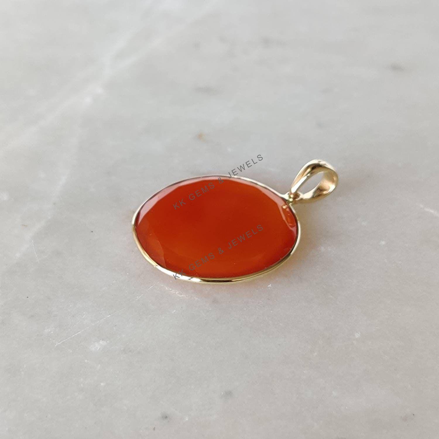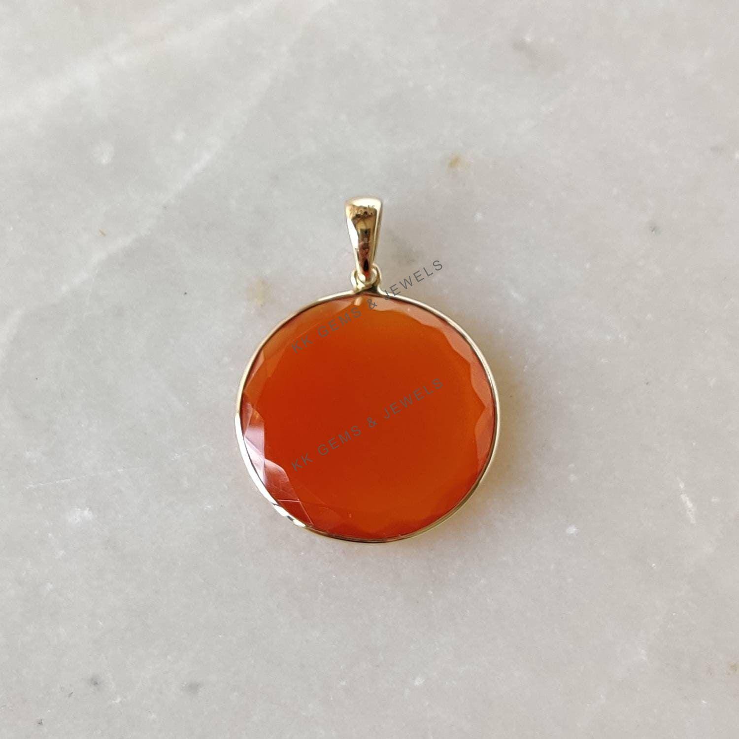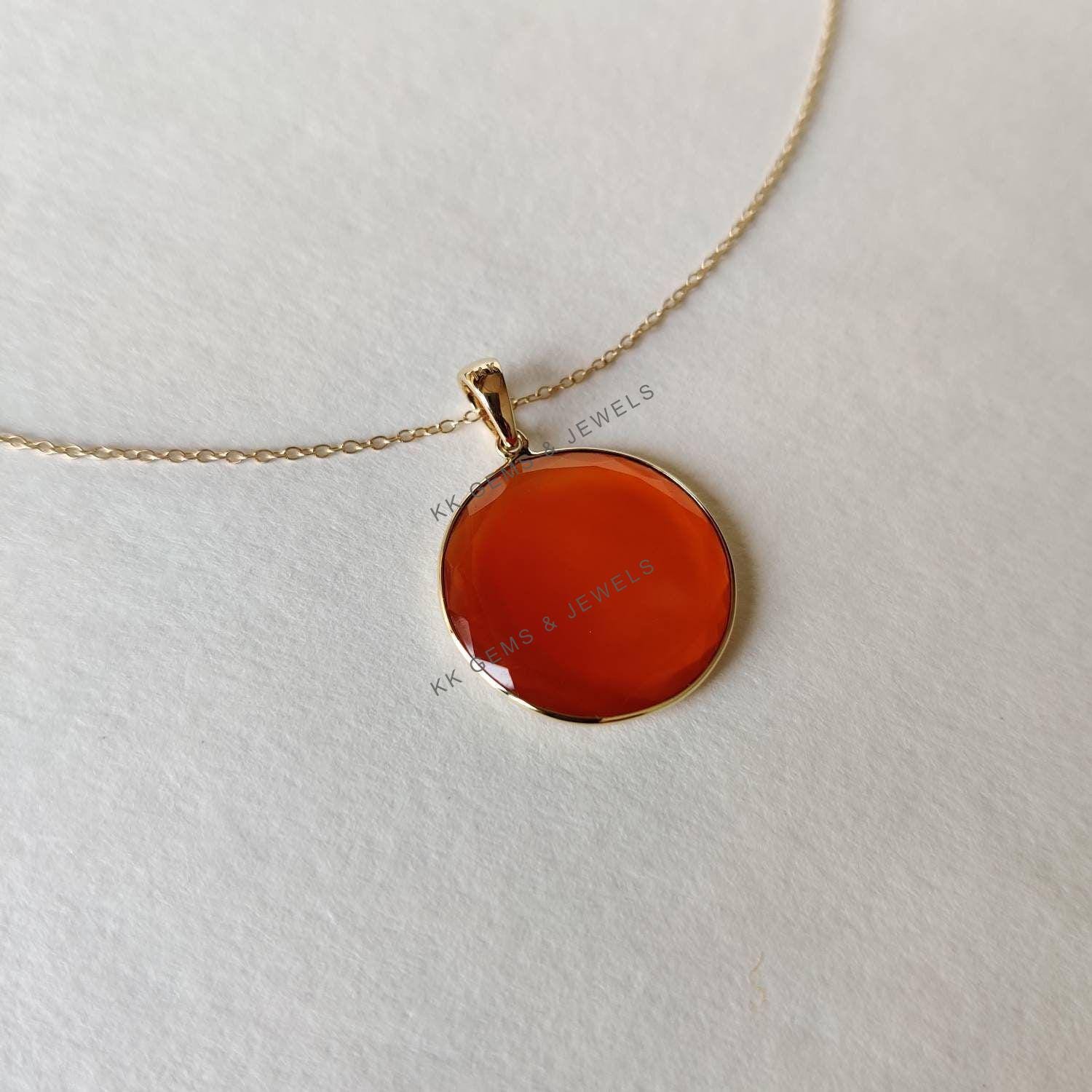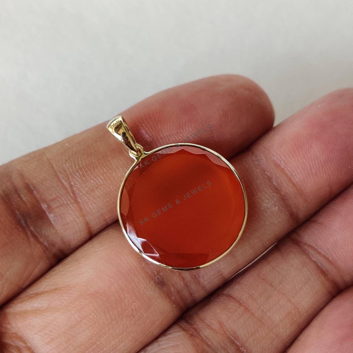 4 reviews for Round Flat Cut Natural Red Onyx Birthstone Pendant Set in 14K Solid Gold Bezel