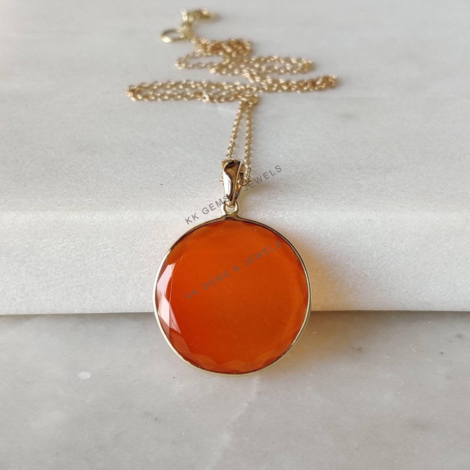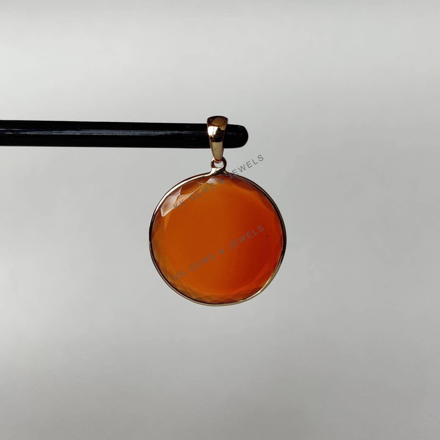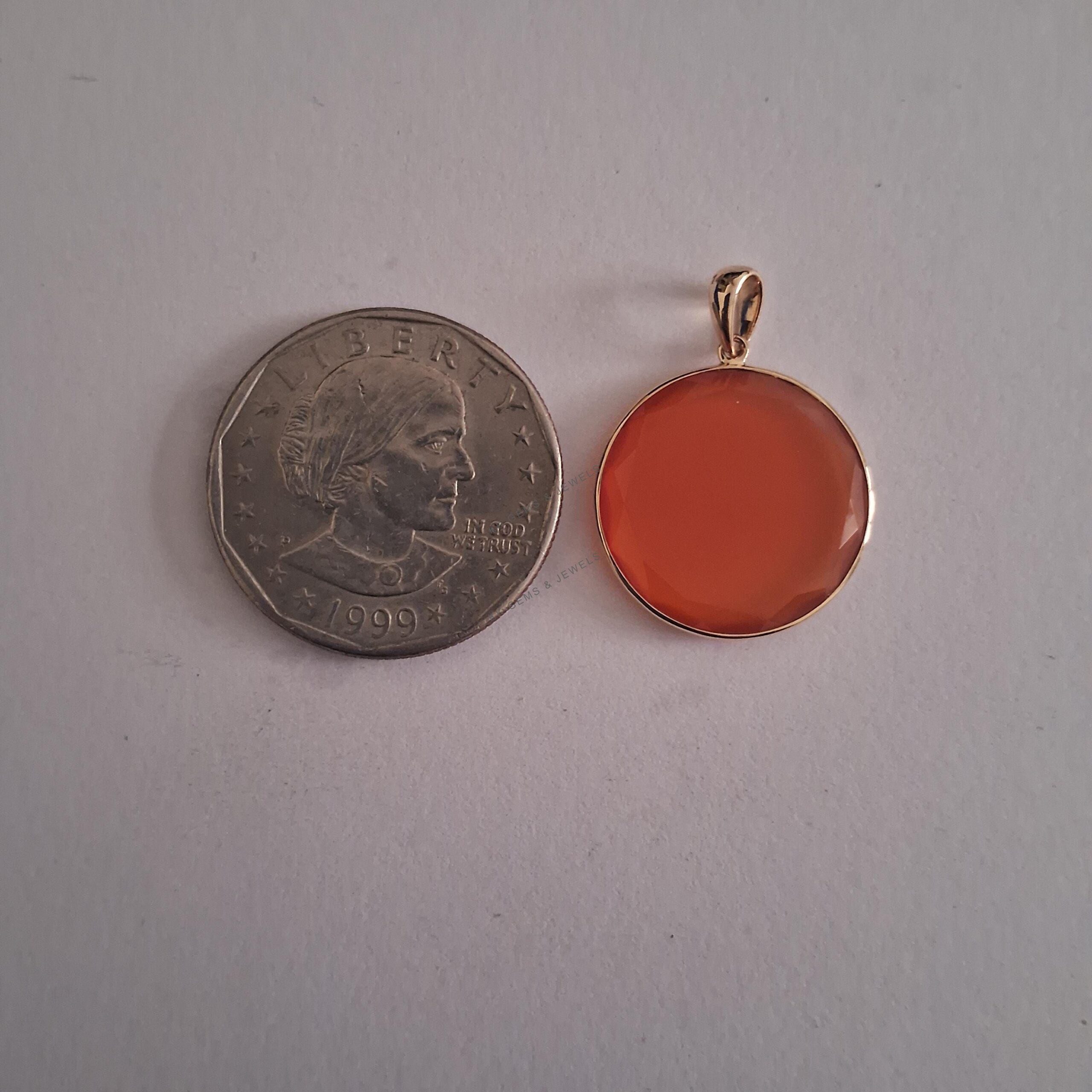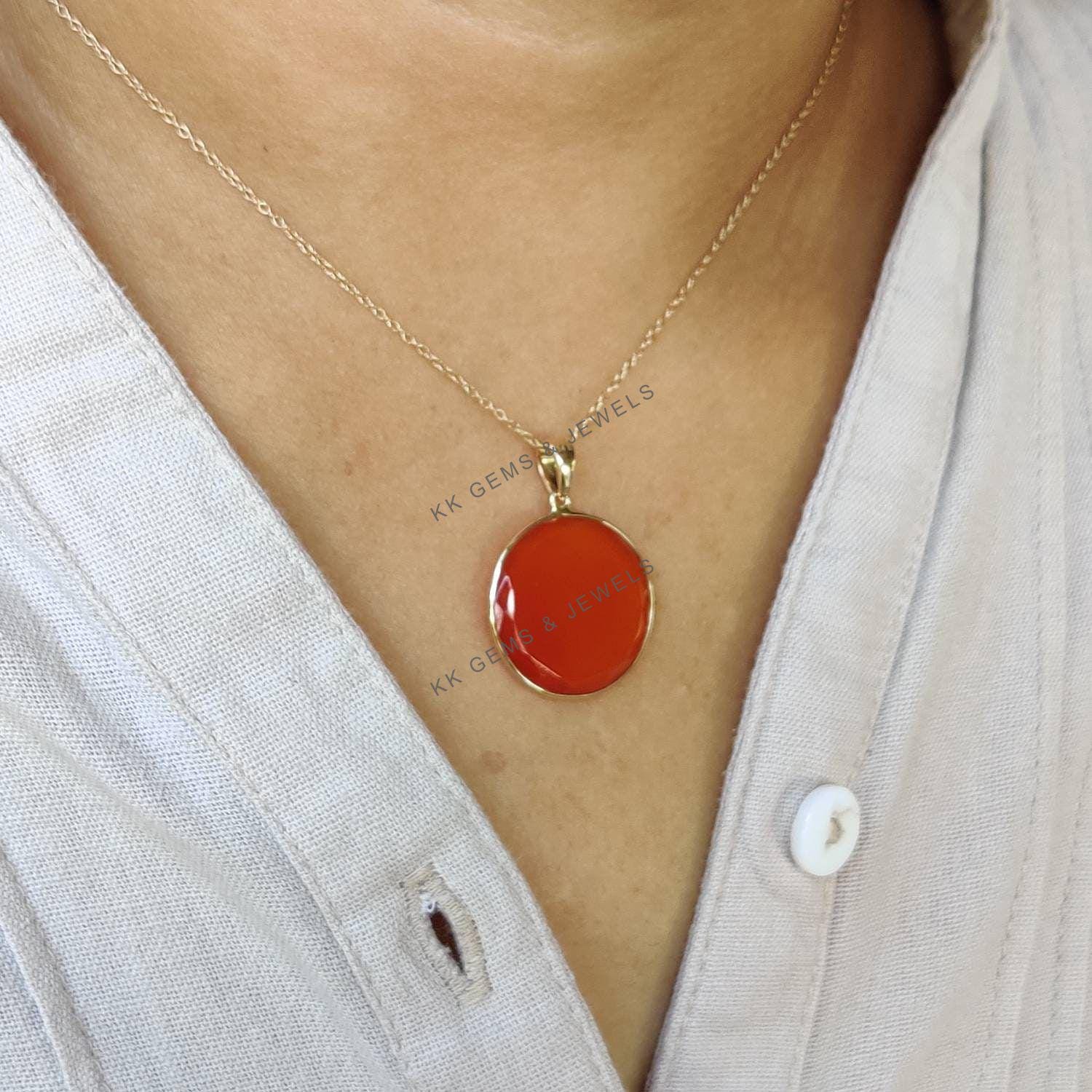 4 reviews for Round Flat Cut Natural Red Onyx Birthstone Pendant Set in 14K Solid Gold Bezel
