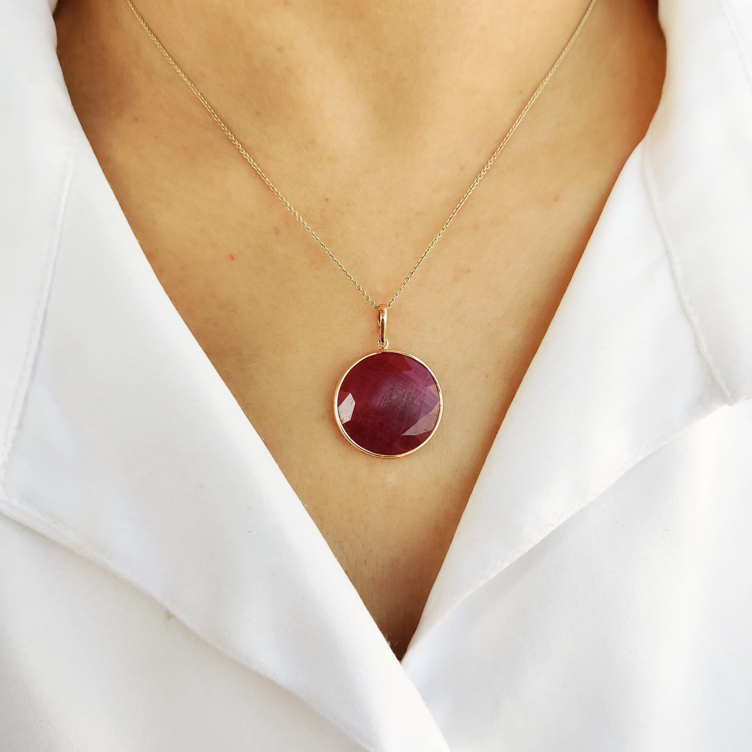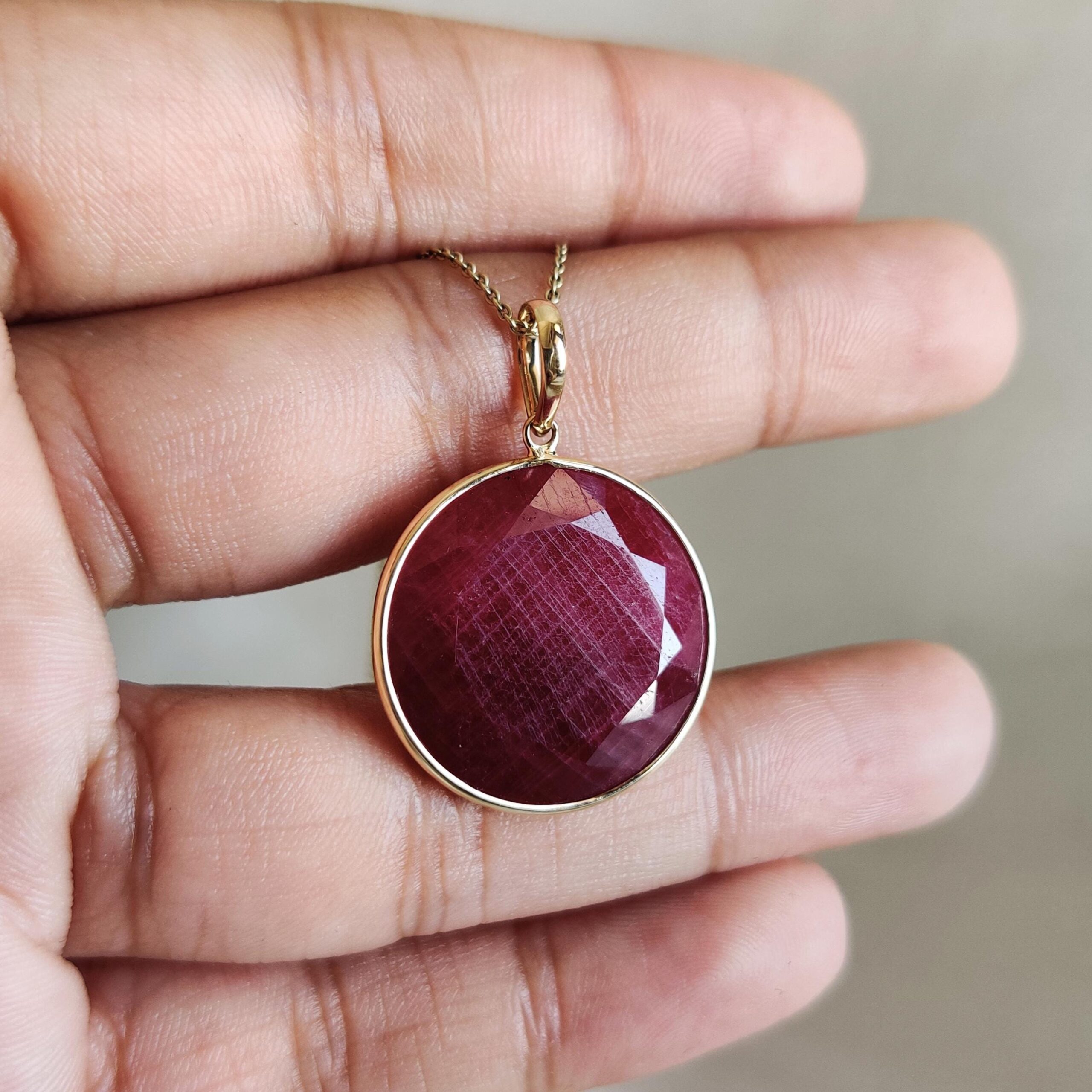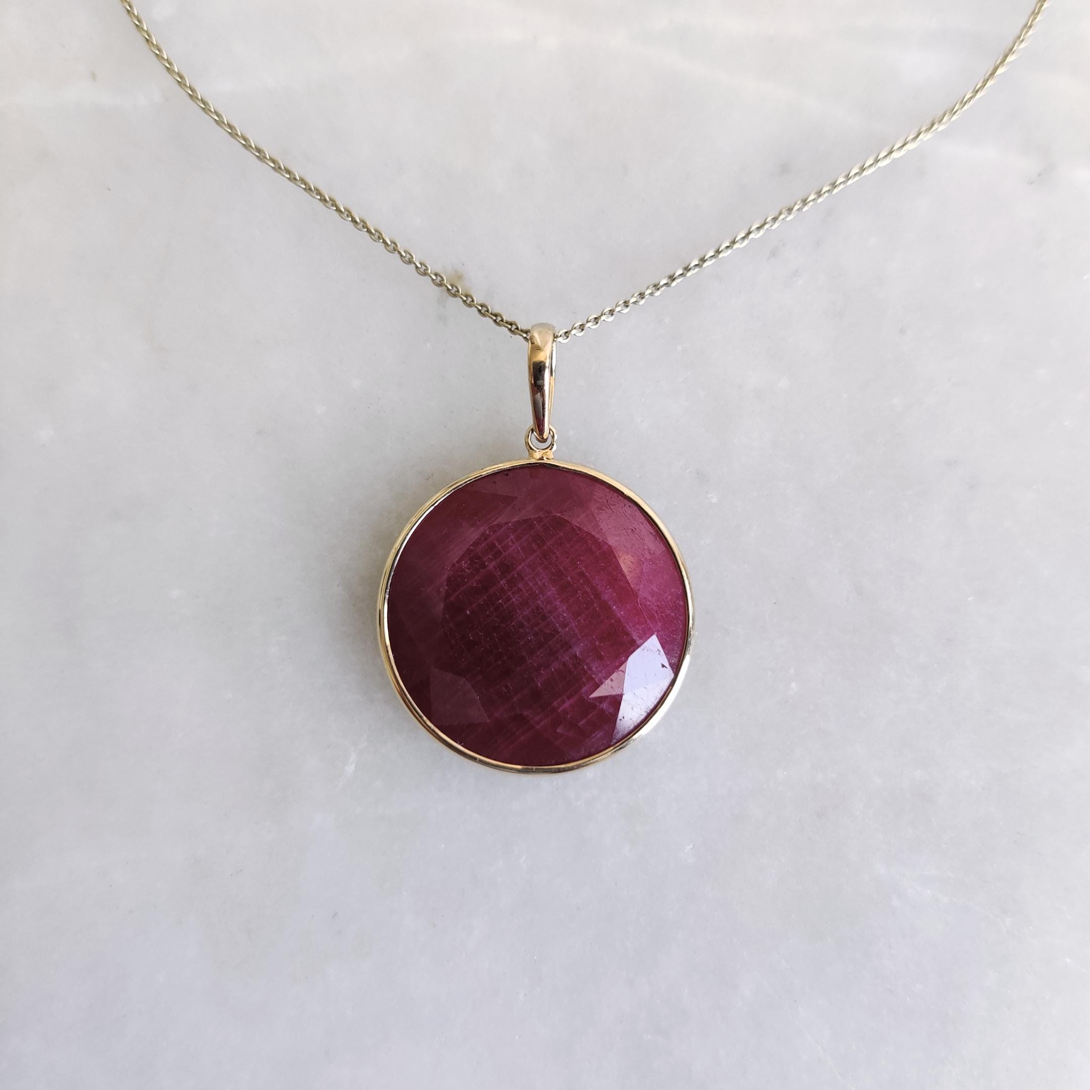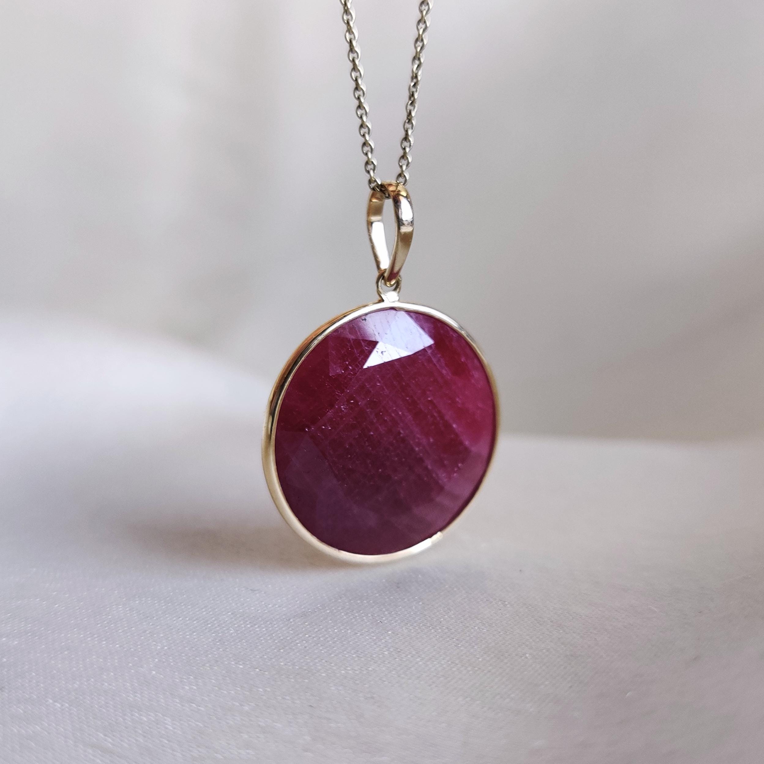 3 reviews for Round Shape Natural Ruby Birthstone Bezel Pendant Set in 14K Solid Gold