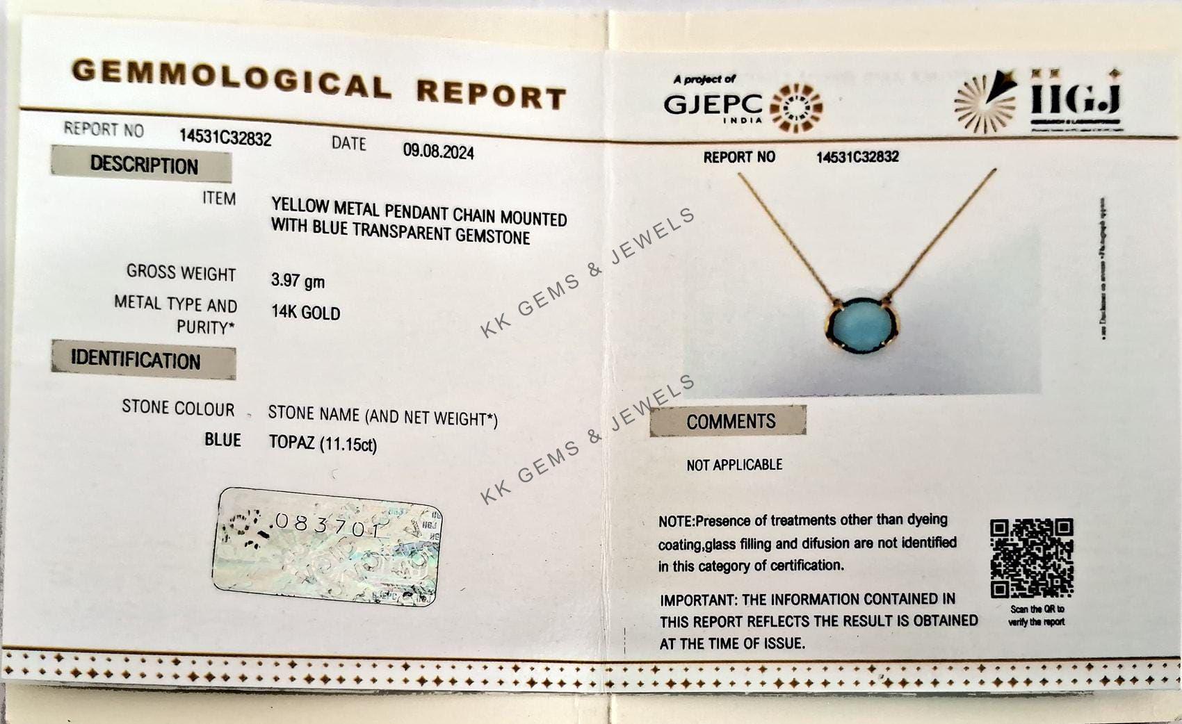 This stunning necklace is set in 14K Solid Yellow Gold with Natural Sky Blue Topaz gemstones. It is an unique minimalist necklace and is therefore completely hassle-free jewelry.