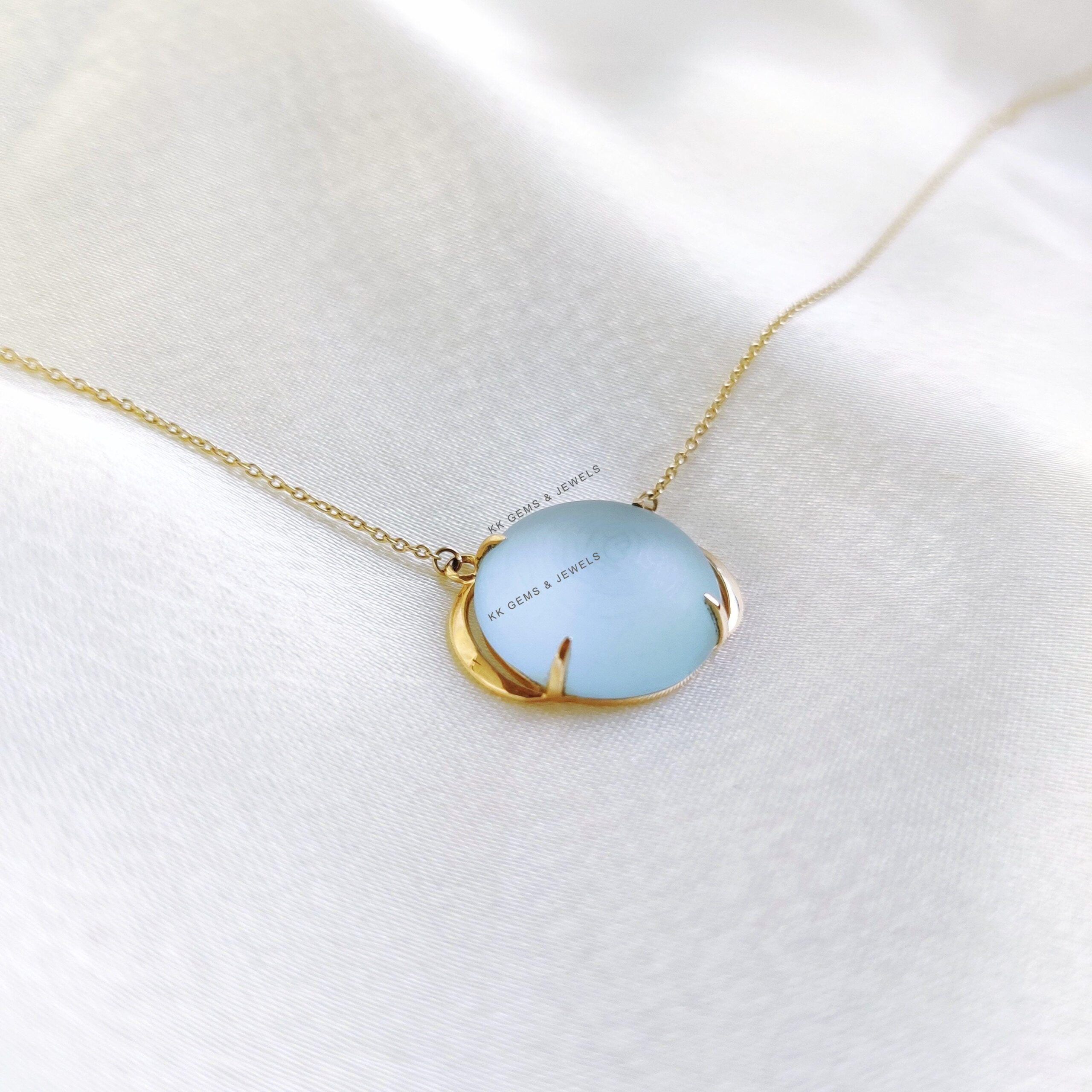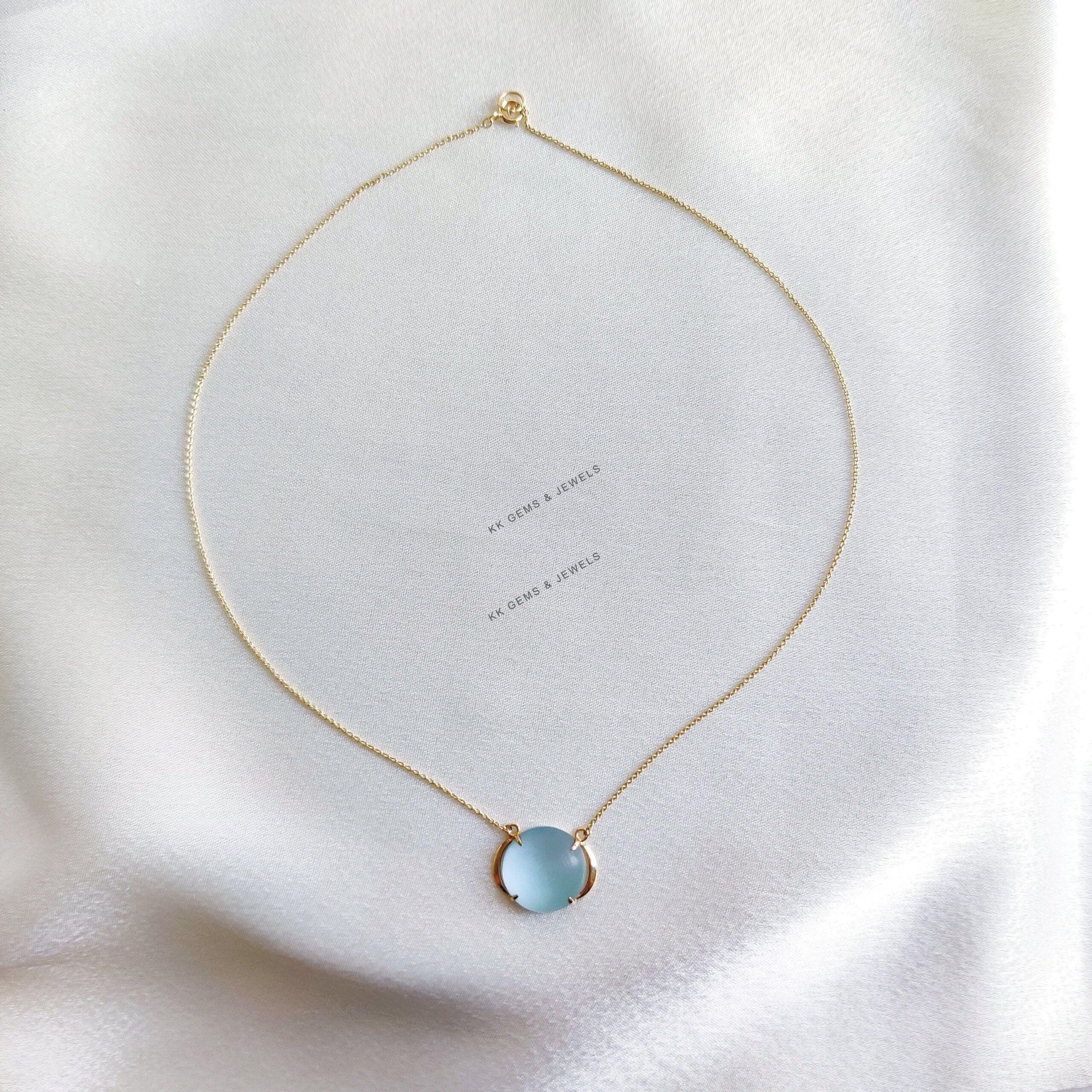This stunning necklace is set in 14K Solid Yellow Gold with Natural Sky Blue Topaz gemstones. It is an unique minimalist necklace and is therefore completely hassle-free jewelry. ✓ ABOUT GEMSTONE Sky Blue Topaz is a mesmerizing gemstone admired for…