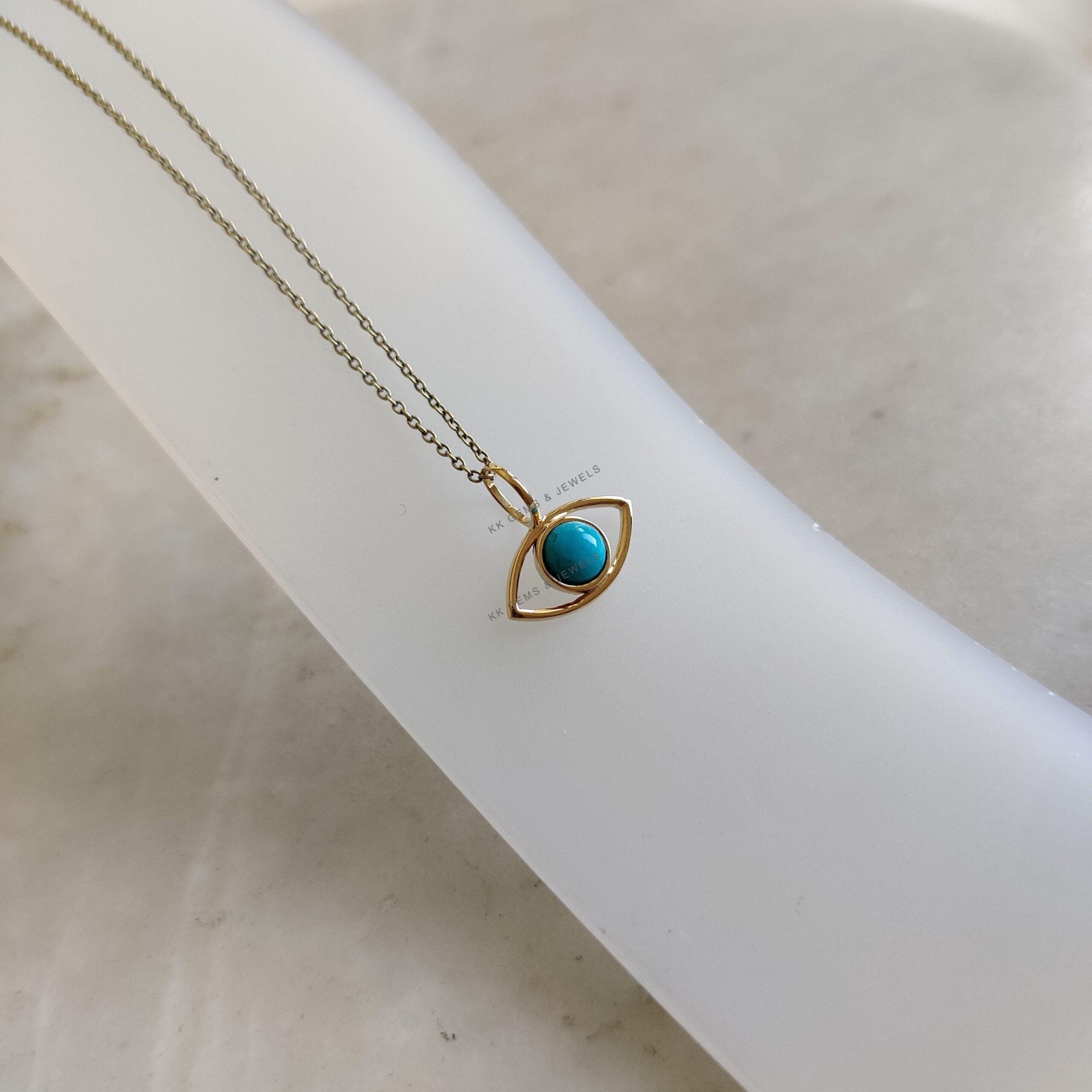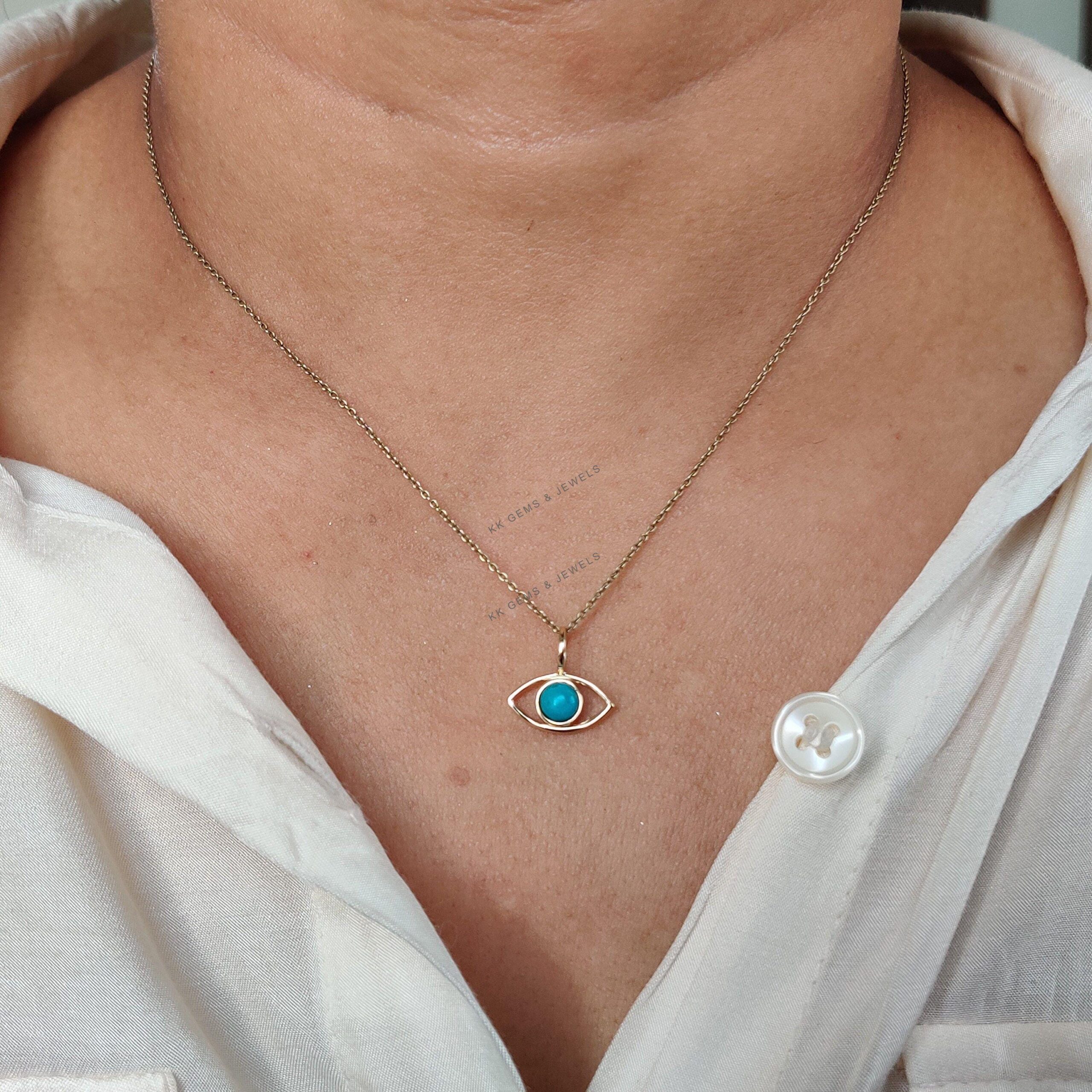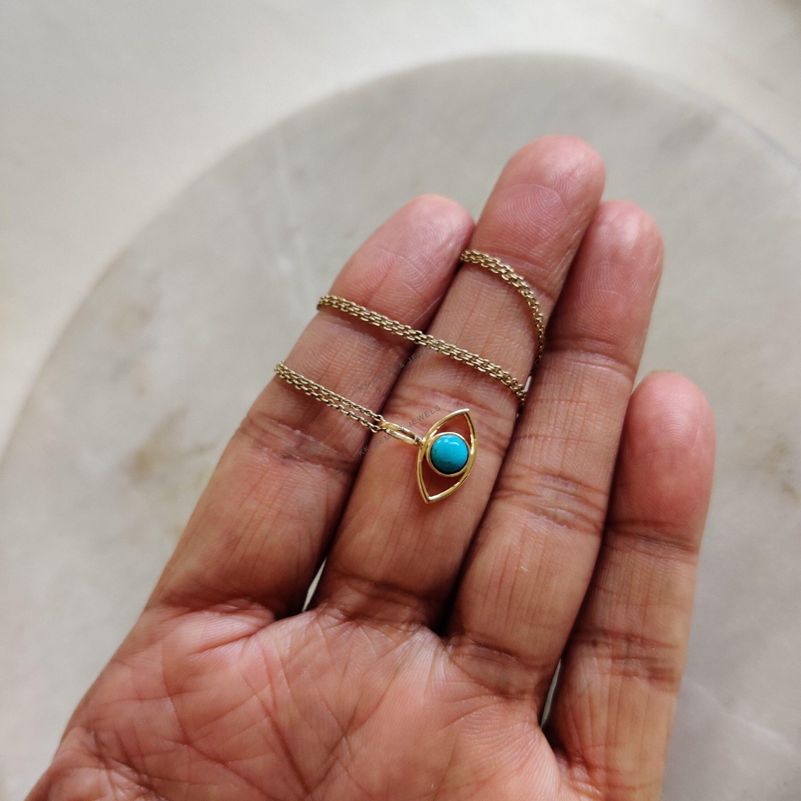 This stunning Evil Eye Pendant is set in 14k Solid Yellow Gold with Natural Turquoise with utmost precision. It is an unique gemstone pendant for nearly every occasion and is completely hassle-free jewelry. It is great addition as a layered…