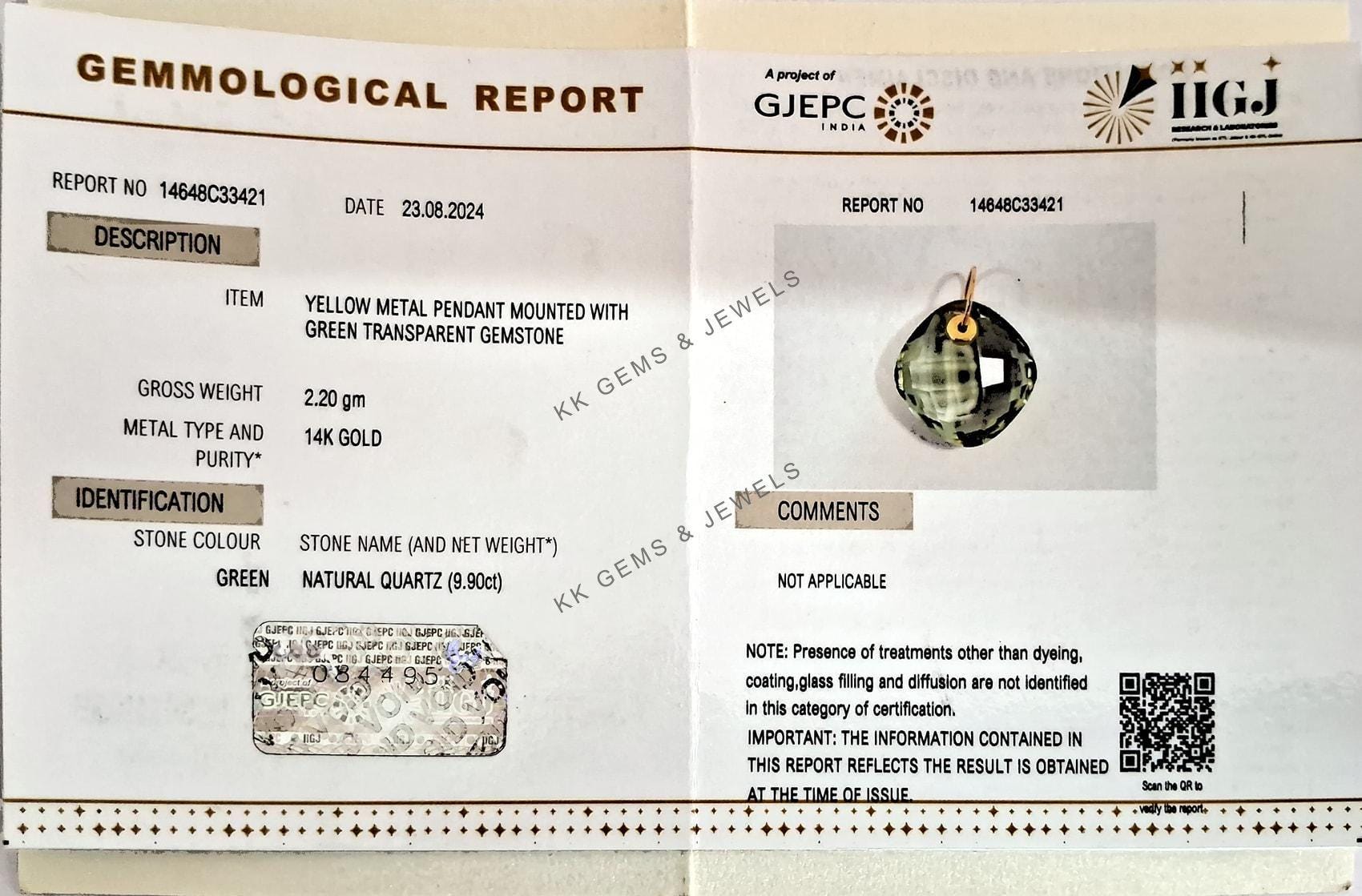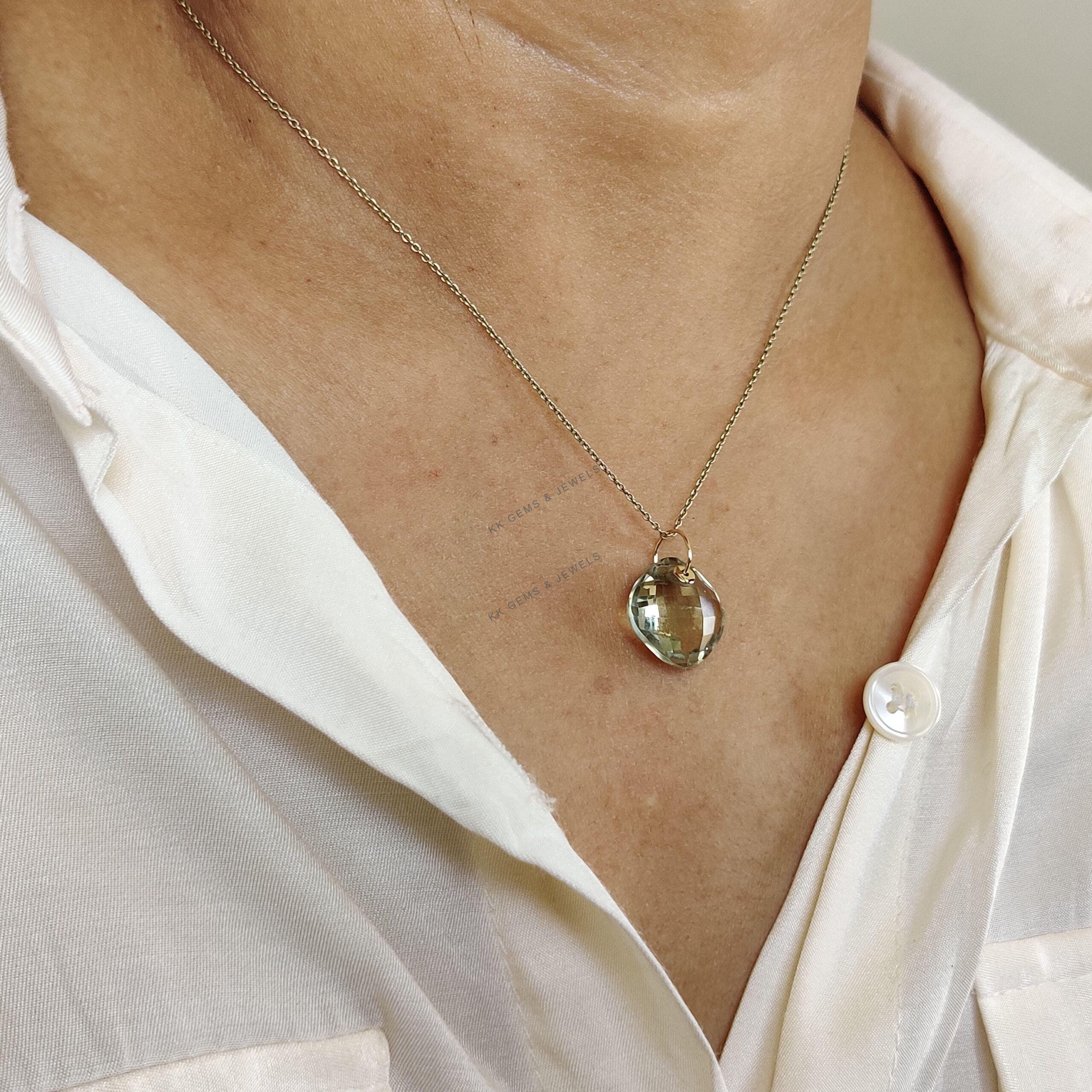 This stunning pendant is set in 14K Solid Yellow Gold with Natural Green Amethyst with utmost precision. It is an unique gemstone pendant for nearly every occasion and is completely hassle-free jewelry.