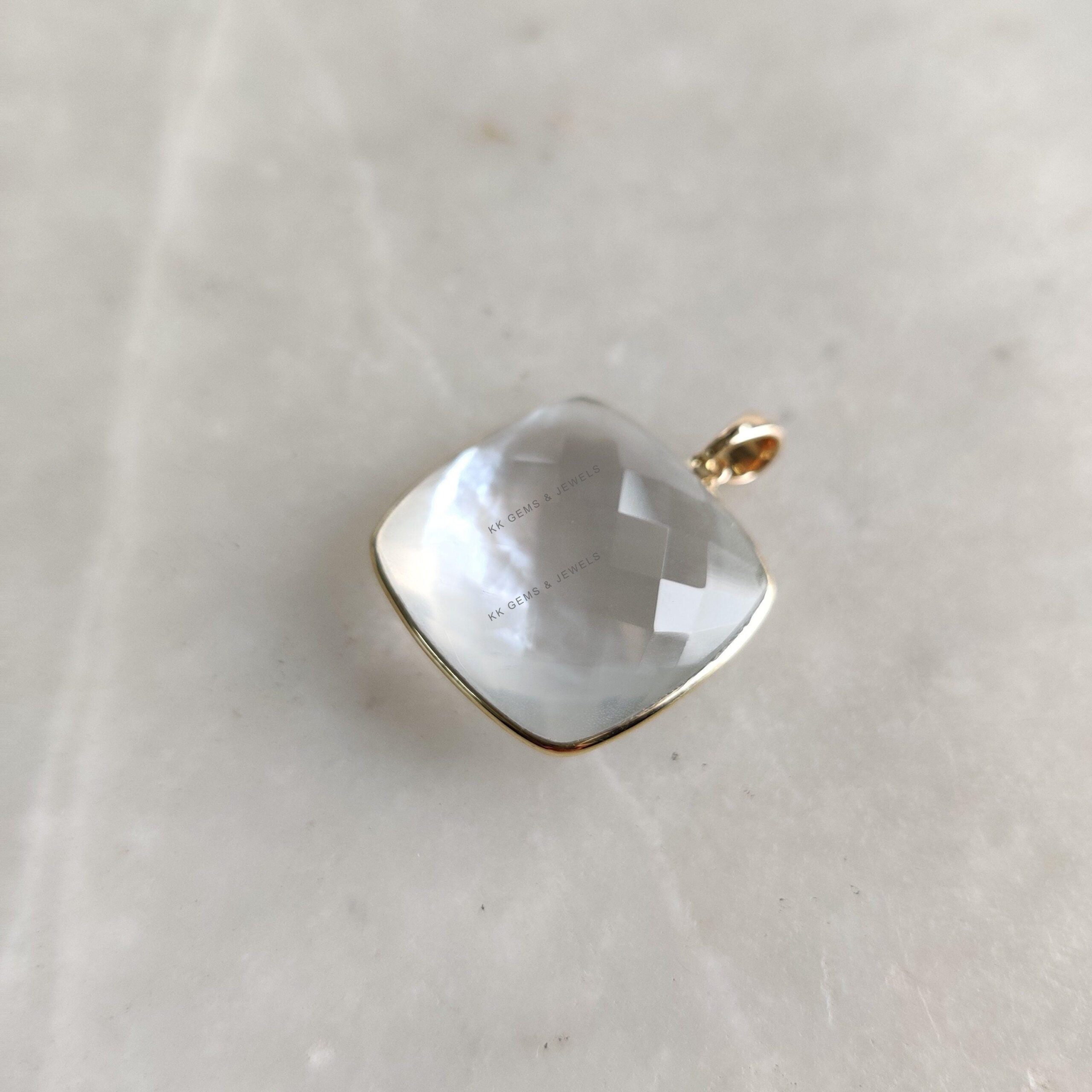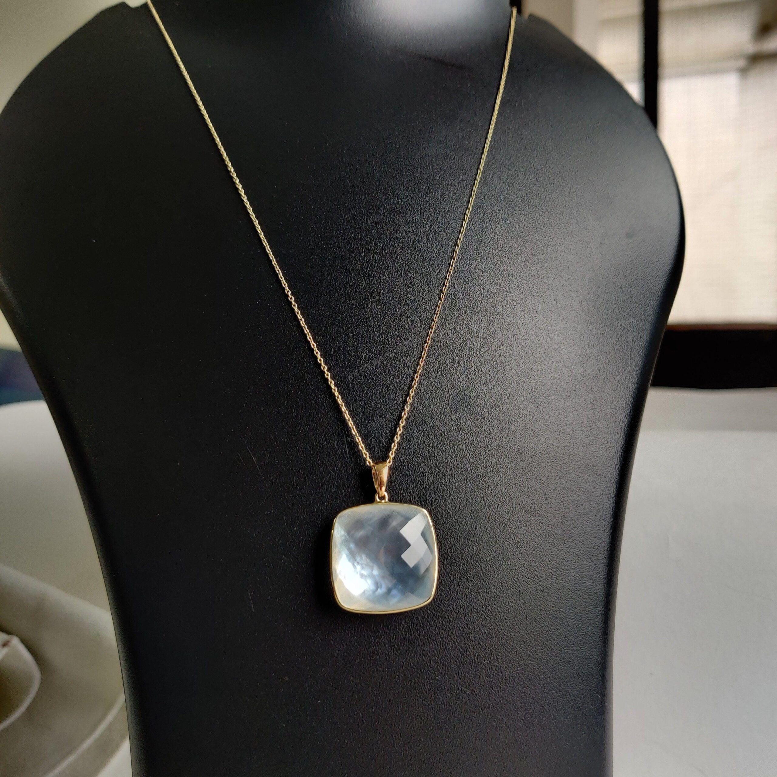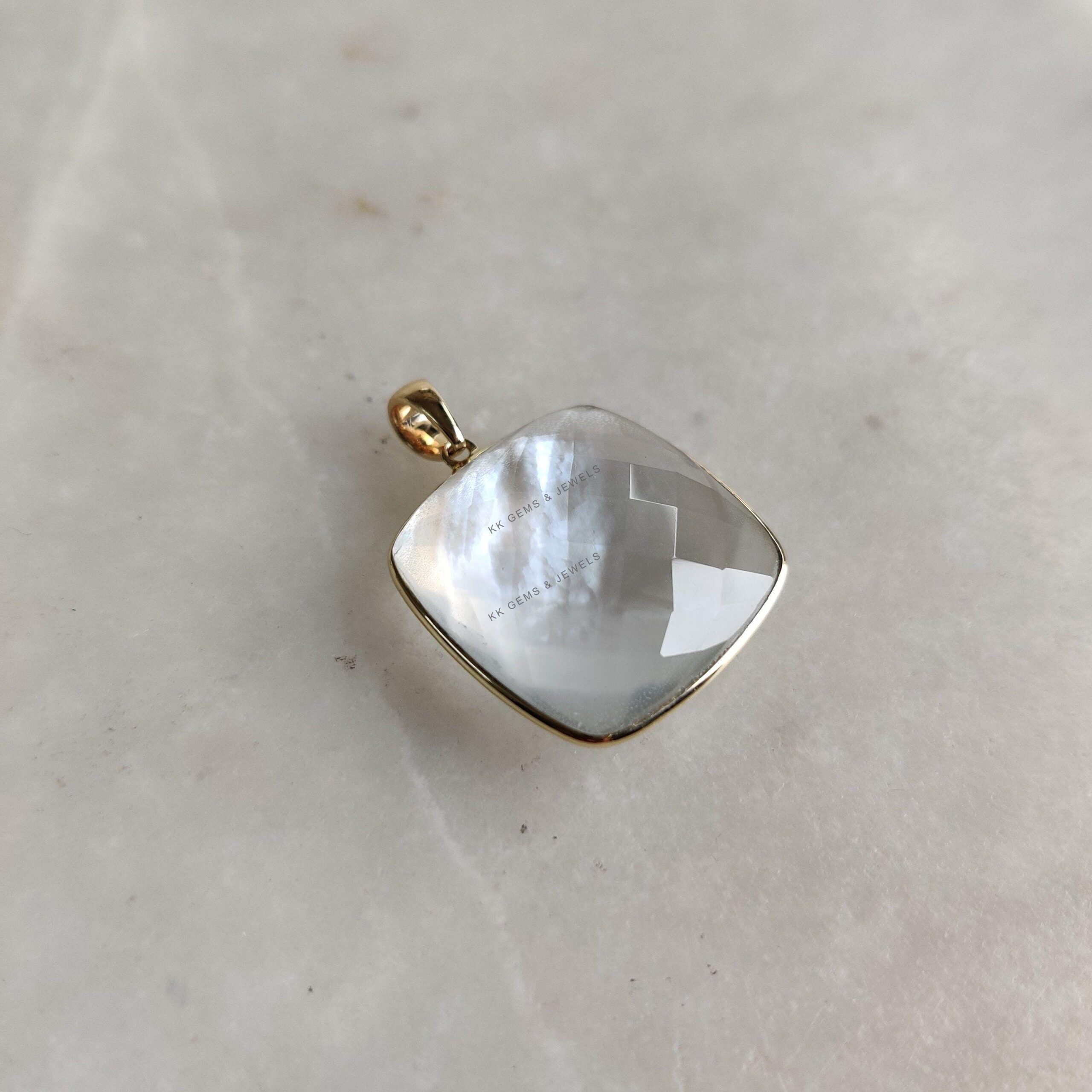 This stunning pendant is set in 14k Solid Yellow Gold with Natural Mop Doublet with Clear Quartz utmost precision. It is an unique gemstone pendant for nearly every occasion and is completely hassle-free jewelry.
