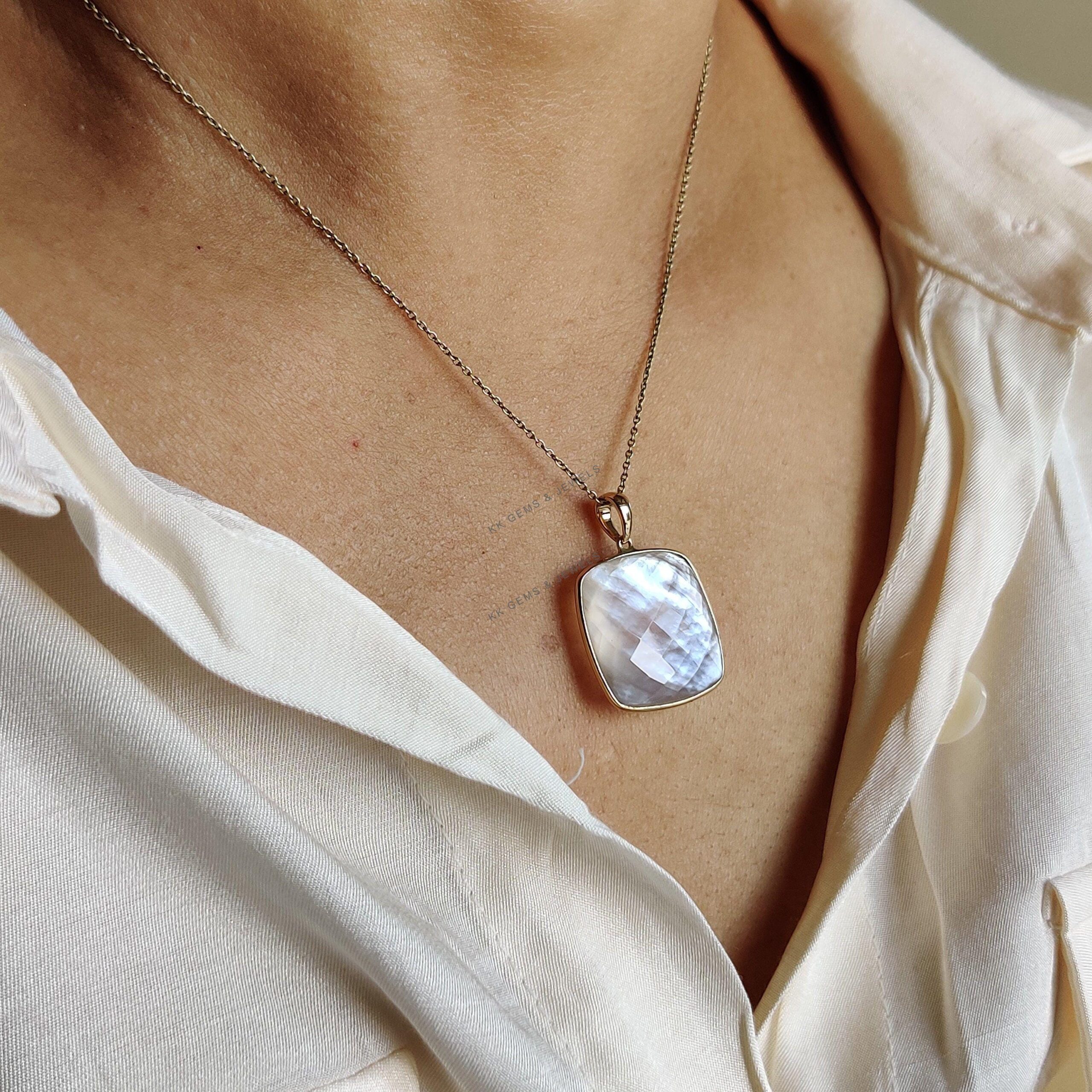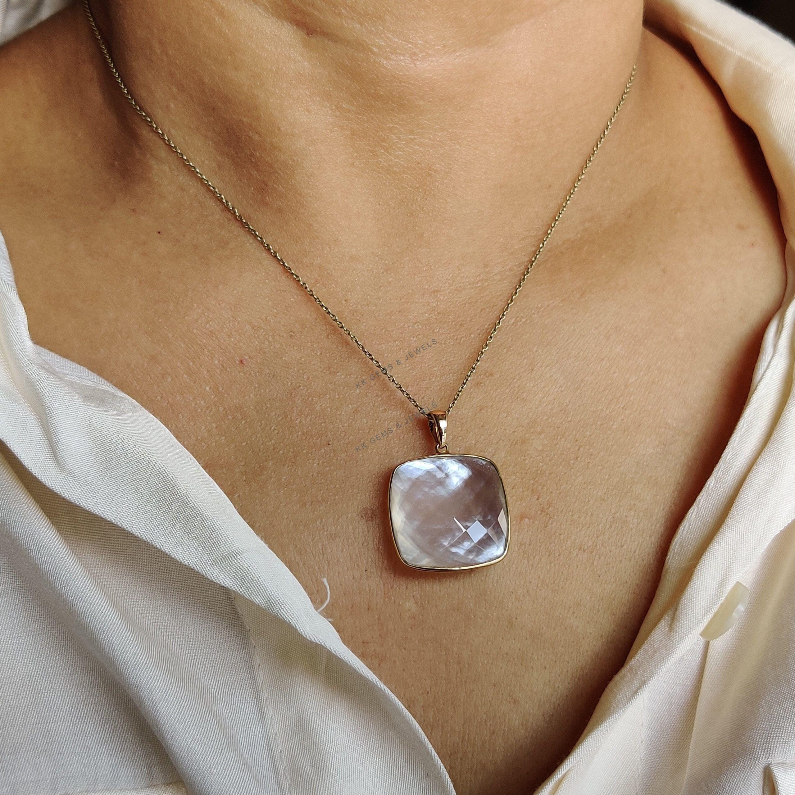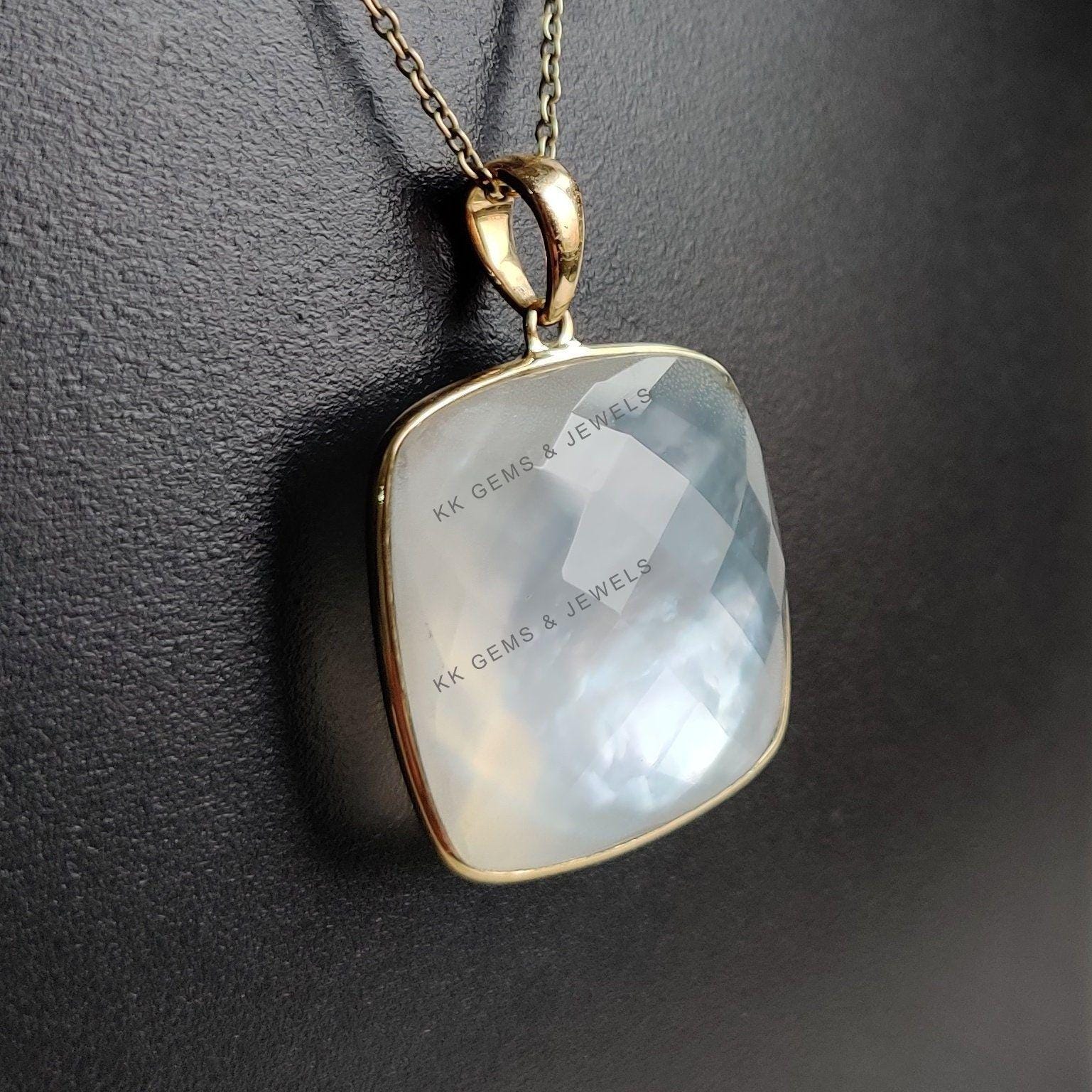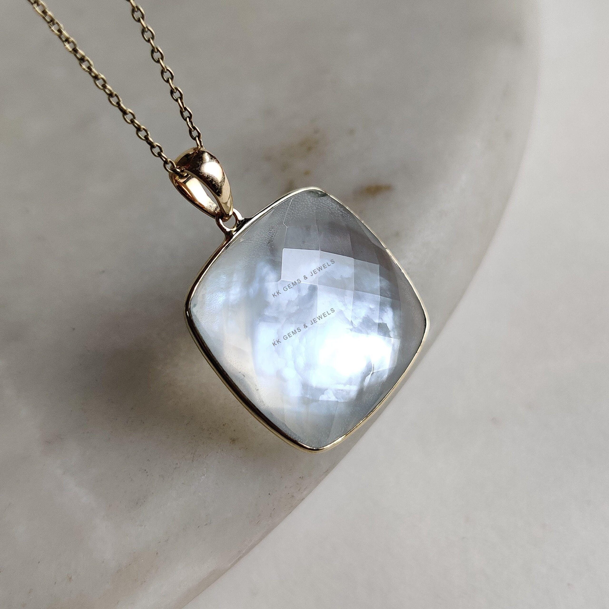 This stunning pendant is set in 14k Solid Yellow Gold with Natural Mop Doublet with Clear Quartz utmost precision. It is an unique gemstone pendant for nearly every occasion and is completely hassle-free jewelry.