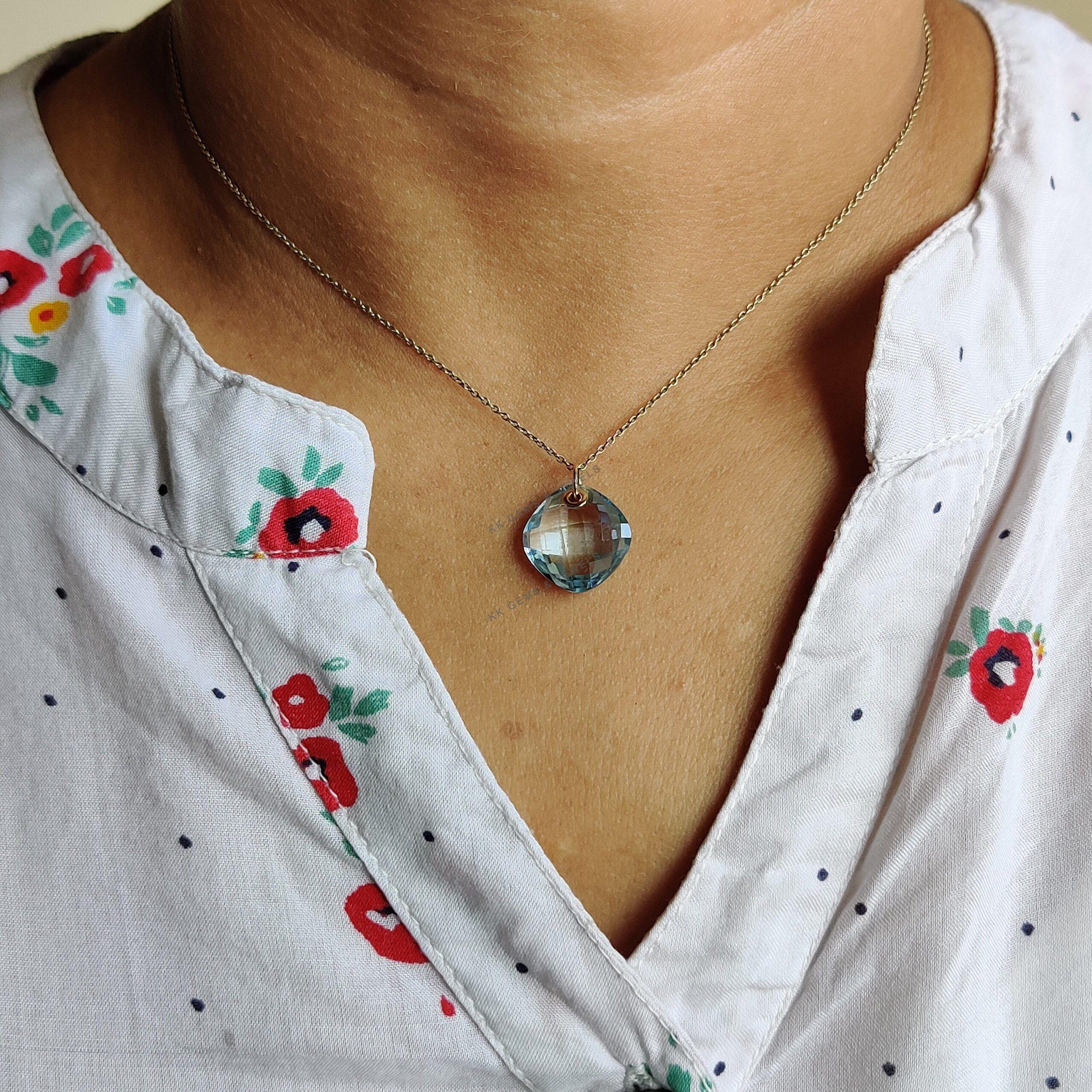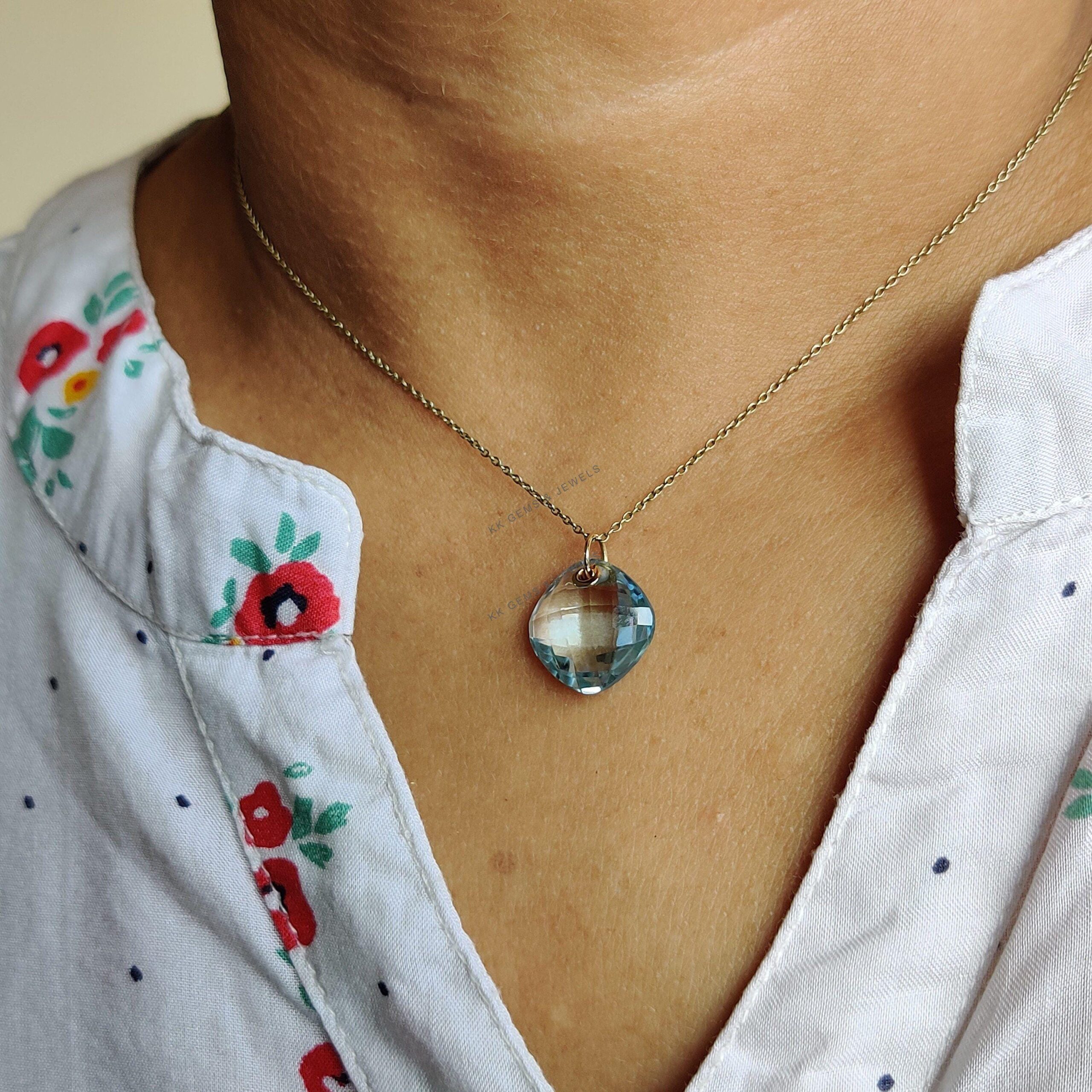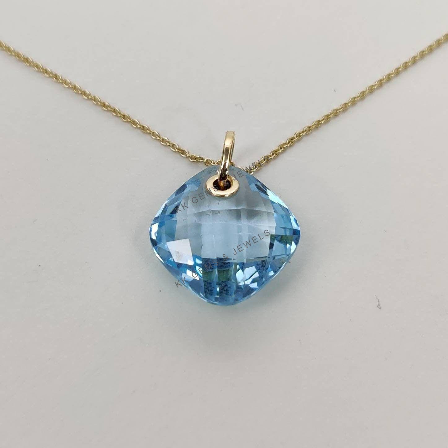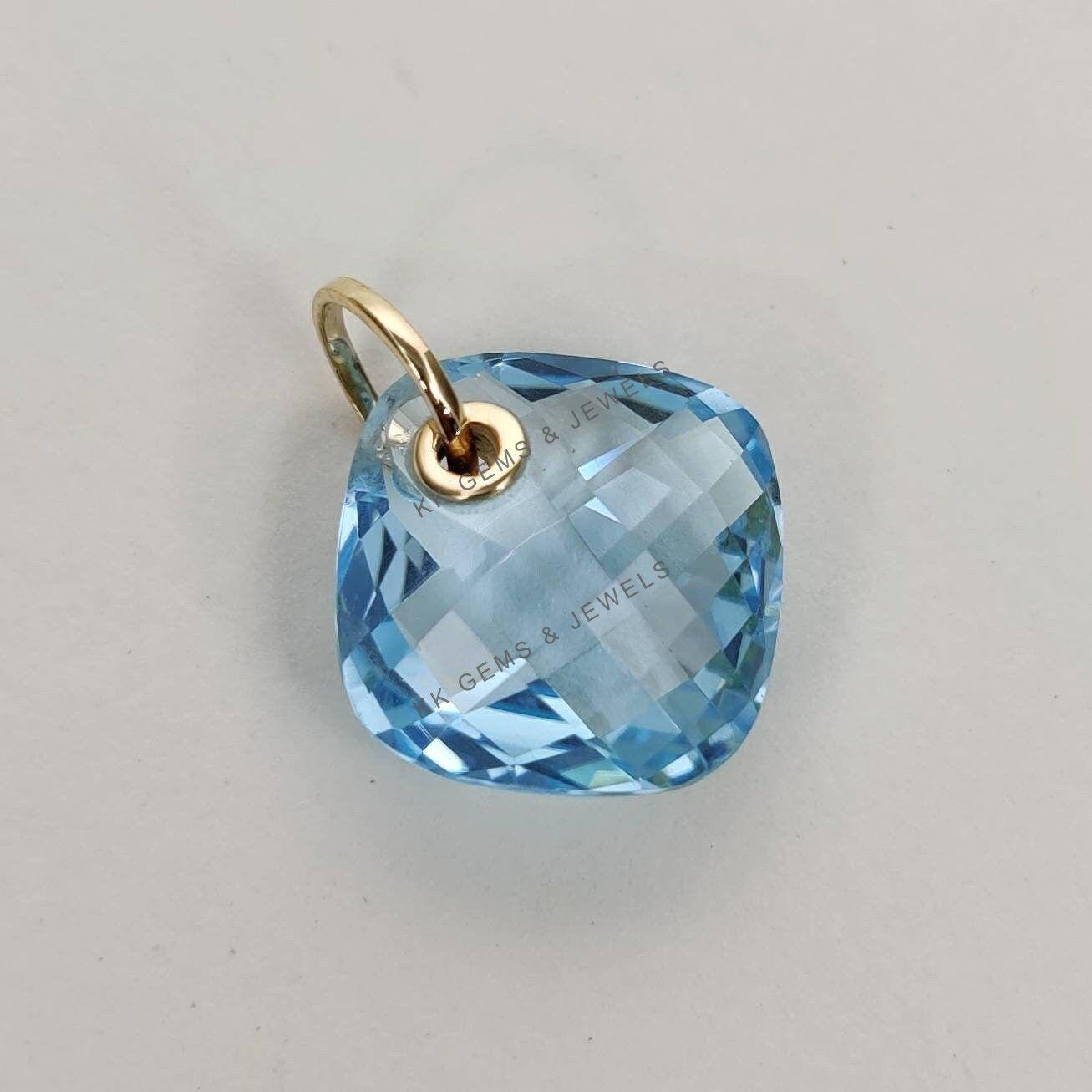 2 reviews for Square Cushion Natural Sky Blue Topaz Pendant Set in 14K Solid Gold