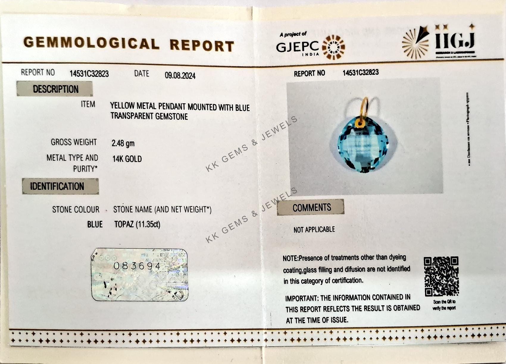 This stunning pendant is set in 14k Solid Yellow Gold with Natural Sky Blue Topaz with utmost precision. It is an unique gemstone pendant for nearly every occasion and is completely hassle-free jewelry.