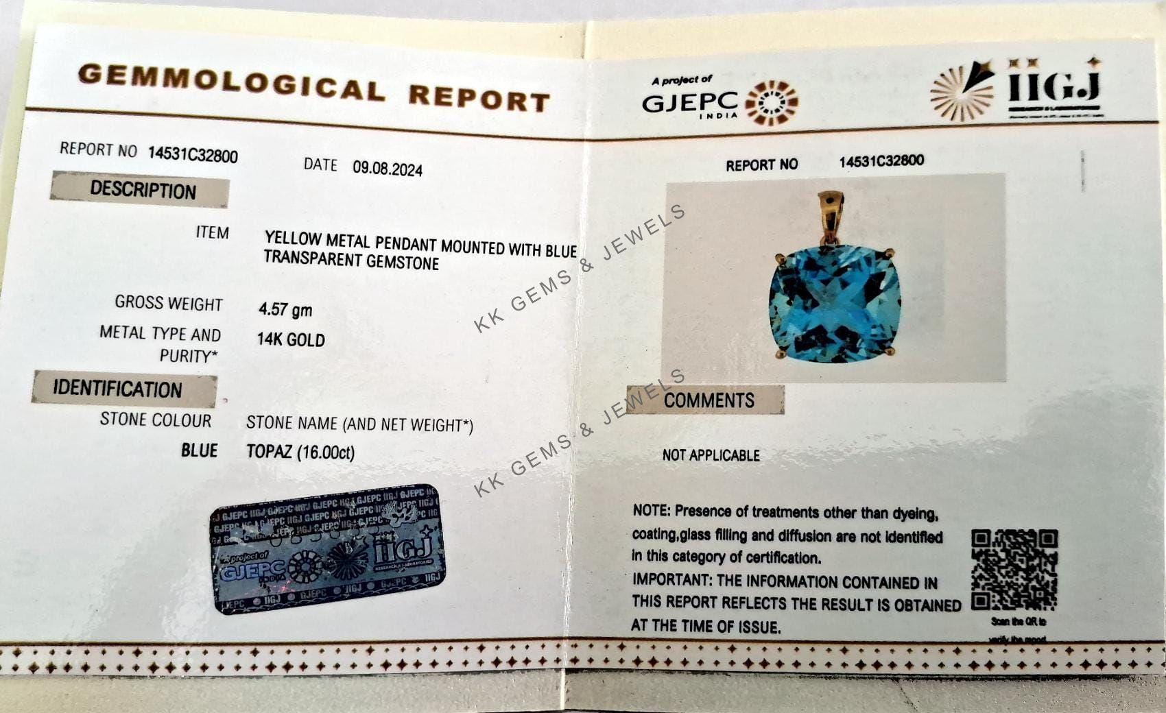This stunning pendant is set in 14k Solid Yellow Gold with Natural Sky Blue Topaz with utmost precision. It is an unique gemstone pendant for nearly every occasion and is completely hassle-free jewelry.