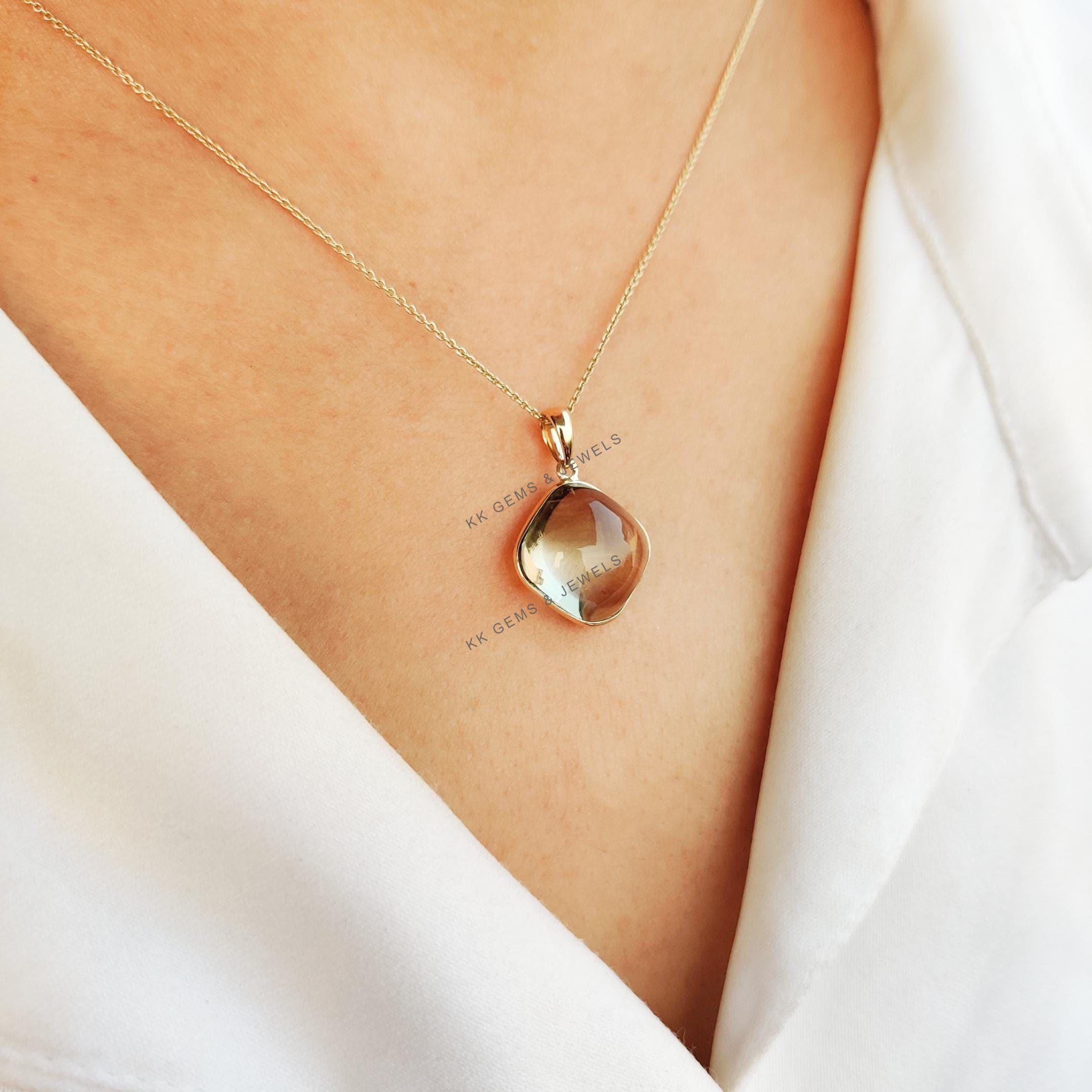 This stunning pendant is set in 14K Solid Yellow Gold with Natural Green Amethyst with utmost precision. It is an unique gemstone pendant for nearly every occasion and is completely hassle-free jewelry.