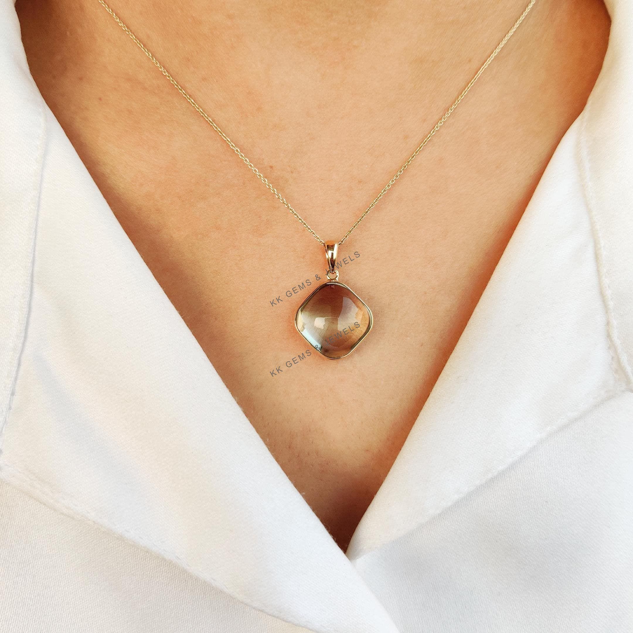 This stunning pendant is set in 14K Solid Yellow Gold with Natural Green Amethyst with utmost precision. It is an unique gemstone pendant for nearly every occasion and is completely hassle-free jewelry. ✓ ABOUT GEMSTONE Green amethyst, also known as…