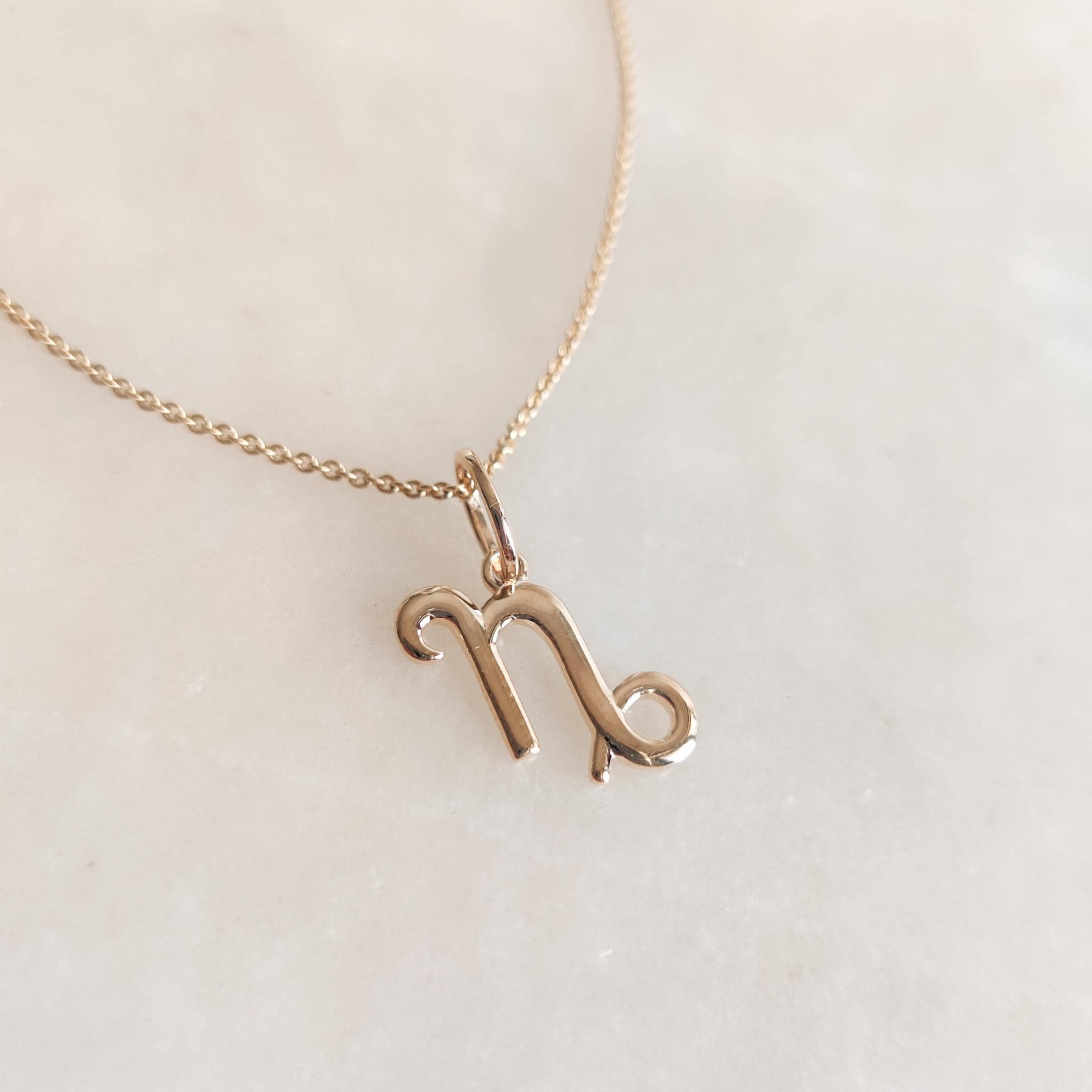 This is an exquisite initial "Capricorn" Zodiac Pendant set in 14K Solid Gold.