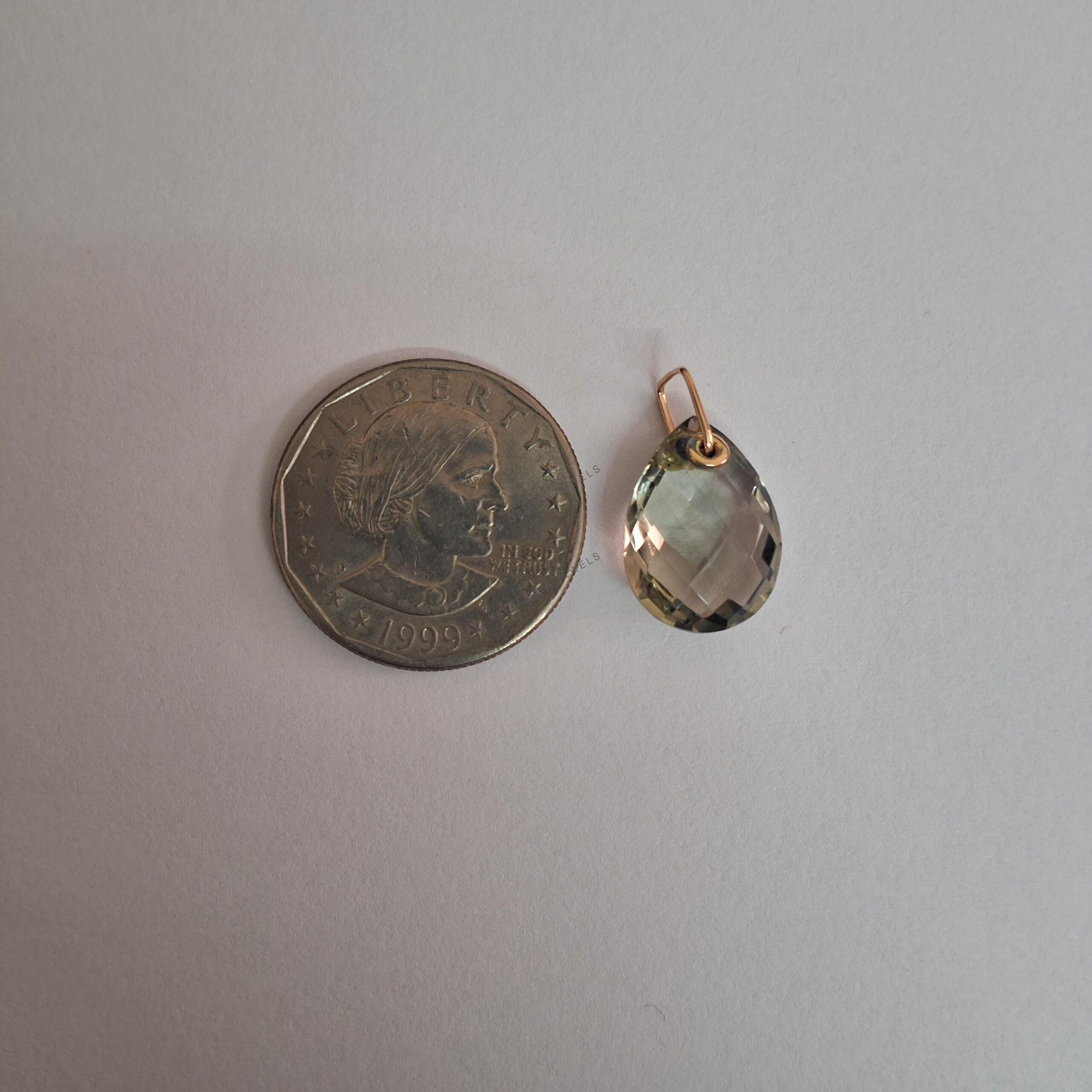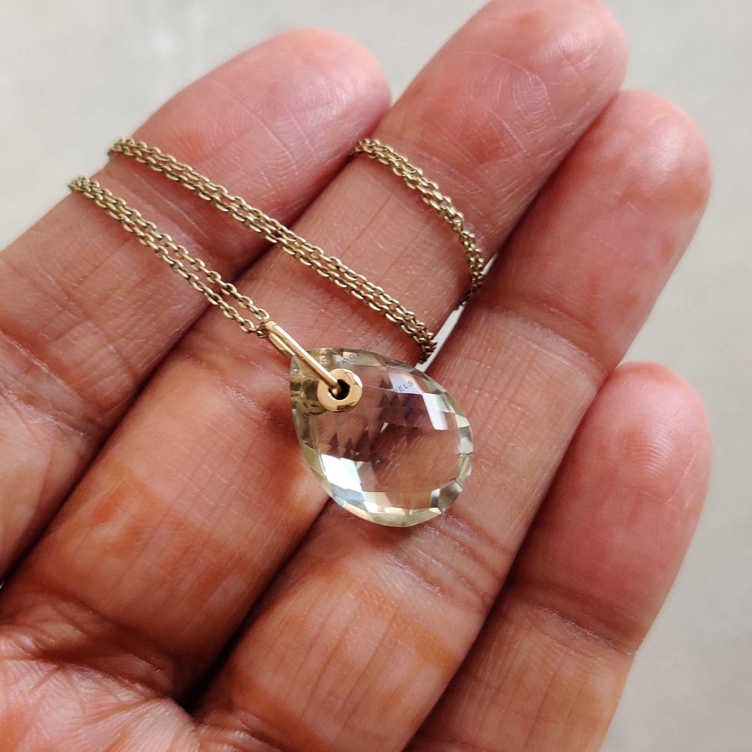 1 review for Teardrop Natural Green Amethyst Drill Pendant Set in 14K Solid Yellow Gold
