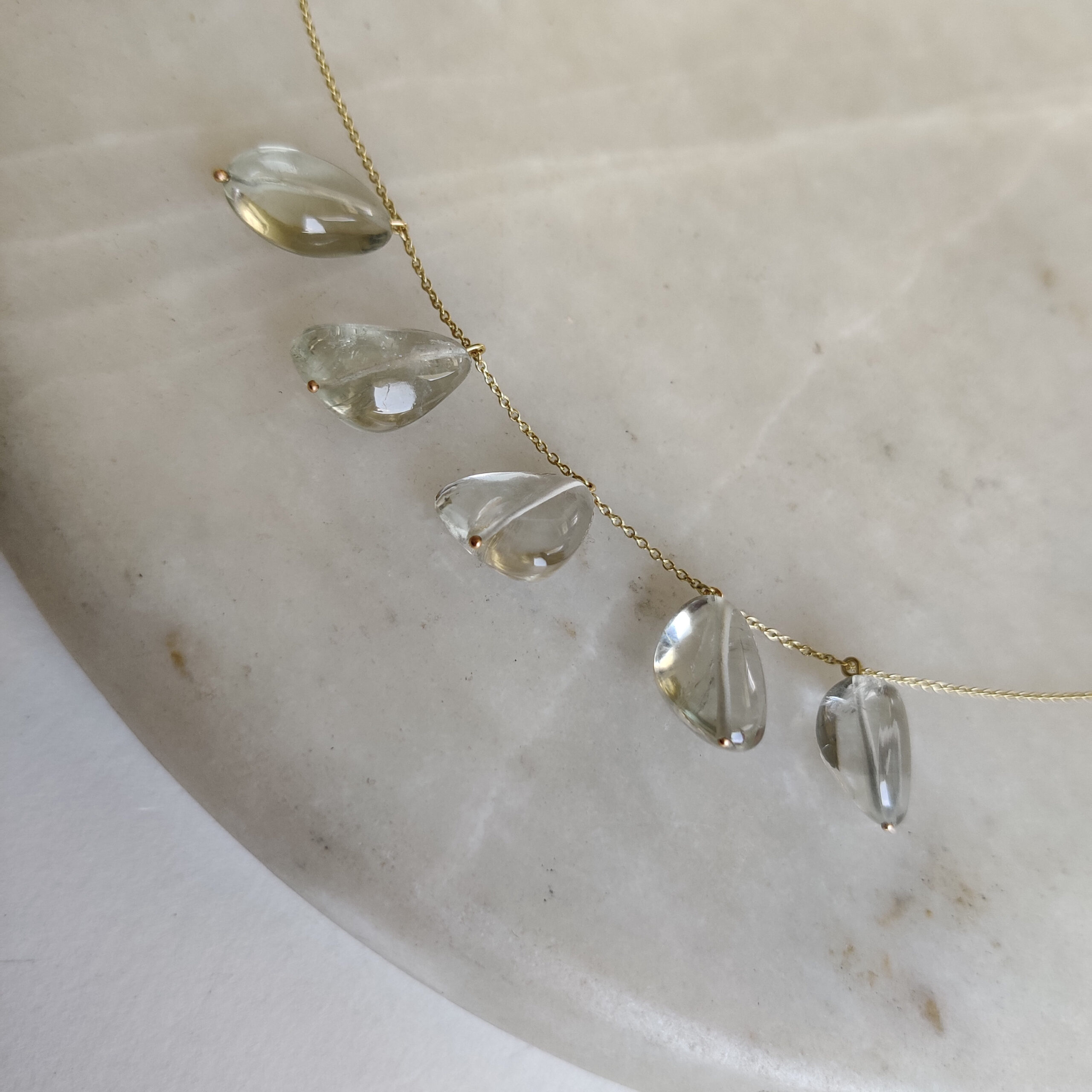 Green amethyst, also known as prasiolite, is a captivating variety of amethyst renowned for its ethereal, mint-green hue. This enchanting gemstone is celebrated for its connection to the heart chakra, making it a symbol of spiritual growth, compassion, and renewal. Green amethyst is believed to soothe the soul, promote emotional healing, and enhance one's connection to nature, offering a serene and harmonious energy that invigorates the spirit.