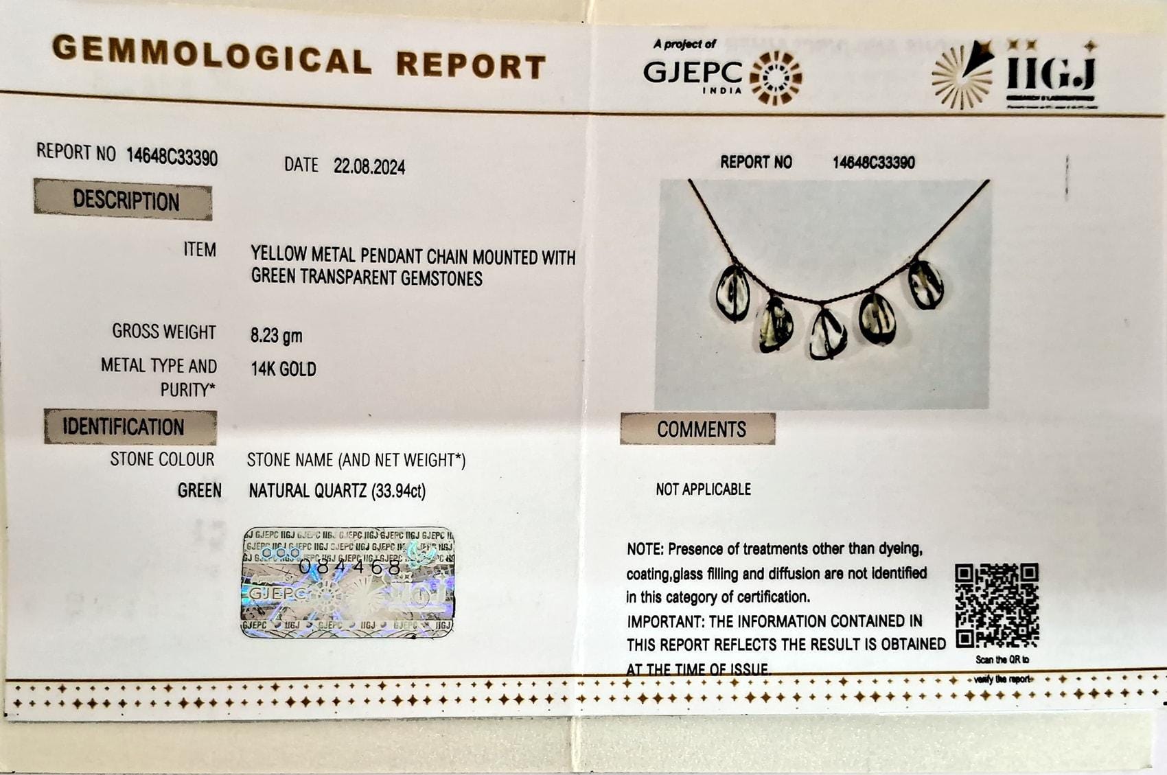 This stunning pendant is set in 14K Solid Yellow Gold with Natural Green Amethyst with utmost precision. It is an unique gemstone pendant for nearly every occasion and is completely hassle-free jewelry.