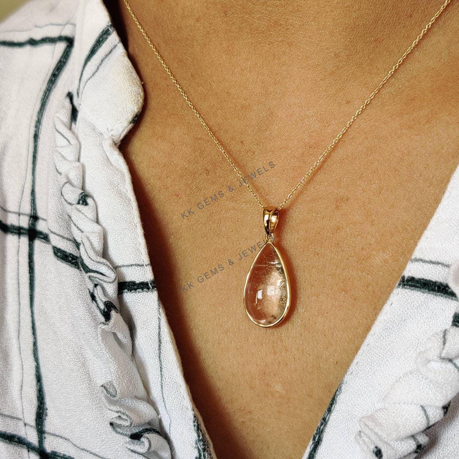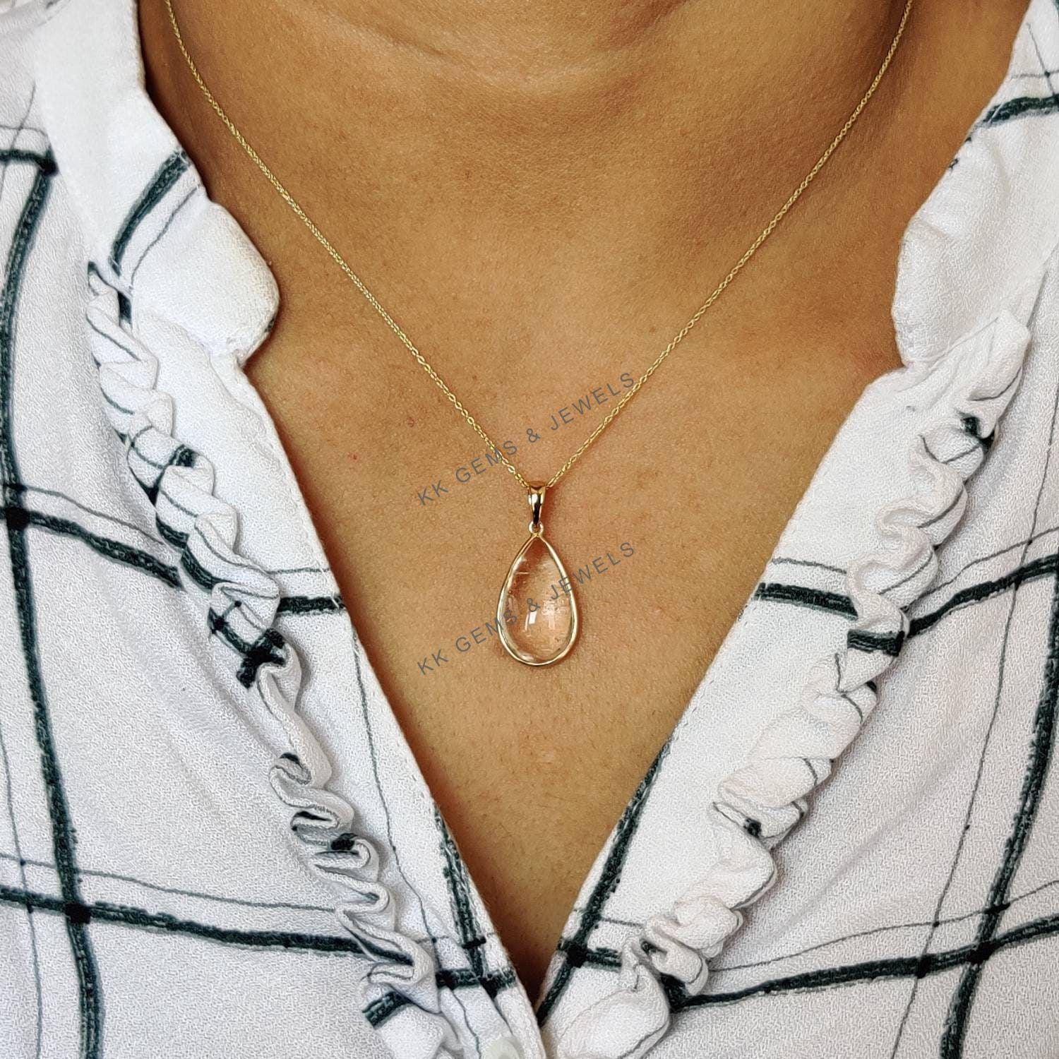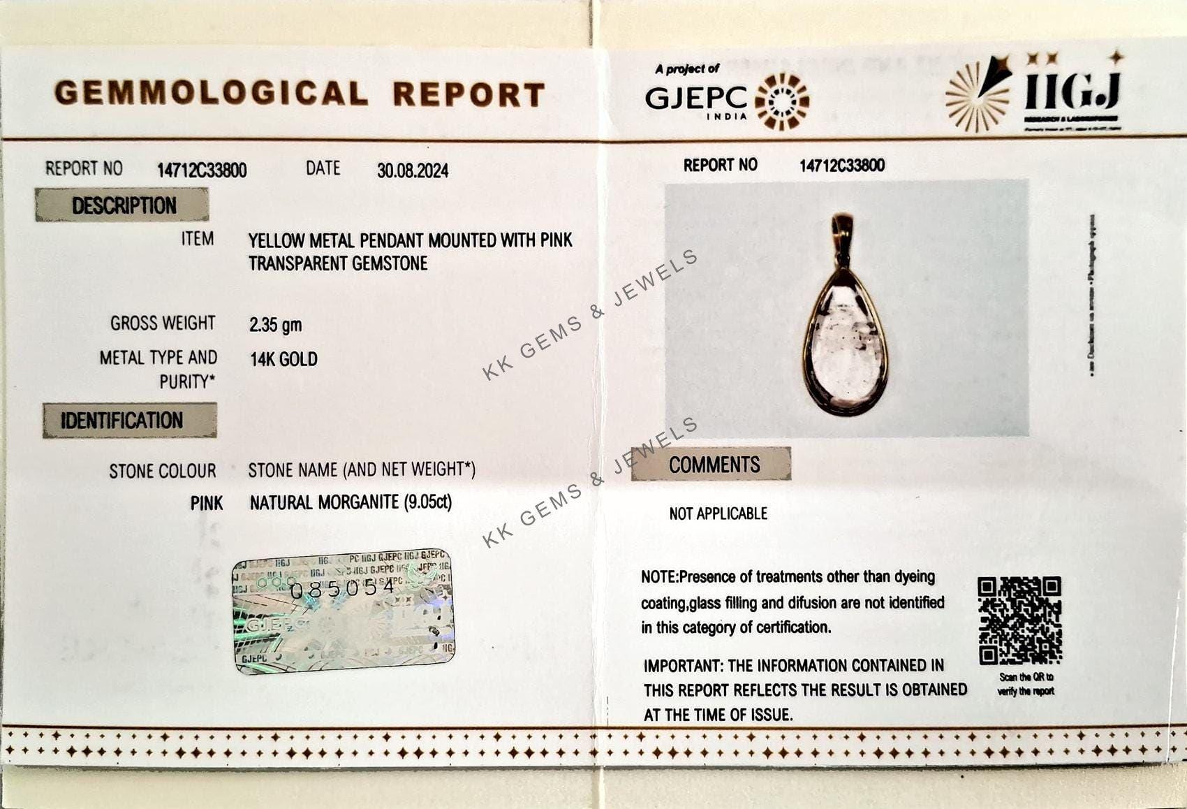 This stunning pendant is set in 14K Solid Yellow Gold with Natural Morganite with utmost precision. It is an unique gemstone pendant for nearly every occasion and is completely hassle-free jewelry.