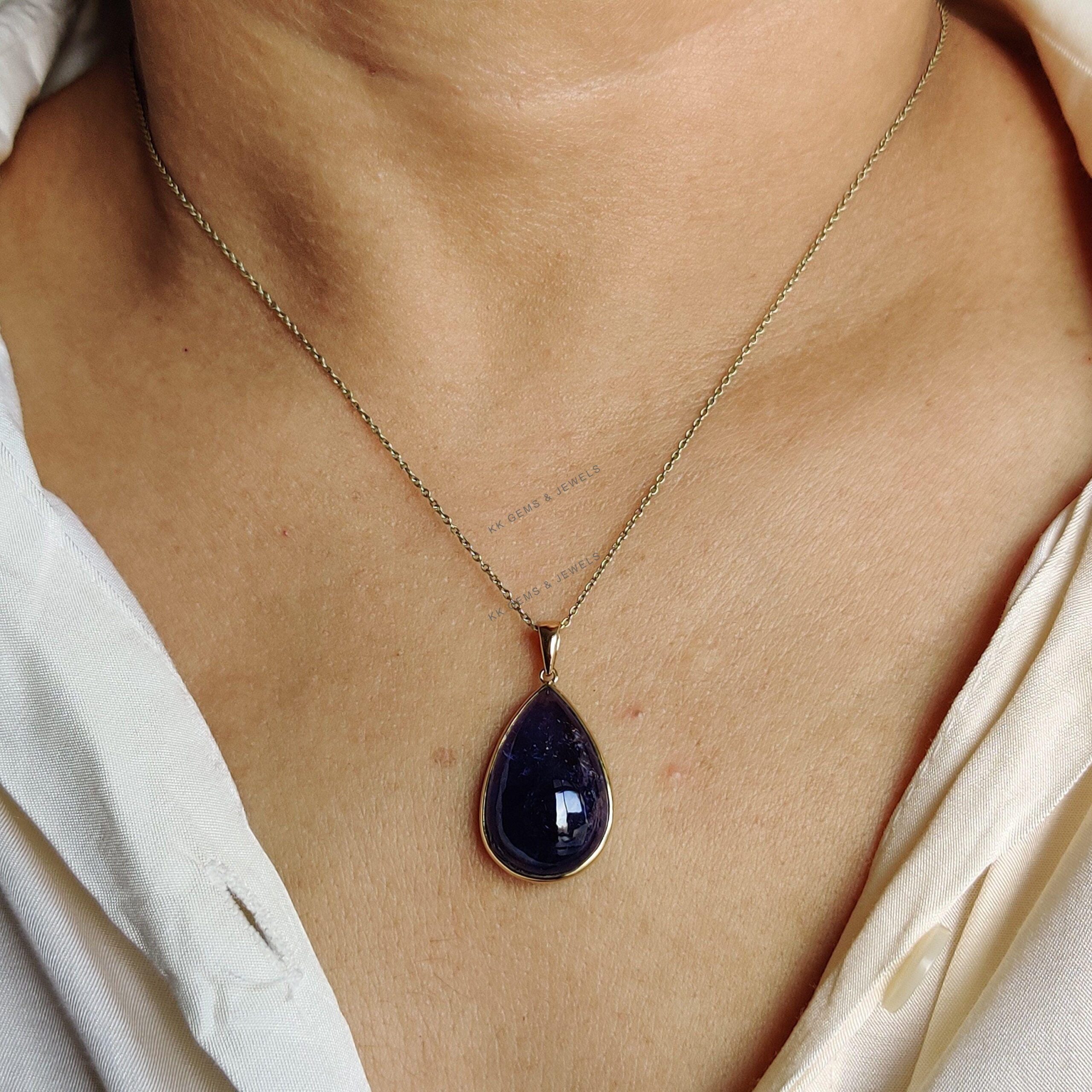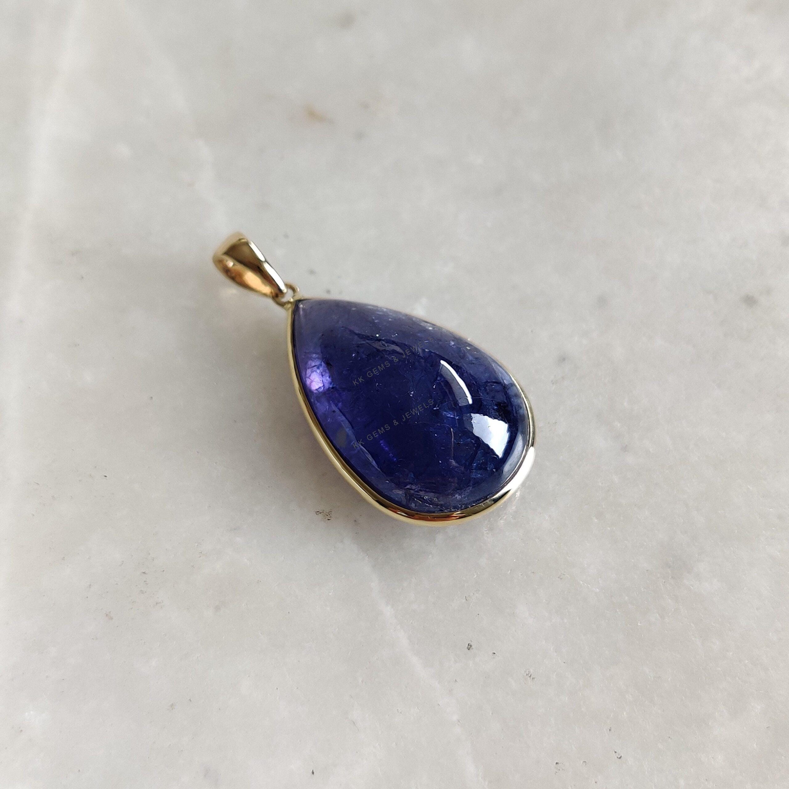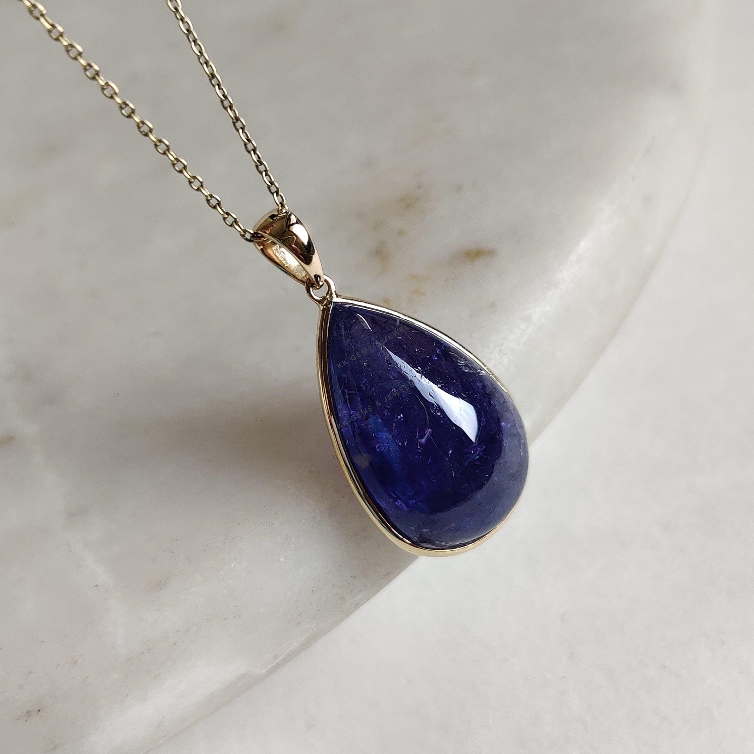 Teardrop Natural Tanzanite Bezel Pendant Set in 14K Solid Gold, December Birthstone Jewelry