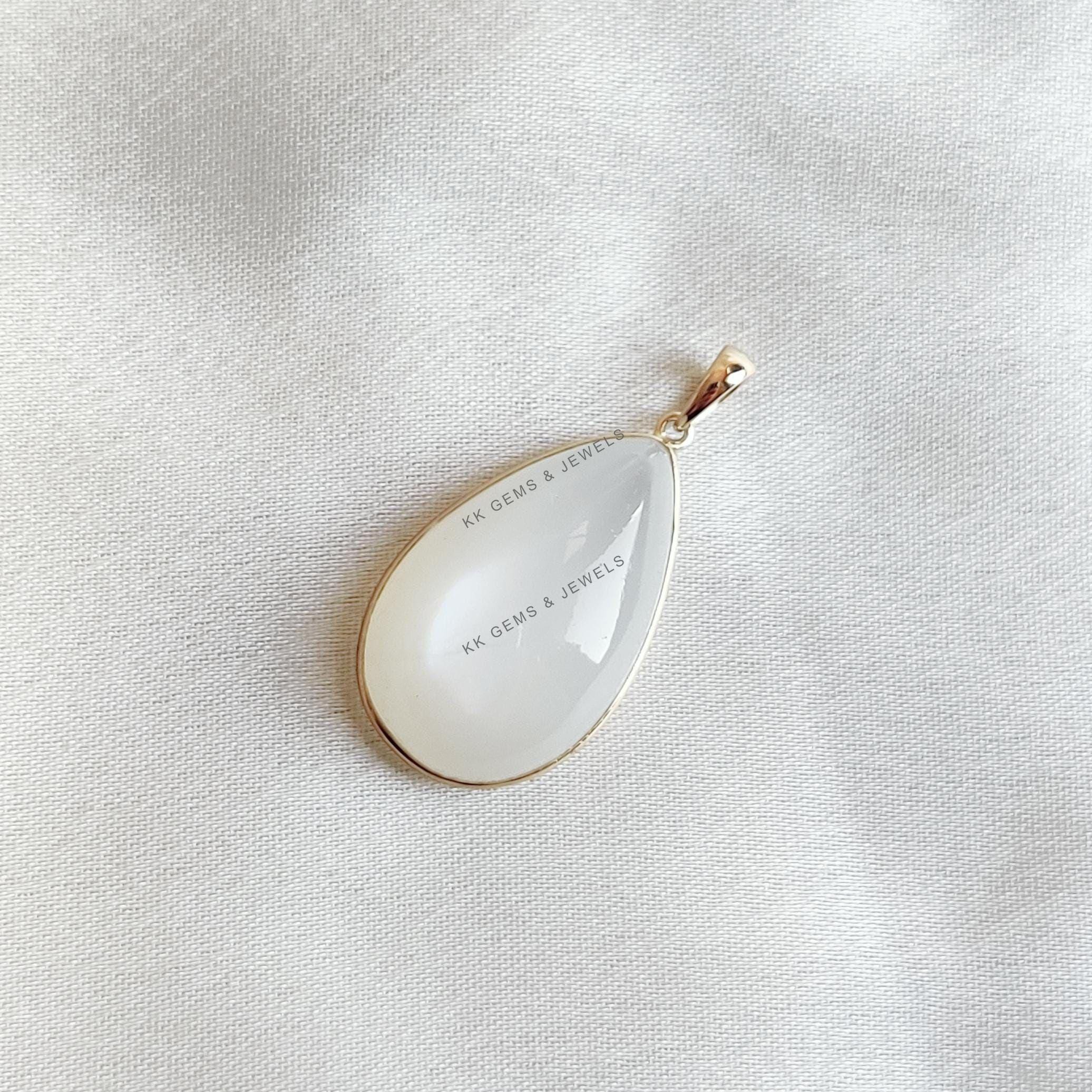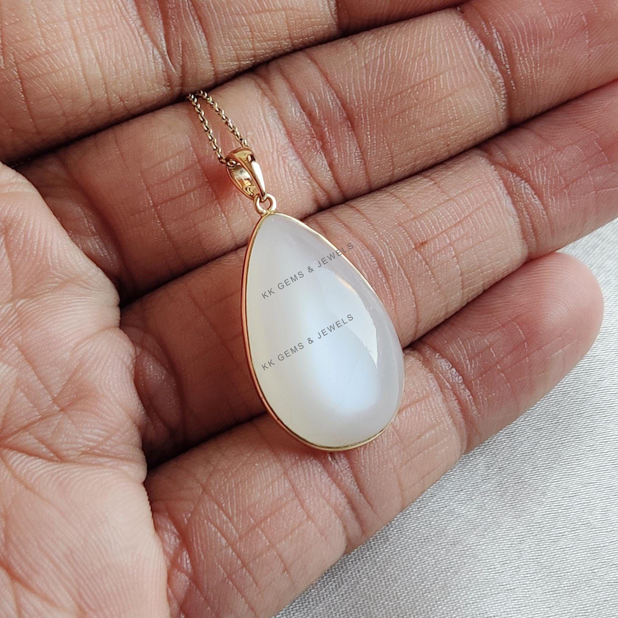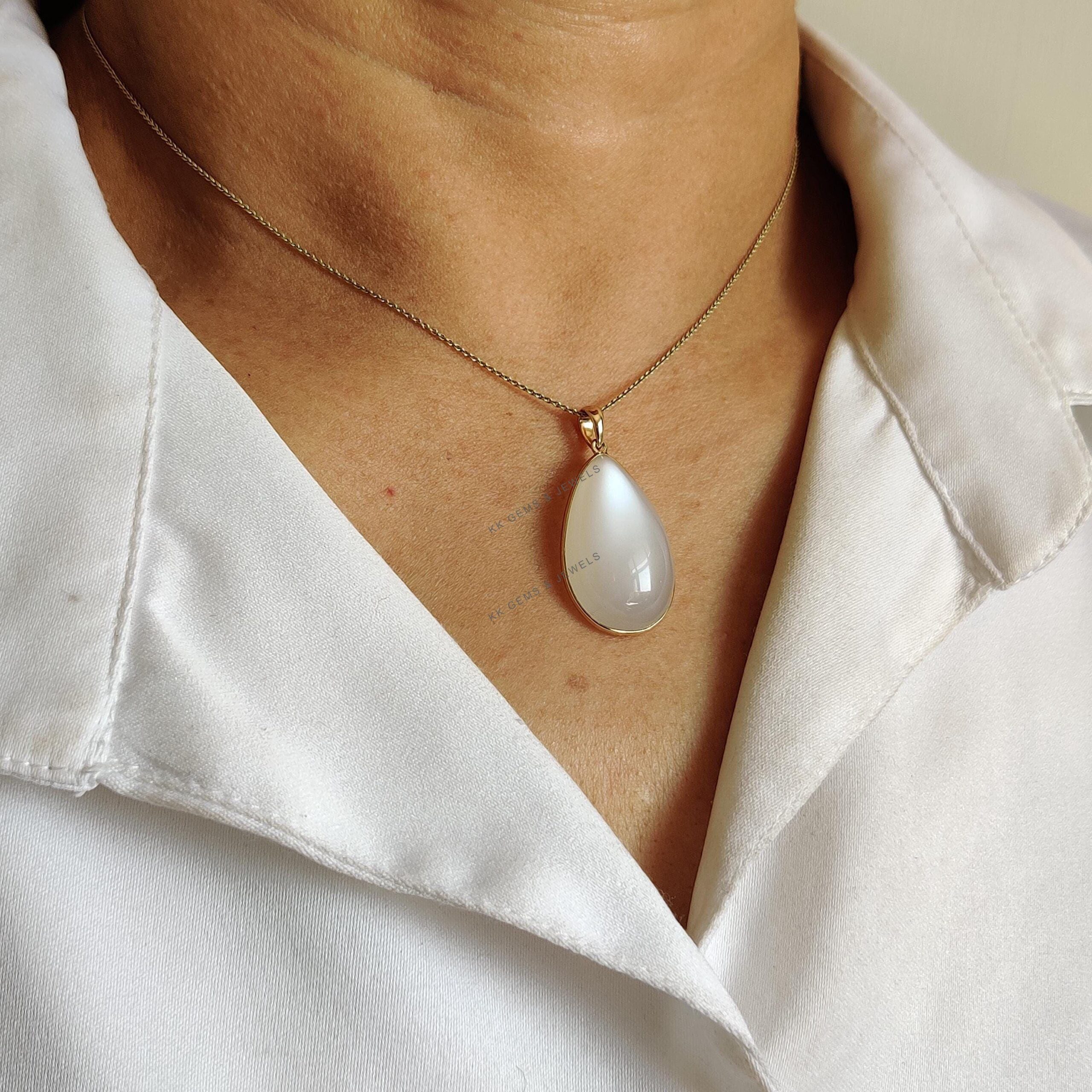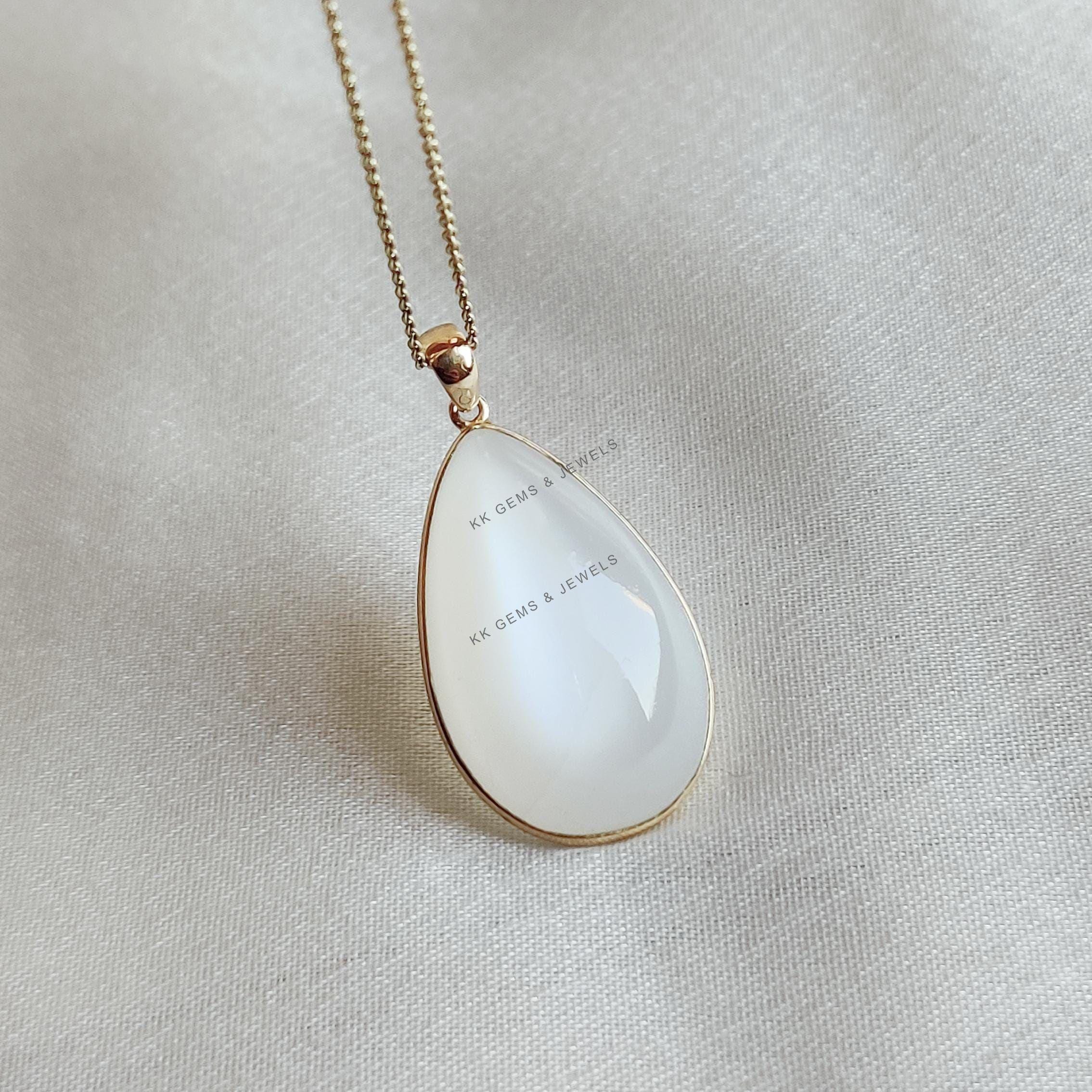 This stunning pendant is set in 14k Solid Yellow Gold with Natural White Moonstone with utmost precision. It is an unique gemstone pendant for nearly every occasion and is completely hassle-free jewelry. ✓ ABOUT GEMSTONE: White moonstone, with its milky…
