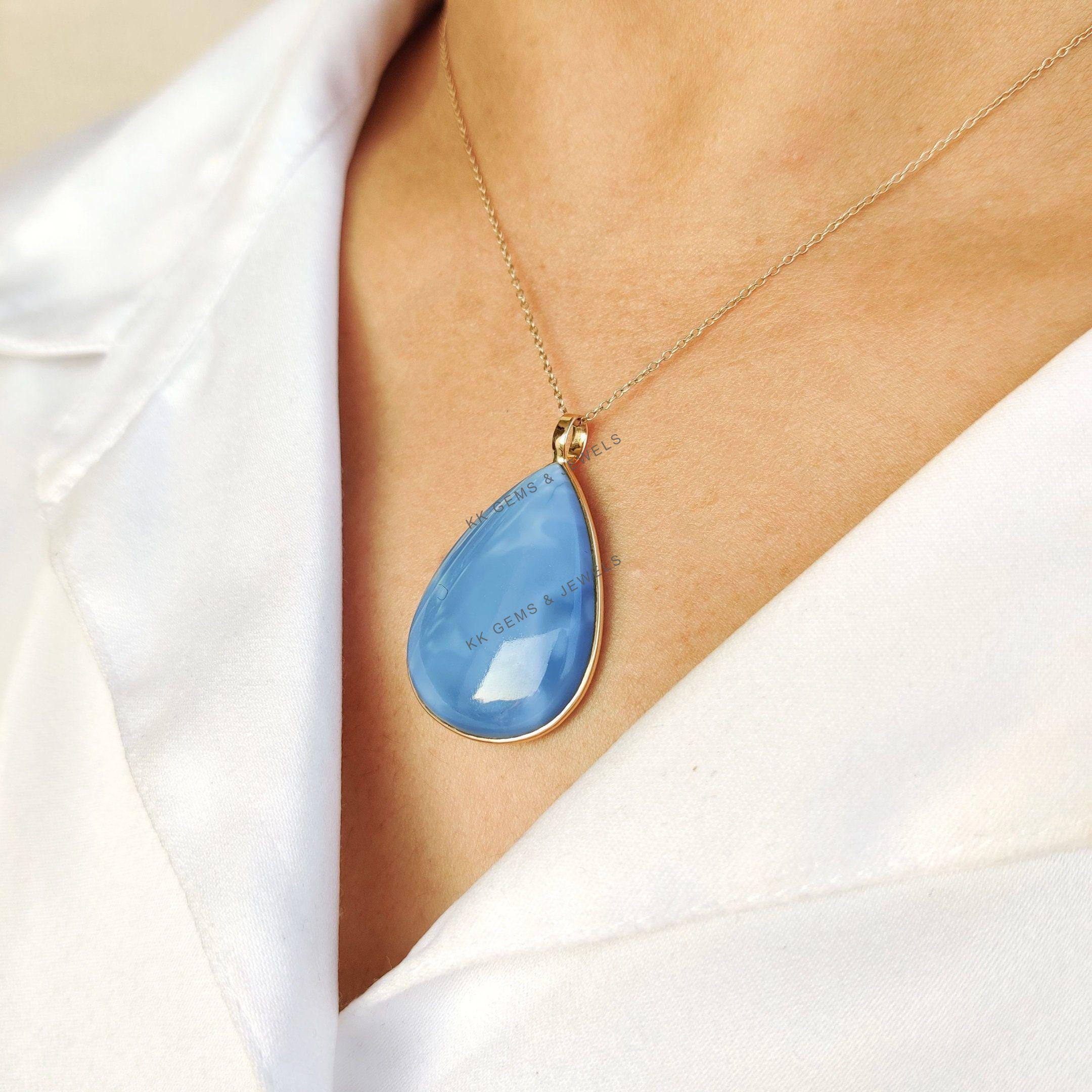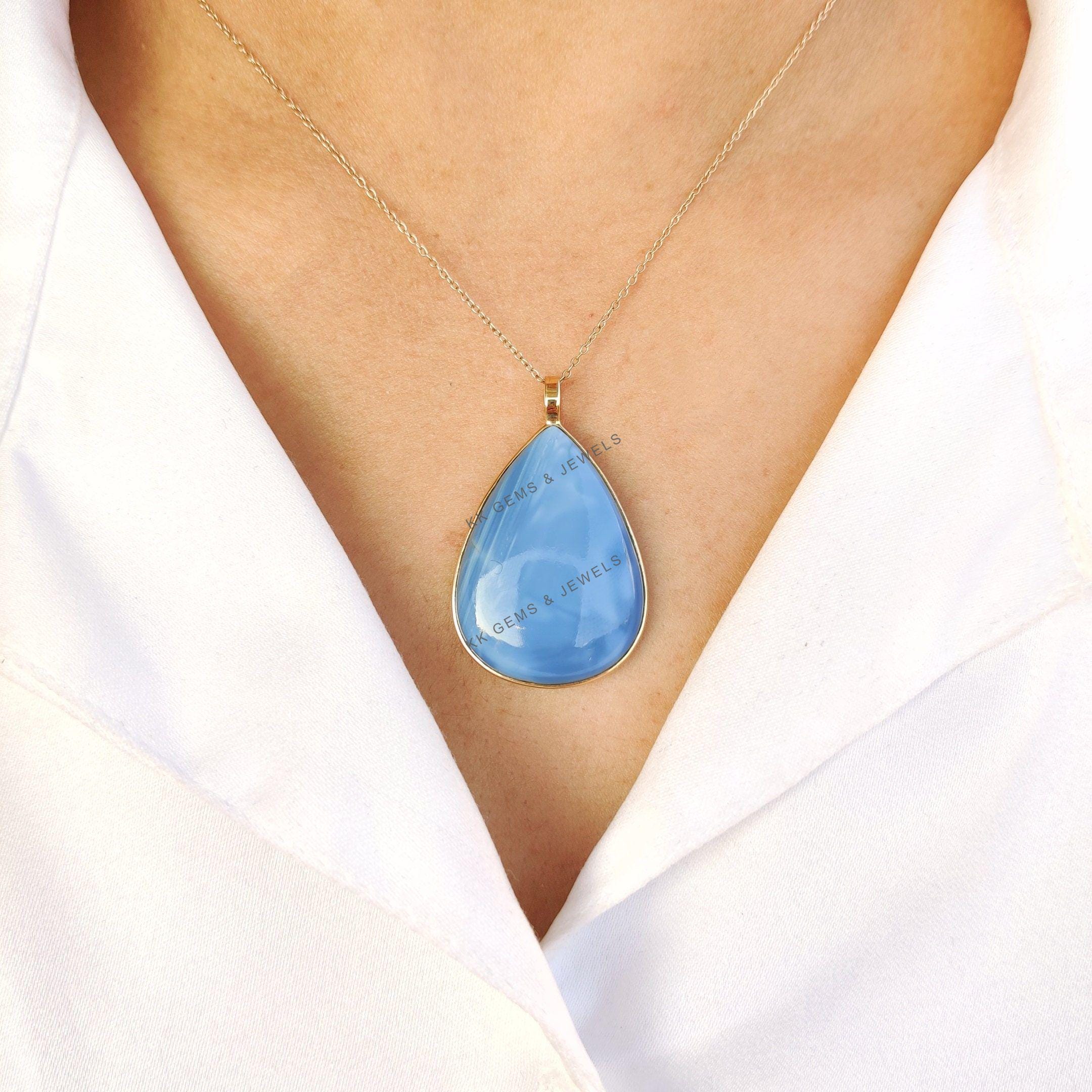 This stunning pendant is set in 14K Solid Yellow Gold with Natural Blue Opal with utmost precision. It is an unique gemstone pendant for nearly every occasion and is completely hassle-free jewelry. ✓ ABOUT GEMSTONE: Blue Opal is a mesmerizing…