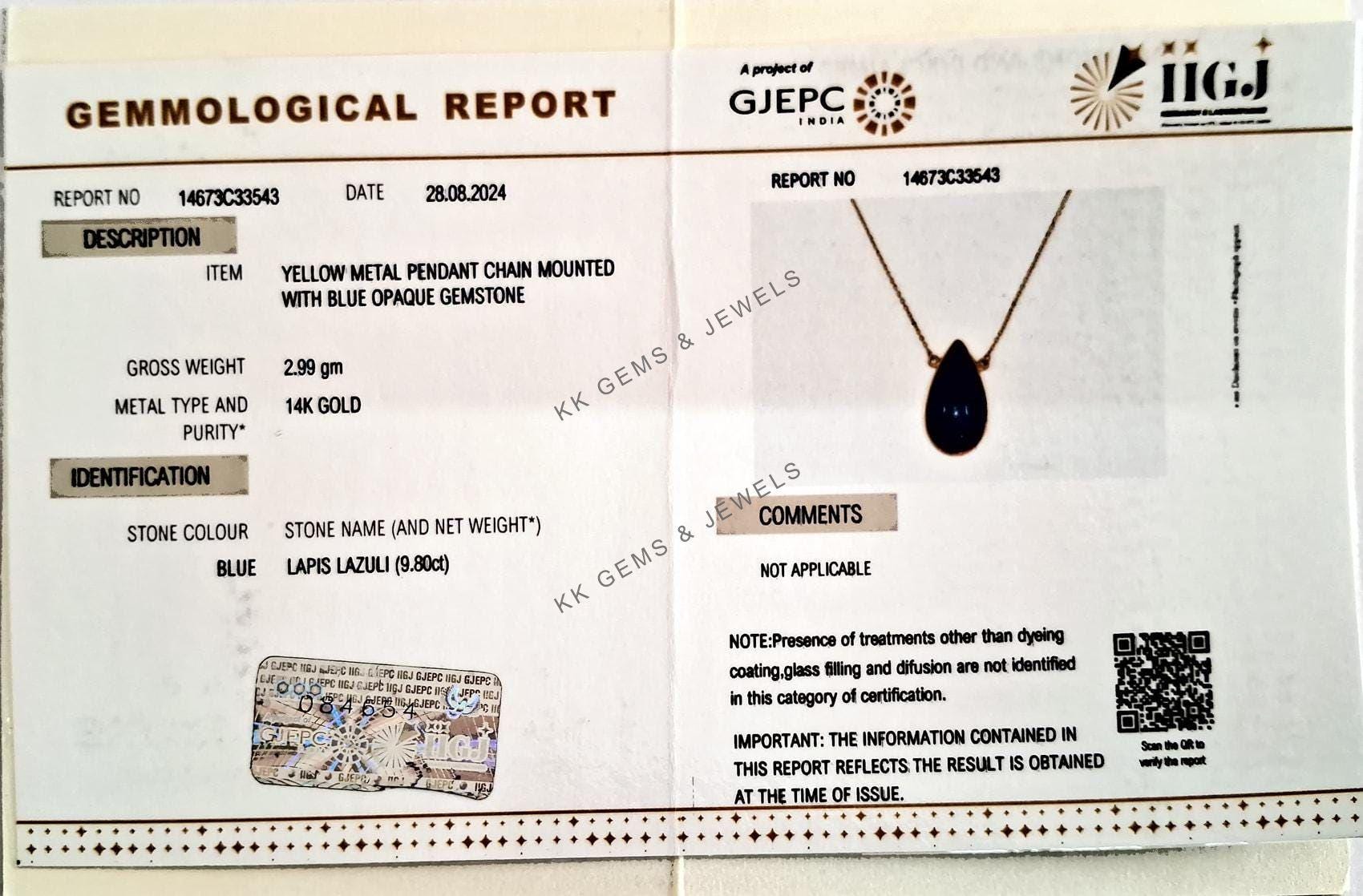 This stunning pendant is set in 14K Solid Yellow Gold with Natural Lapis Lazuli with utmost precision. It is an unique gemstone pendant for nearly every occasion and is completely hassle-free jewelry.