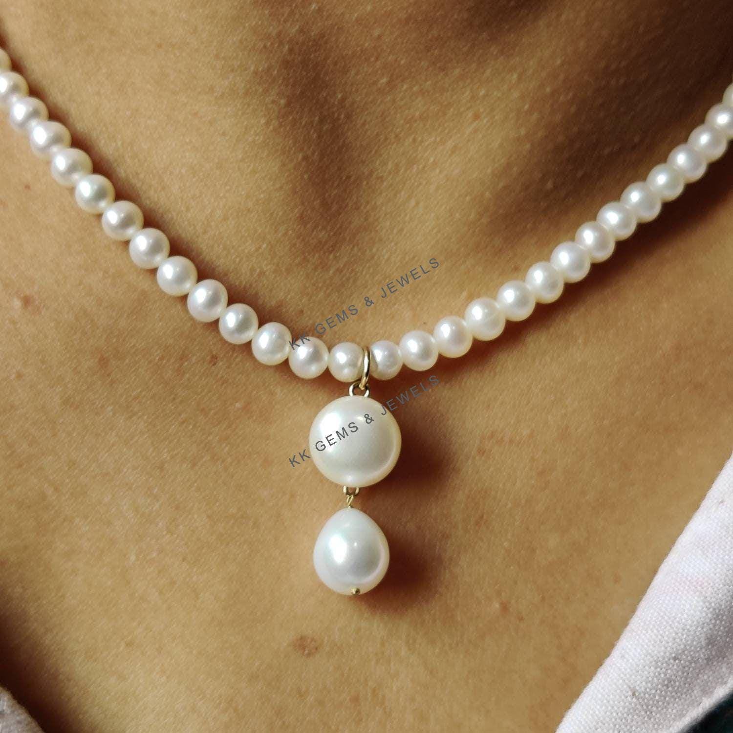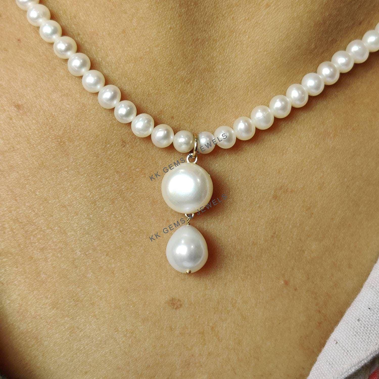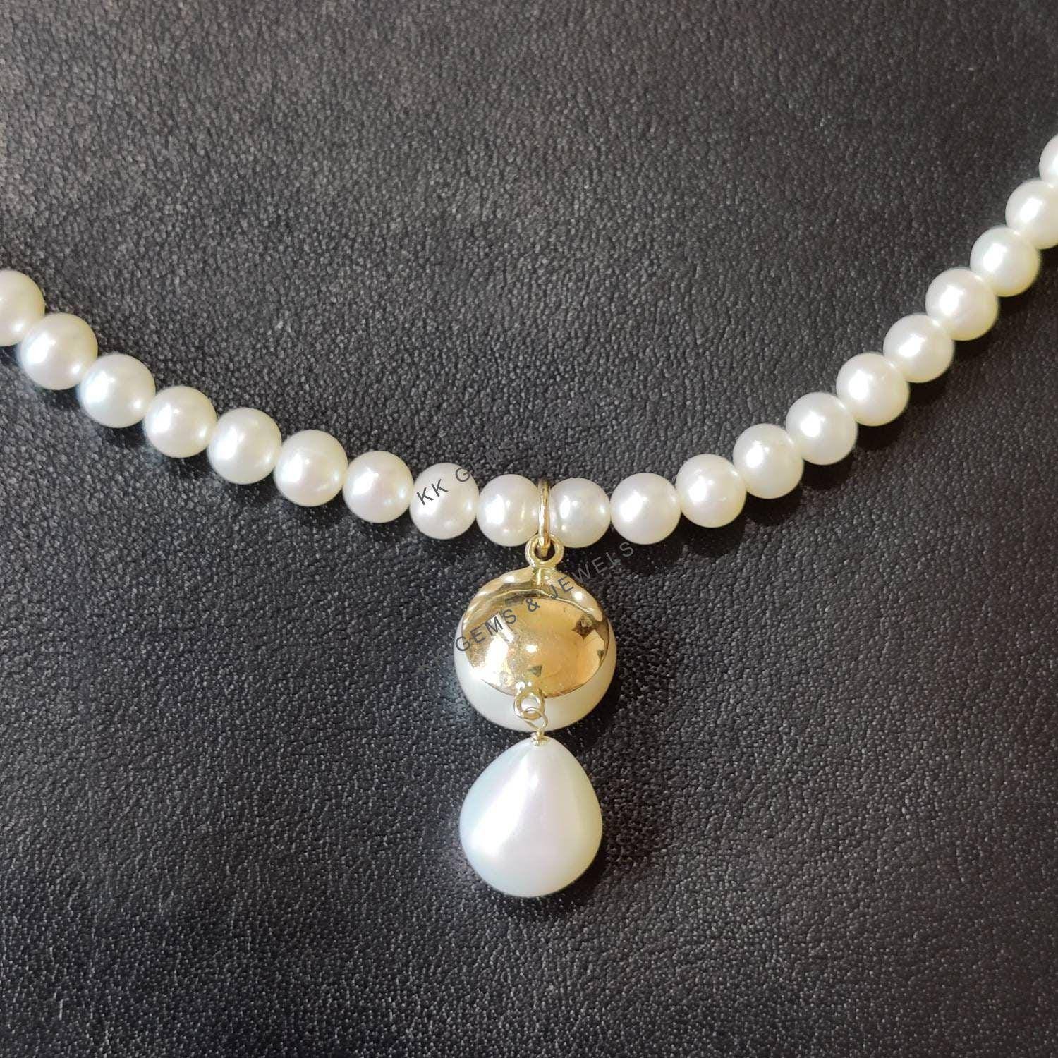 TearDrop Shape Natural Pearl Pendant Set in 14K Solid Gold Jewelry Necklace