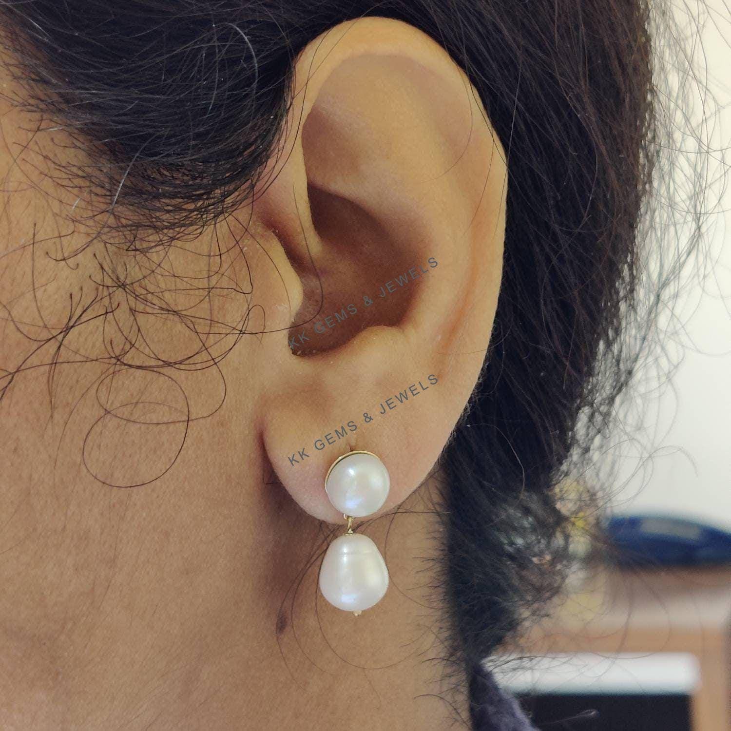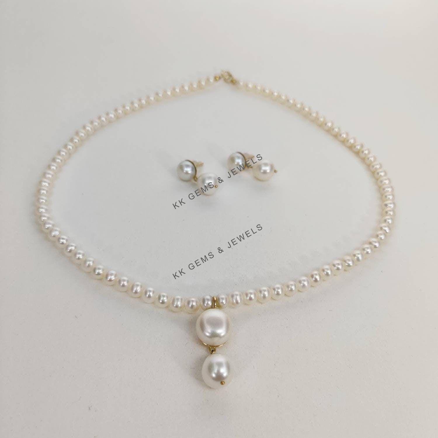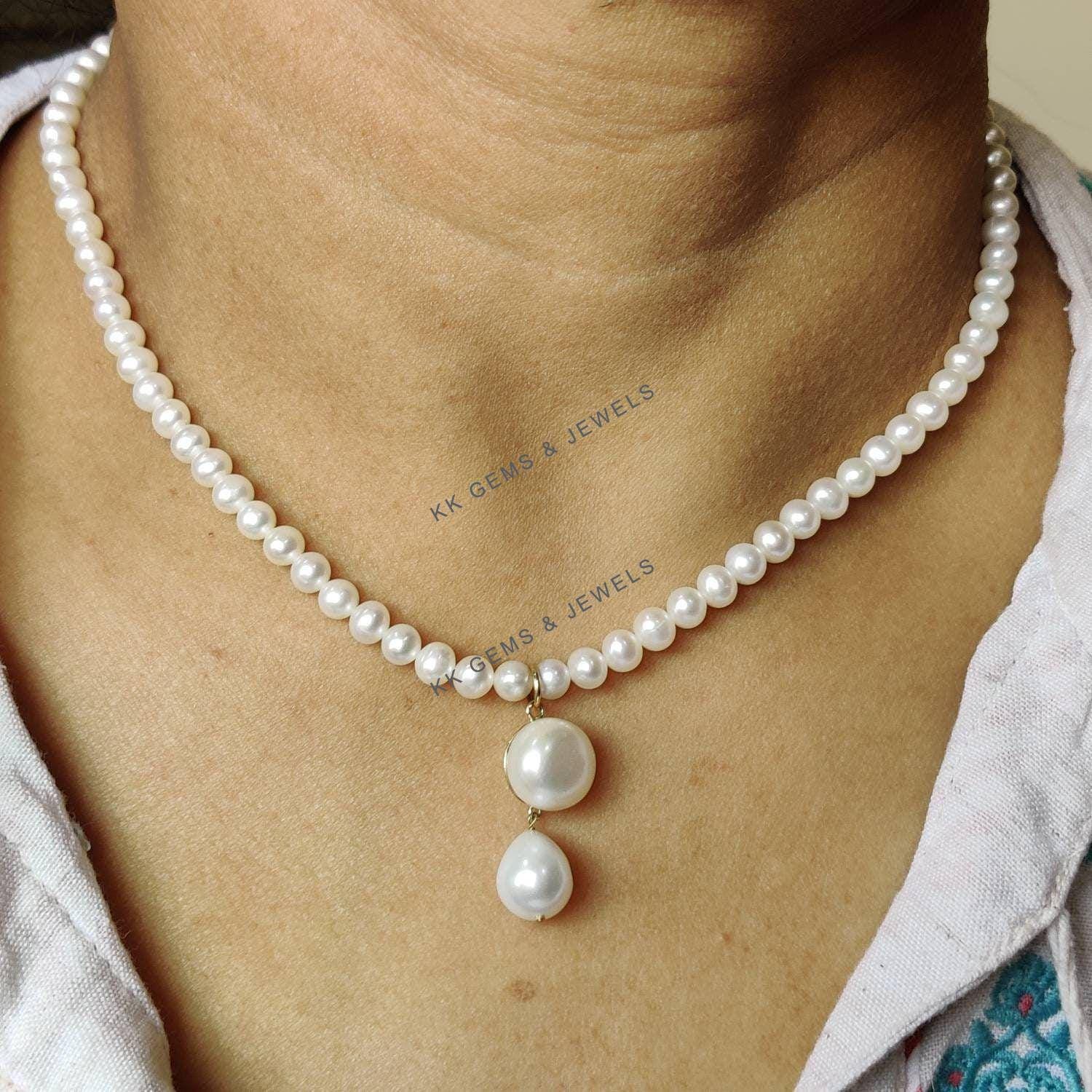 TearDrop Shape Natural Pearl Pendant Set in 14K Solid Gold Jewelry Necklace