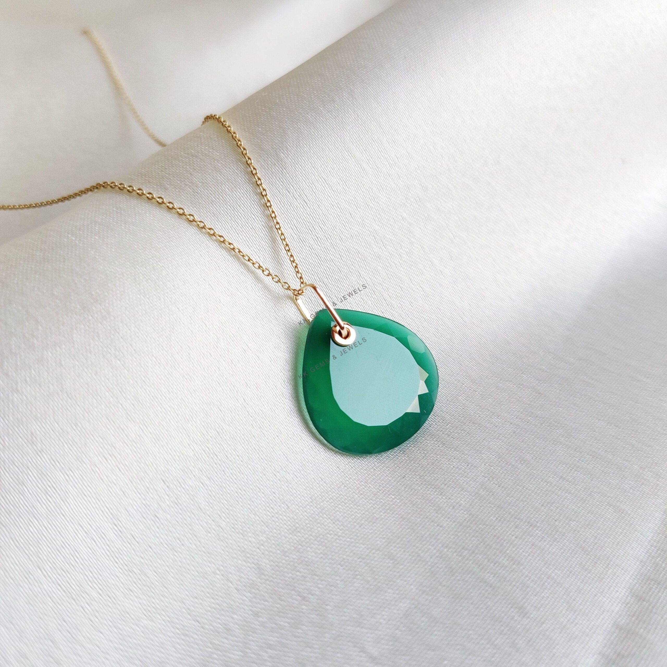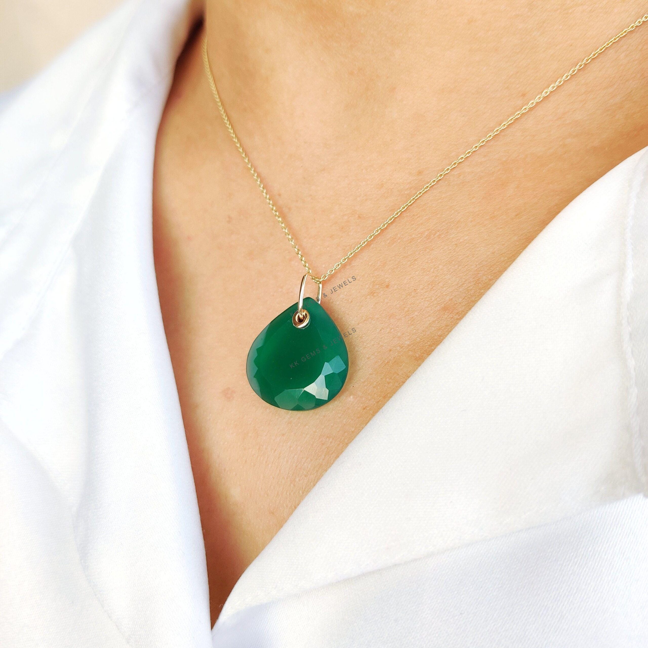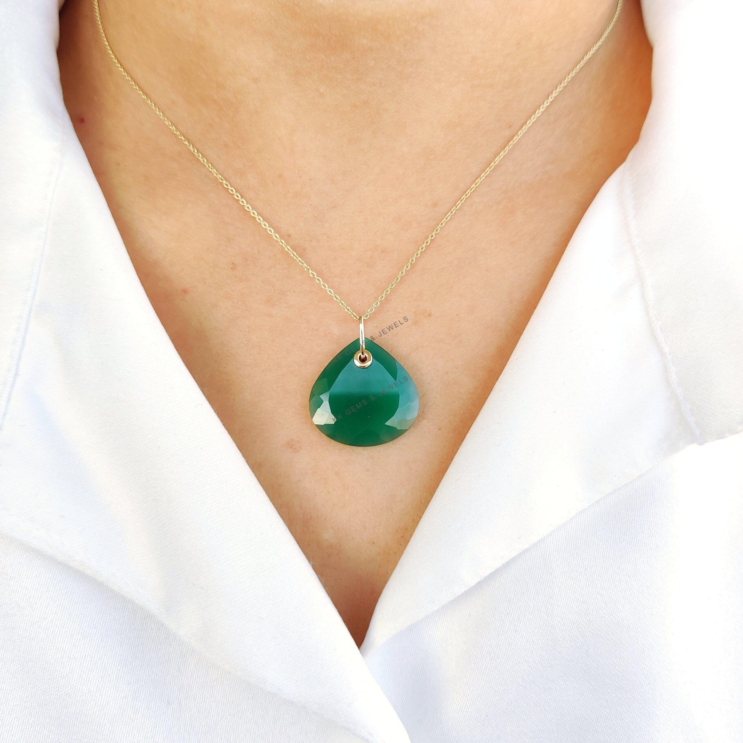 This stunning pendant is set in 14K Solid Yellow Gold with Natural Green Onyx in Drill setting with utmost precision. It is an unique gemstone pendant for nearly every occasion and is completely hassle-free jewelry.