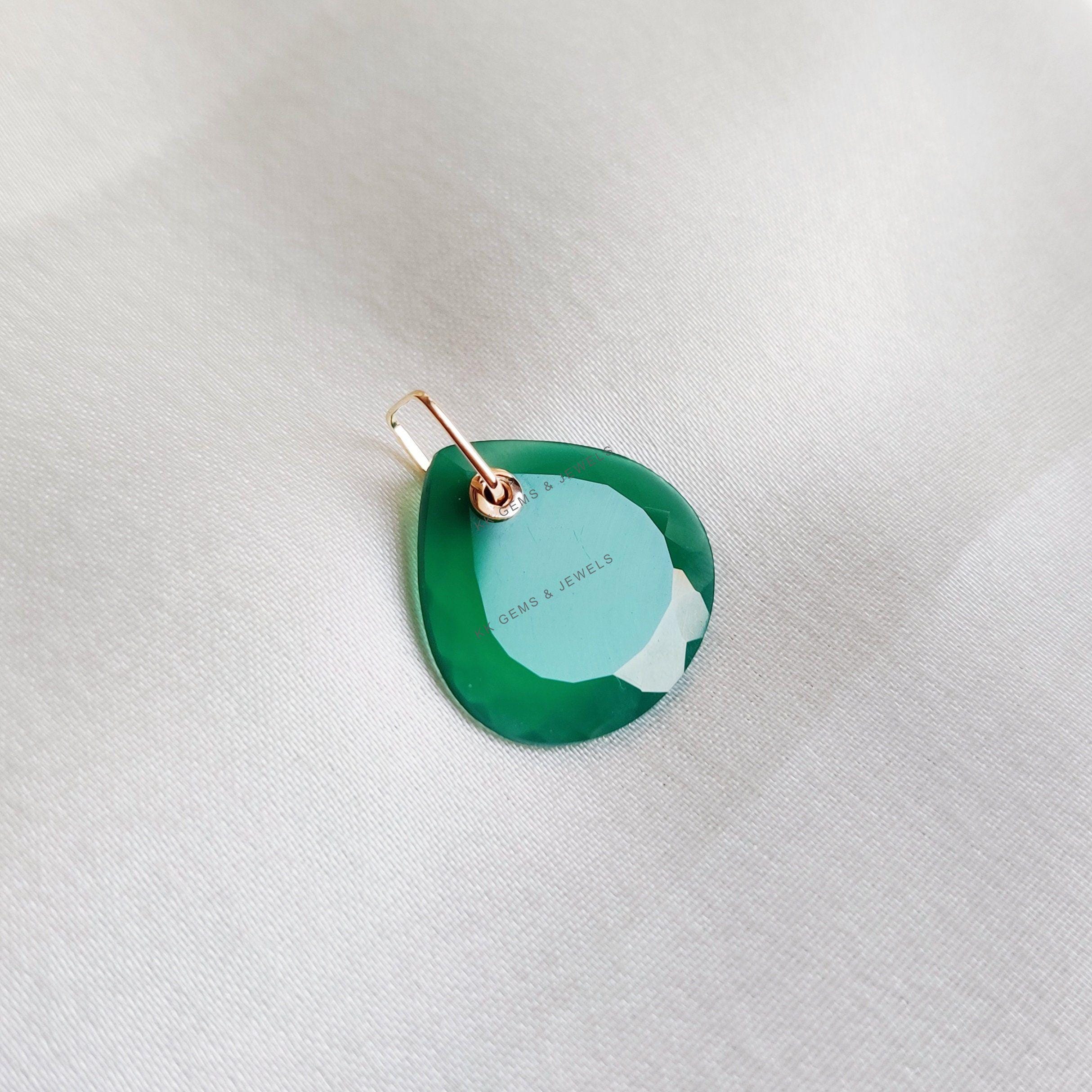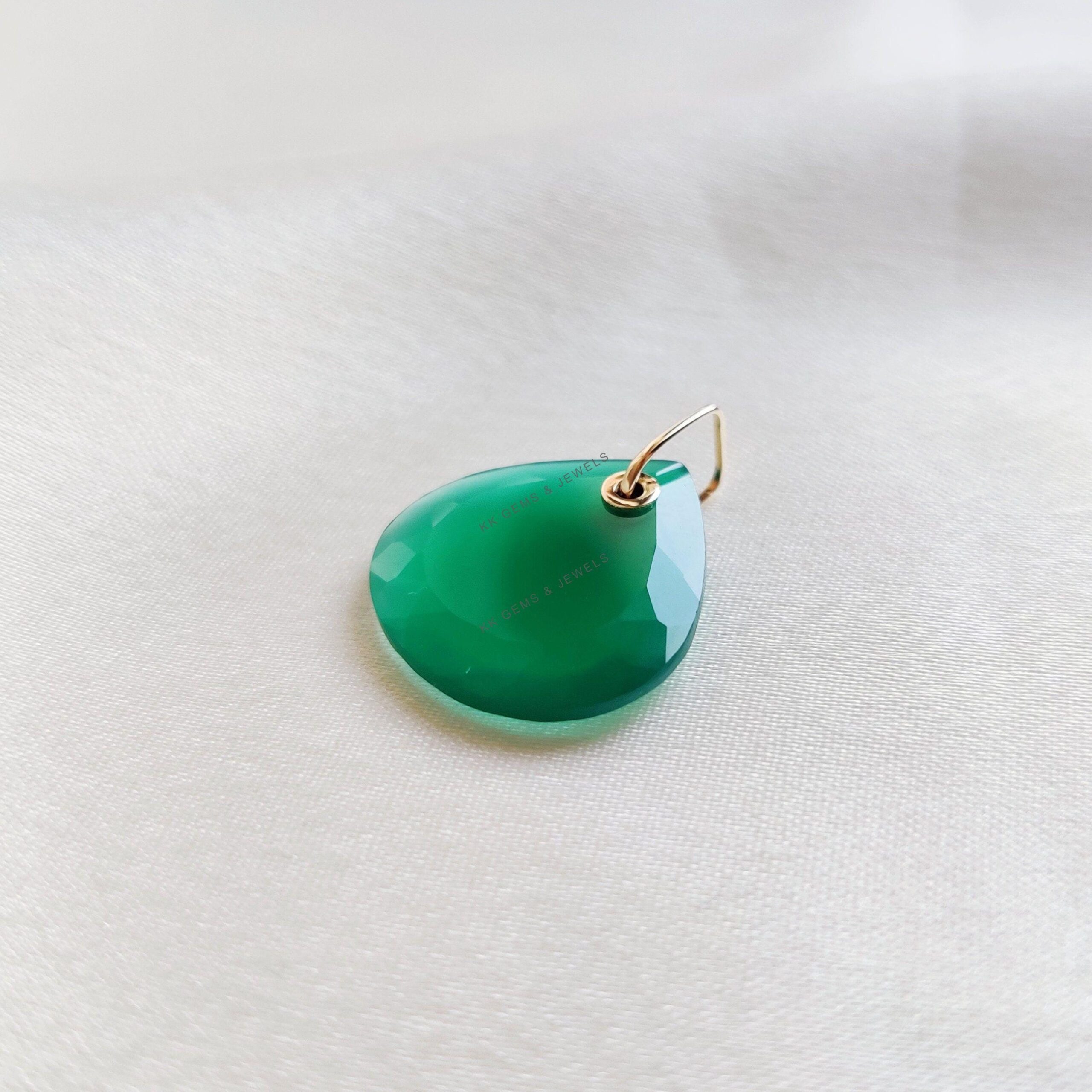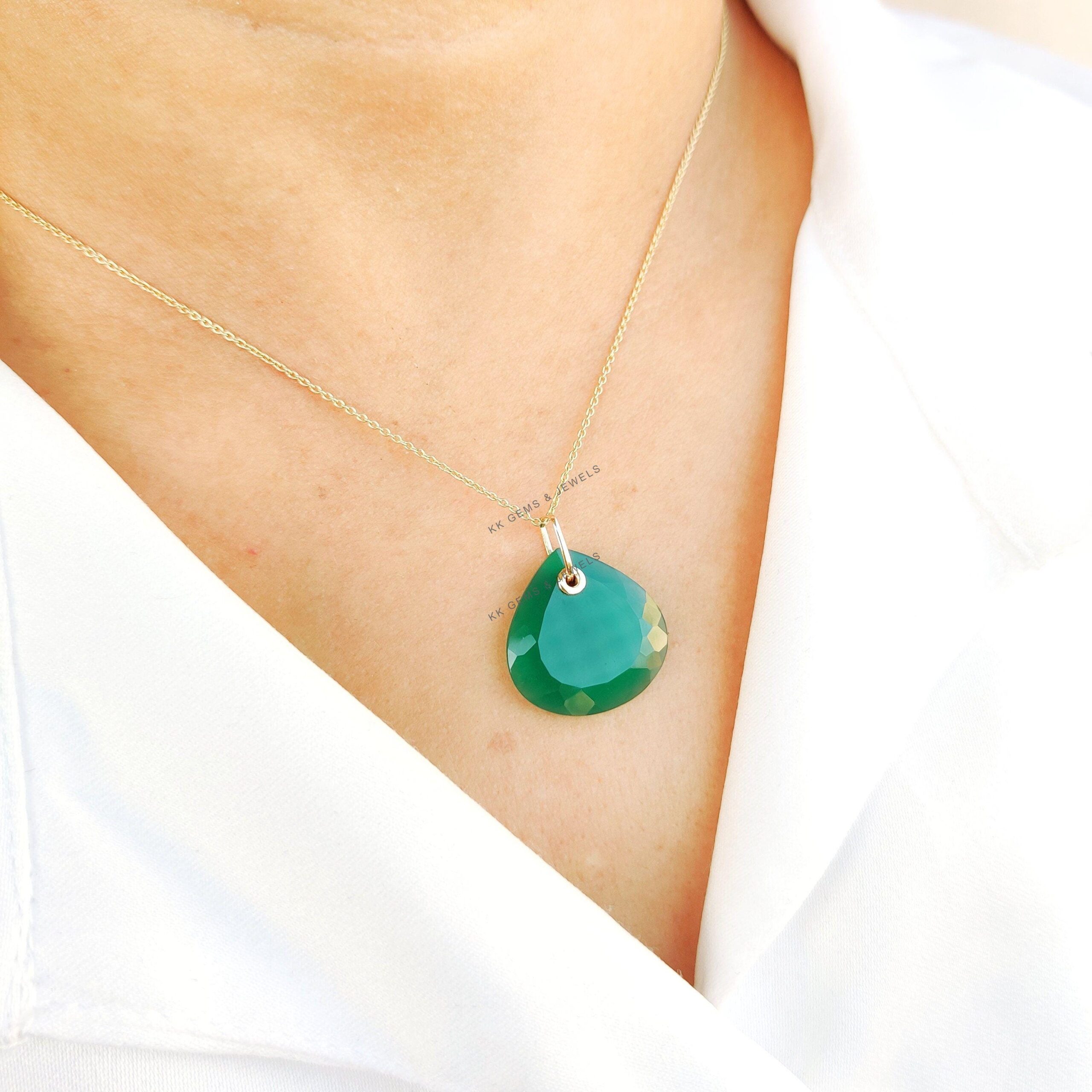 This stunning pendant is set in 14K Solid Yellow Gold with Natural Green Onyx in Drill setting with utmost precision. It is an unique gemstone pendant for nearly every occasion and is completely hassle-free jewelry.