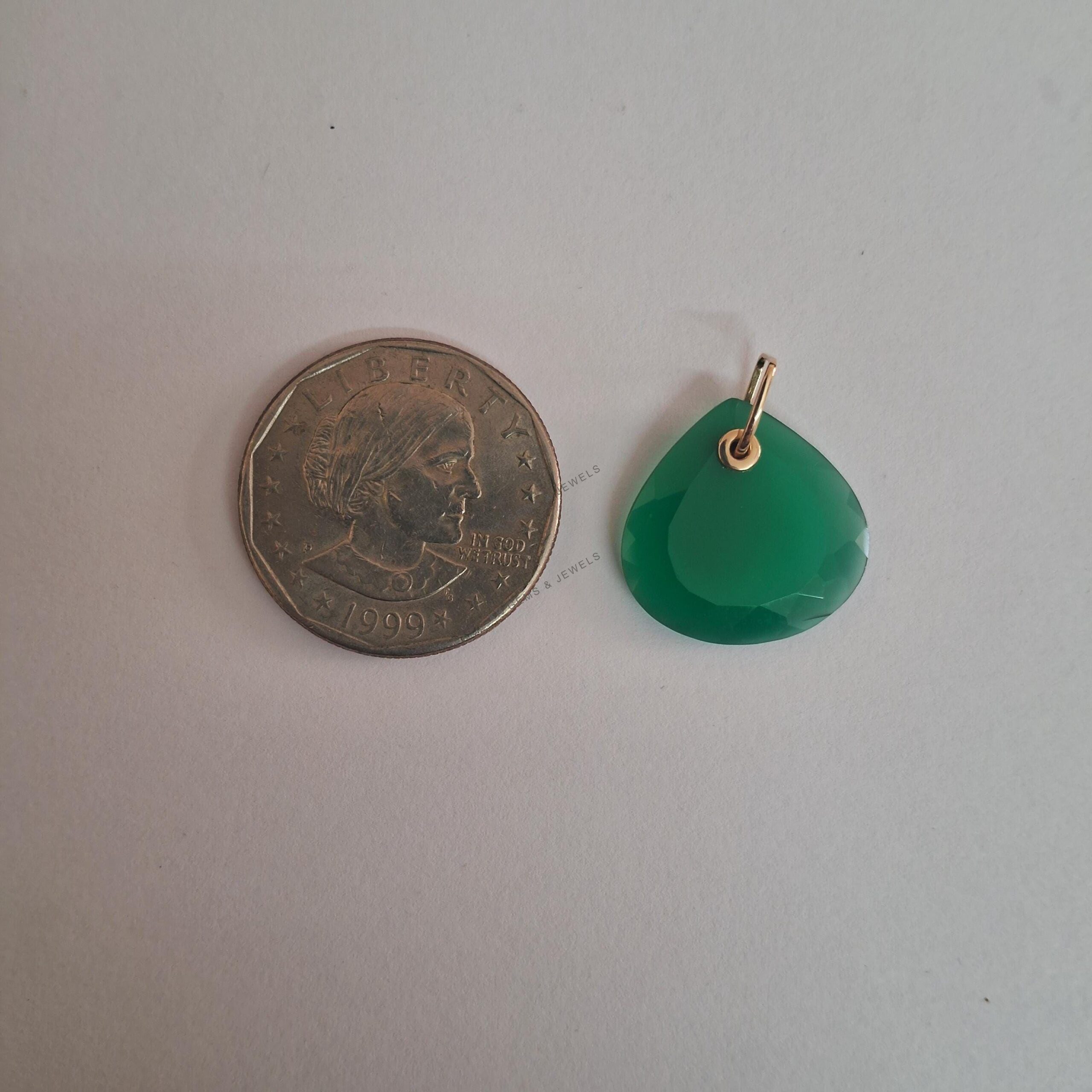 This stunning pendant is set in 14K Solid Yellow Gold with Natural Green Onyx in Drill setting with utmost precision. It is an unique gemstone pendant for nearly every occasion and is completely hassle-free jewelry. ABOUT GEMSTONE: Green onyx is…