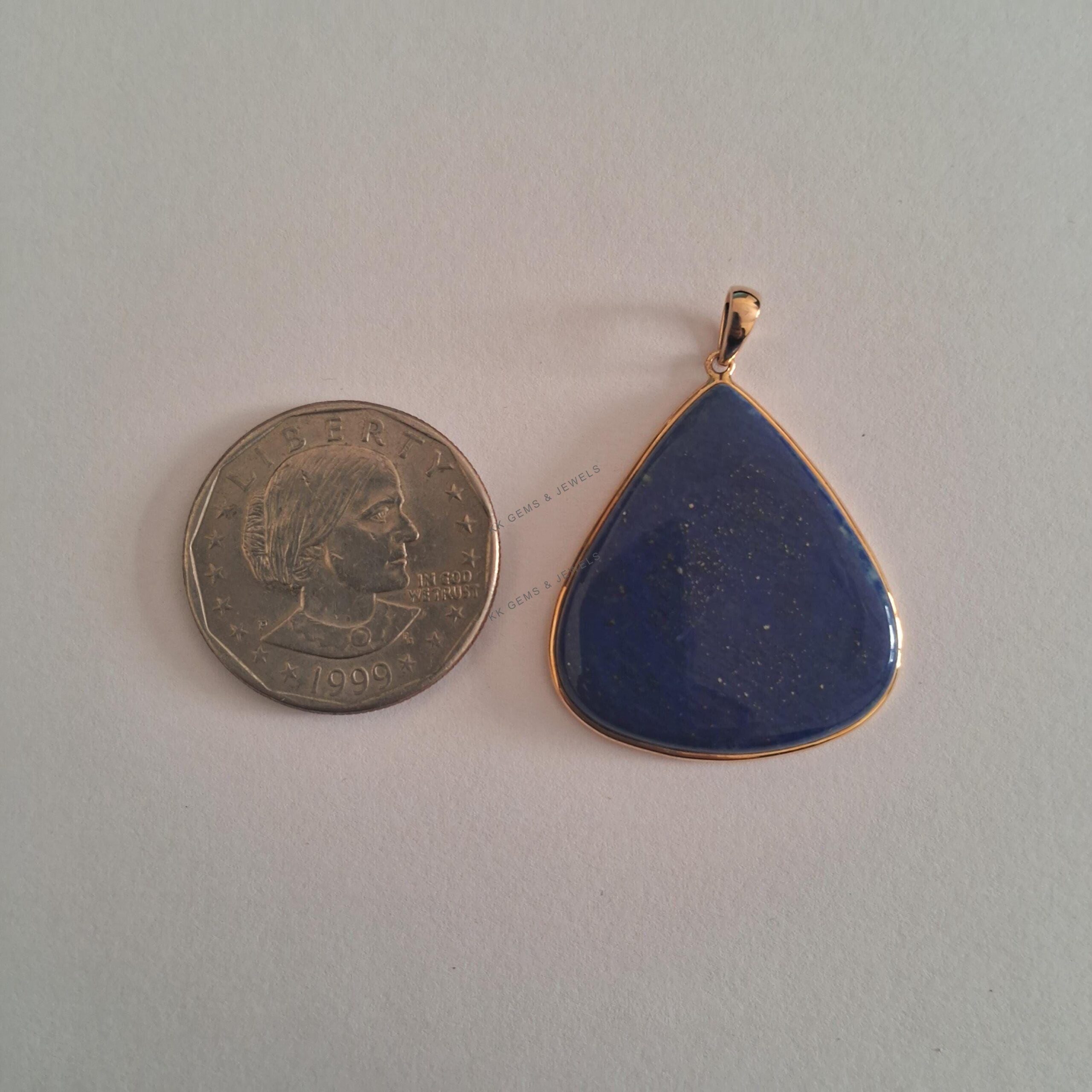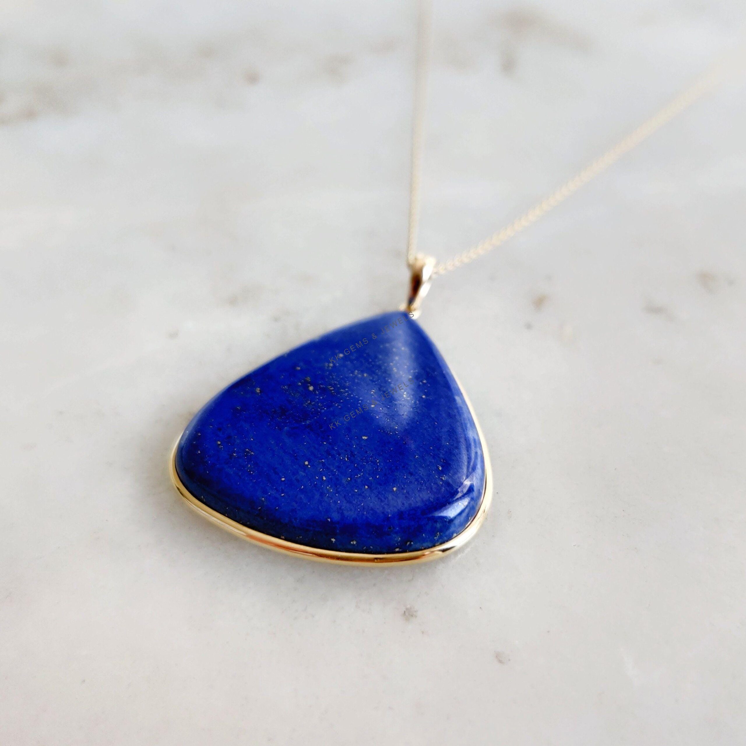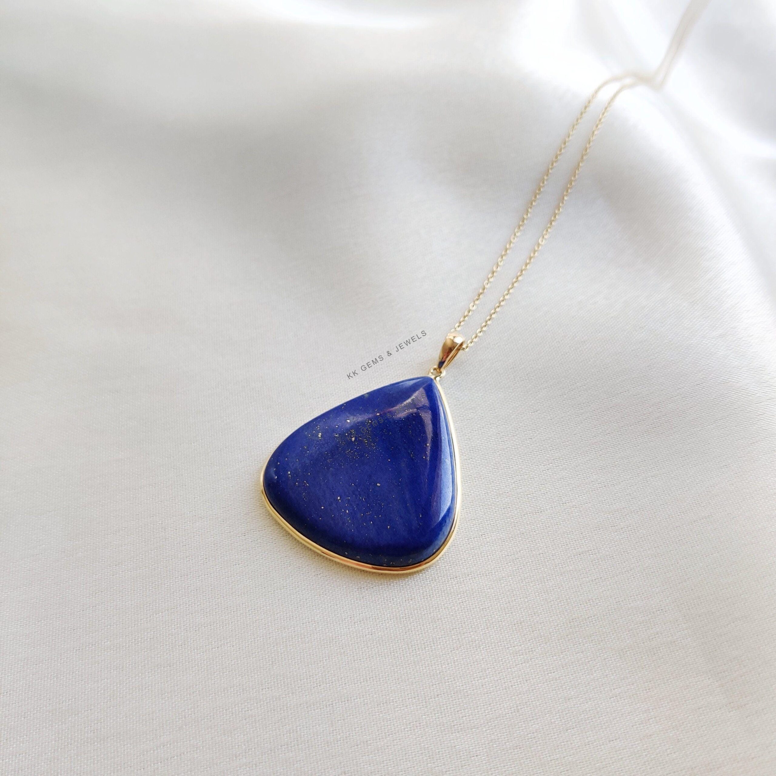 Be the first to review “Trillion Shape Natural Lapis Lazuli Bezel Pendant Set in 14K Solid Gold, September Birthstone”