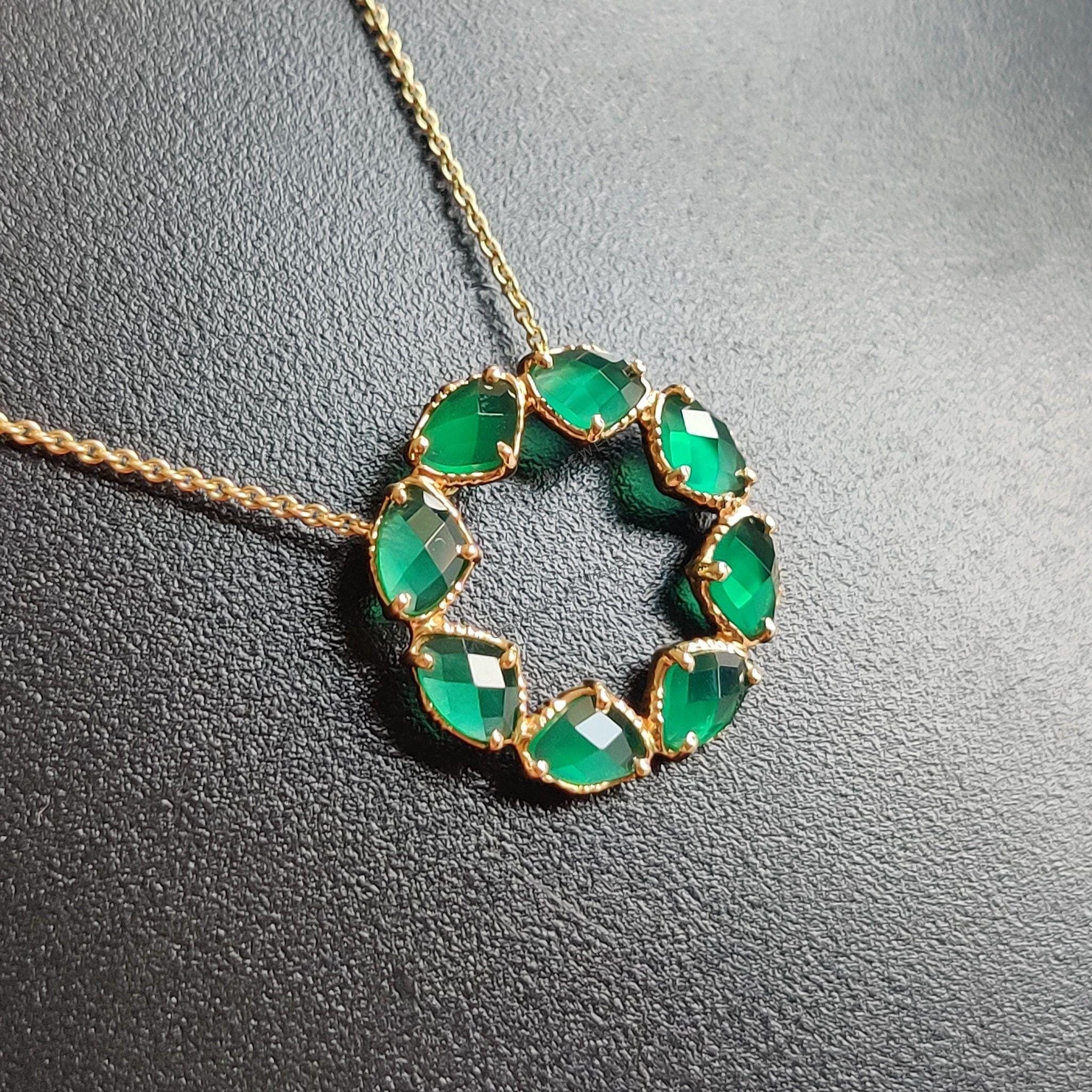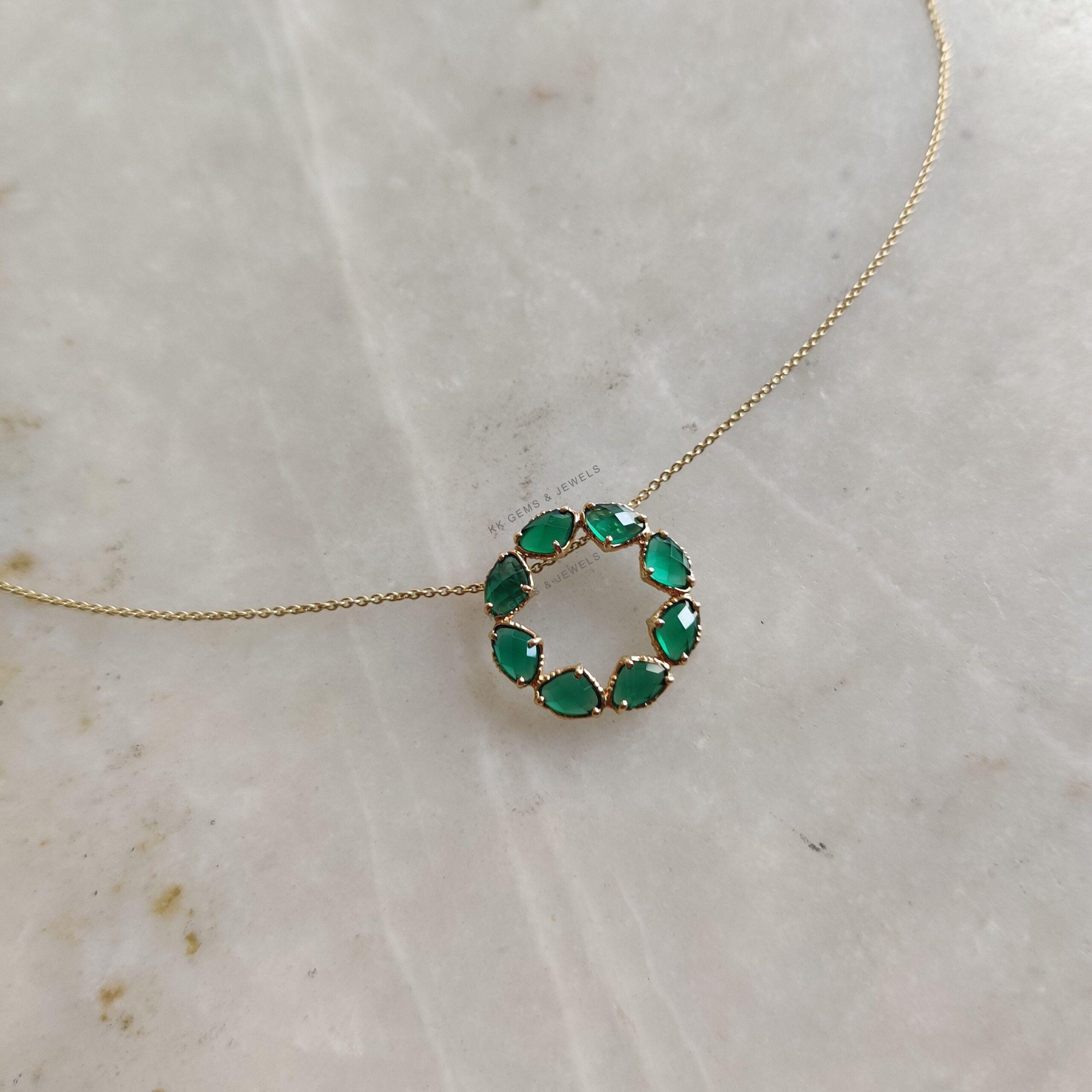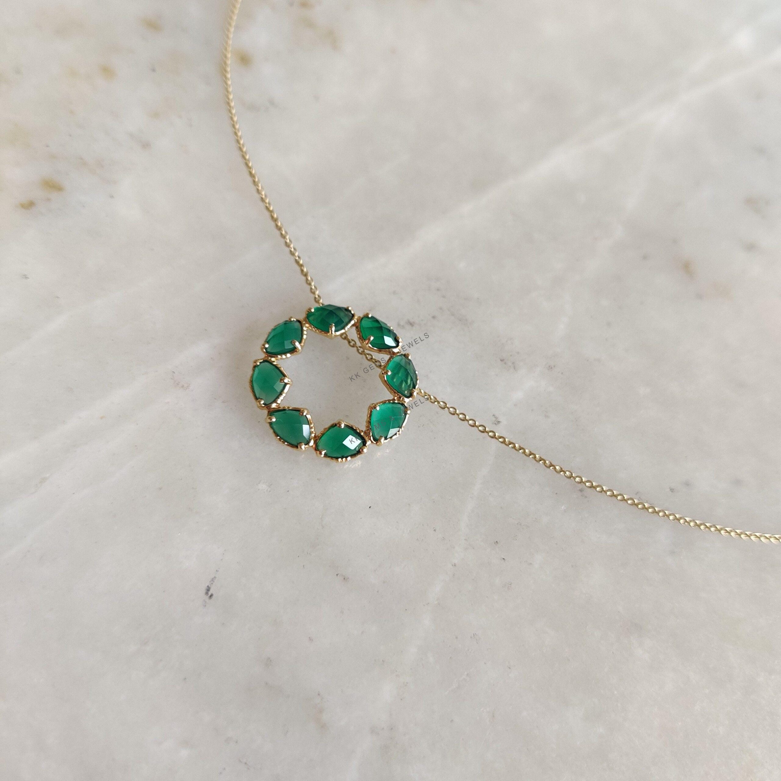 The stunning pendant is set in 14k Solid Yellow Gold with Natural Green Onyx with utmost precision. It is an unique gemstone pendant for nearly every occasion and its completely hassle-free jewelry. ✓ ABOUT GEMSTONE: Green onyx is often associated…
