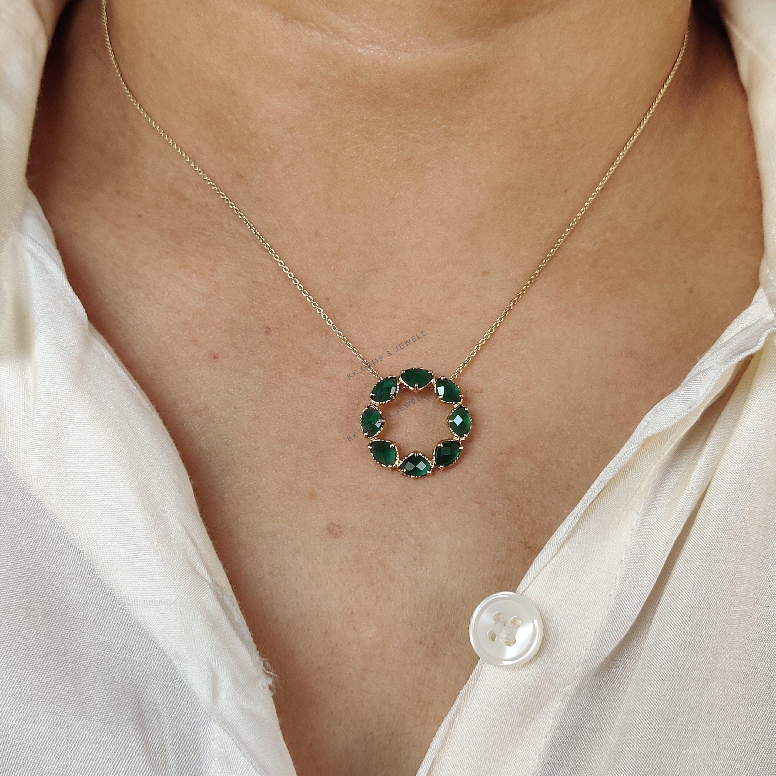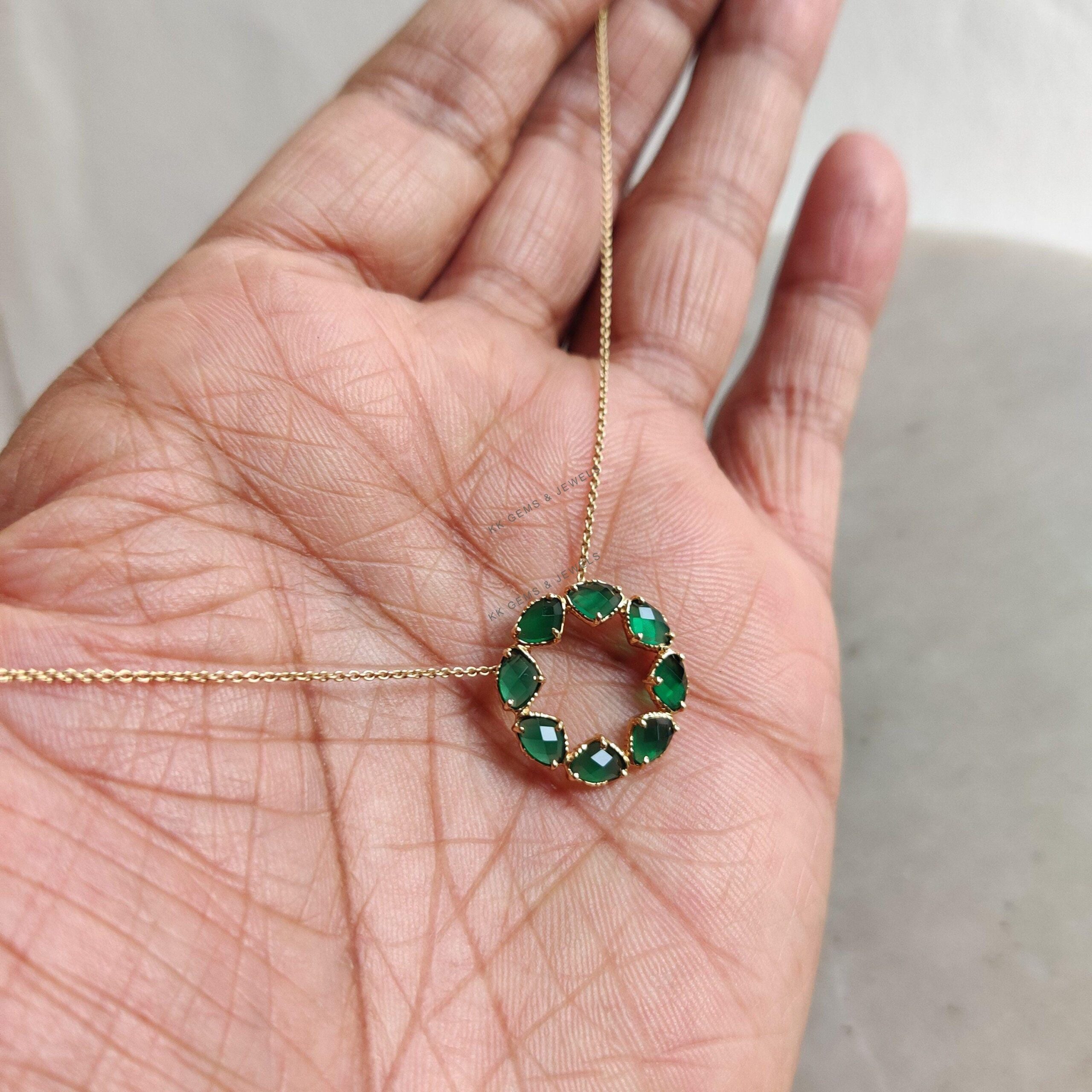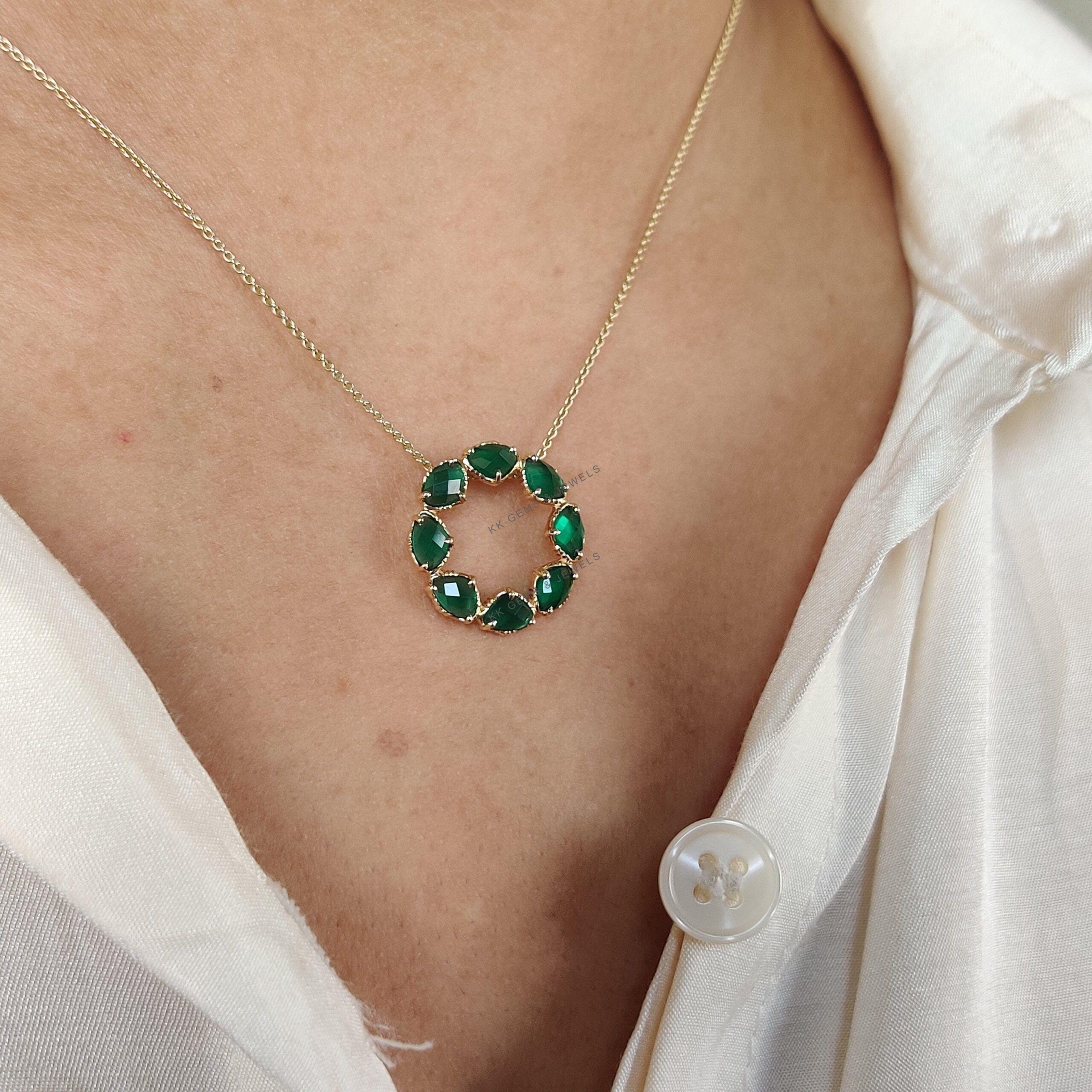 The stunning pendant is set in 14k Solid Yellow Gold with Natural Green Onyx with utmost precision. It is an unique gemstone pendant for nearly every occasion and its completely hassle-free jewelry. ✓ ABOUT GEMSTONE: Green onyx is often associated…