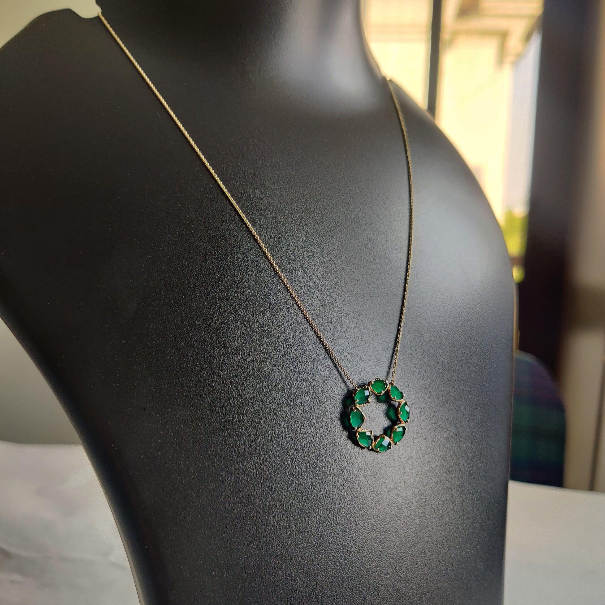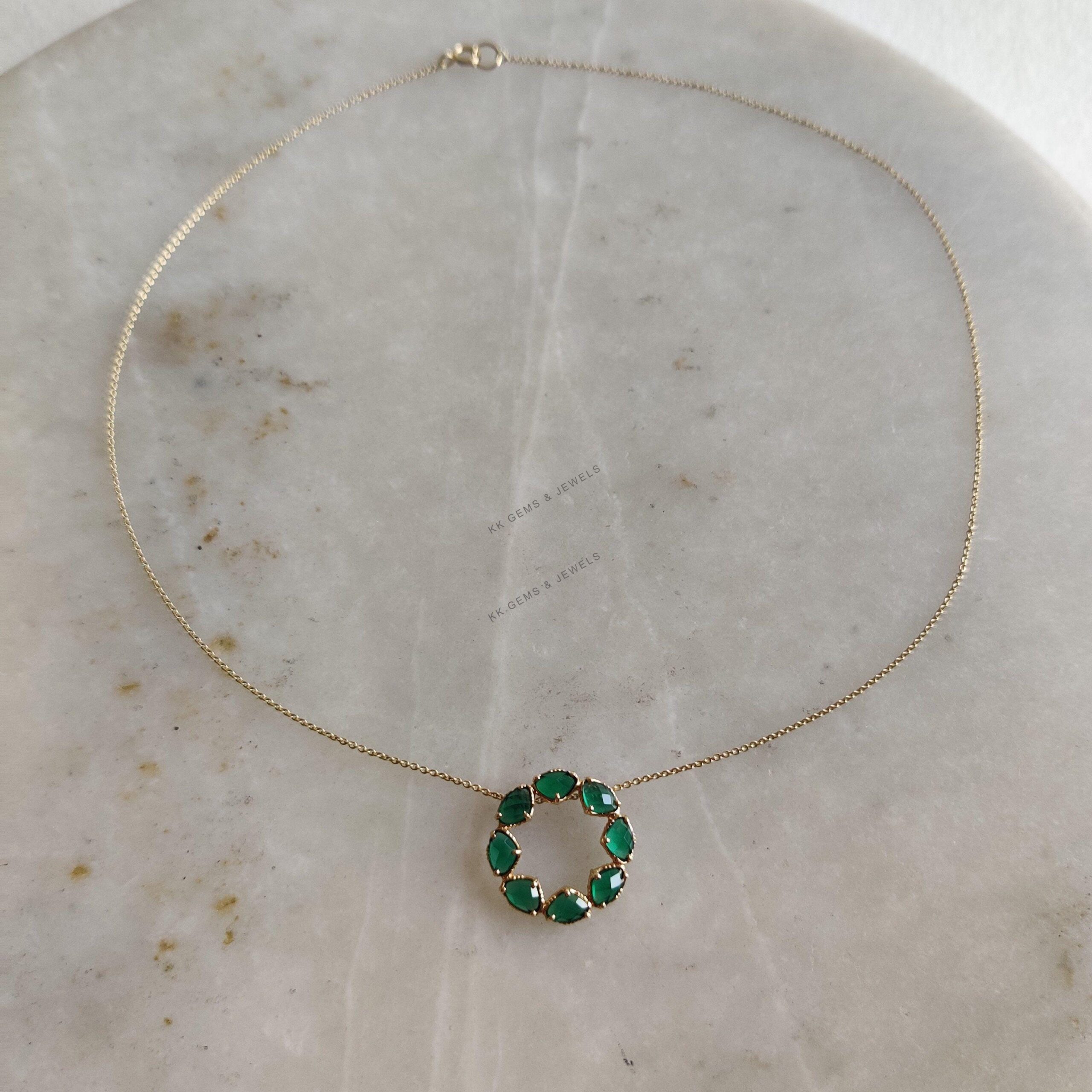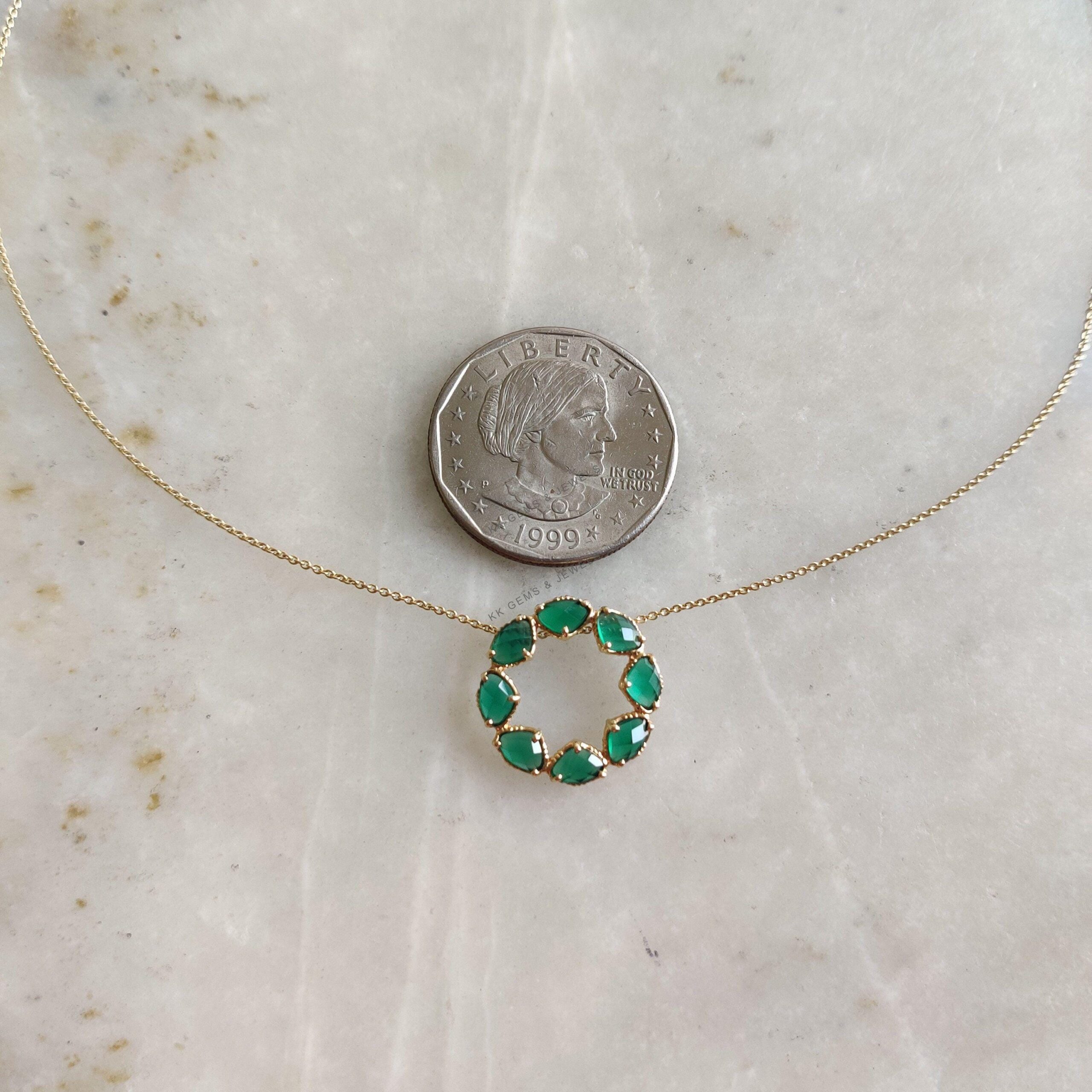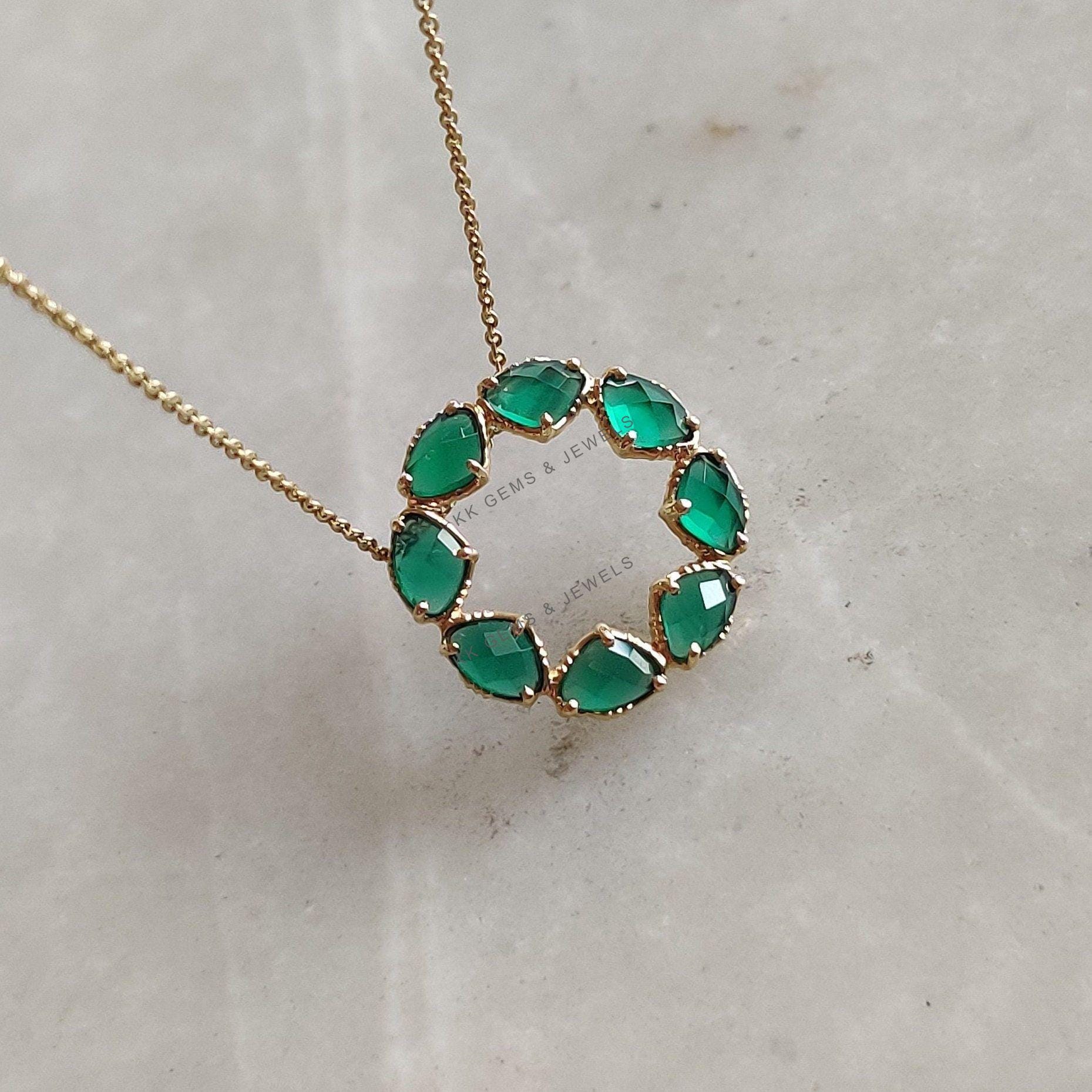 Trillion Shape Natural Green Onyx Necklace Set in 14K Solid Gold, May Birthstone